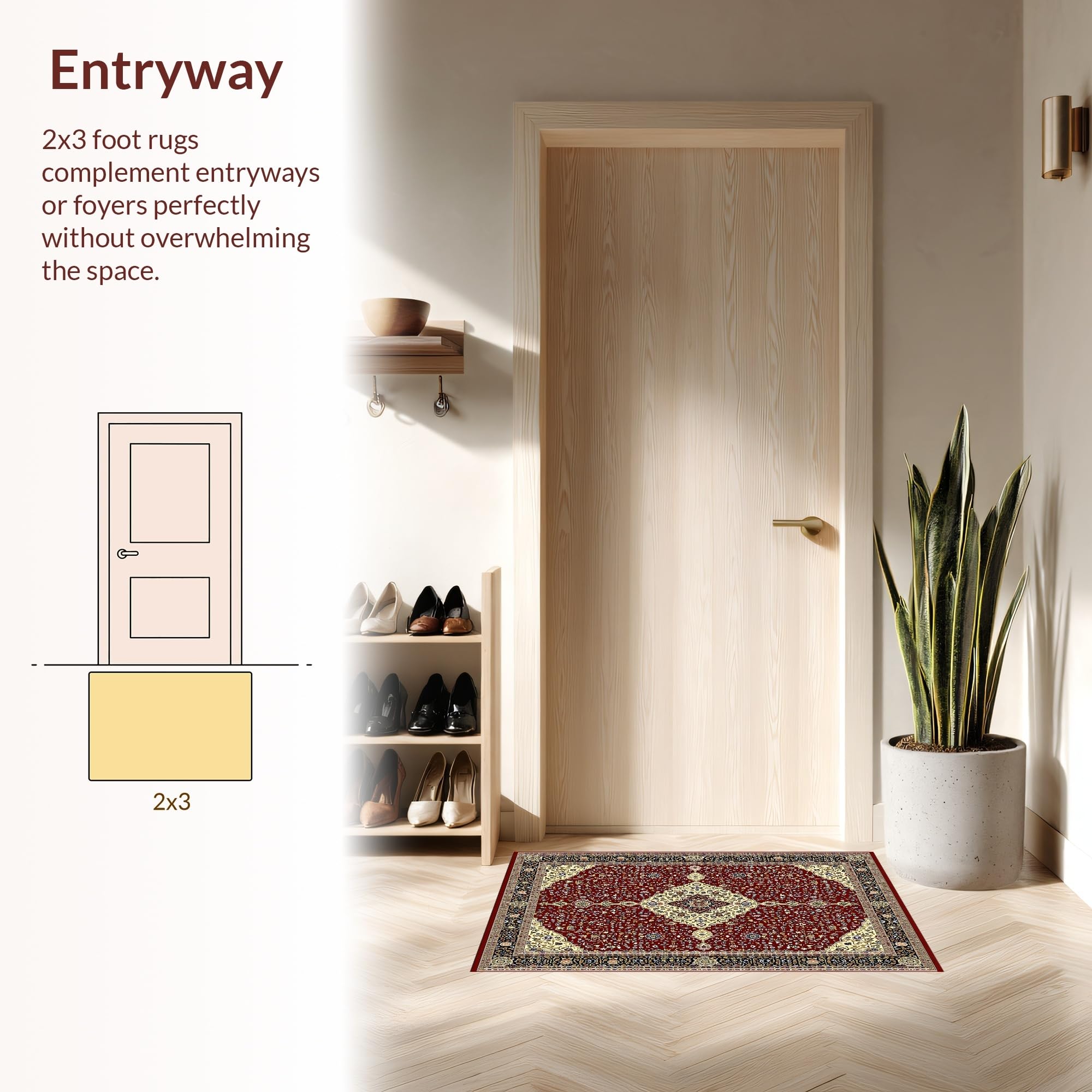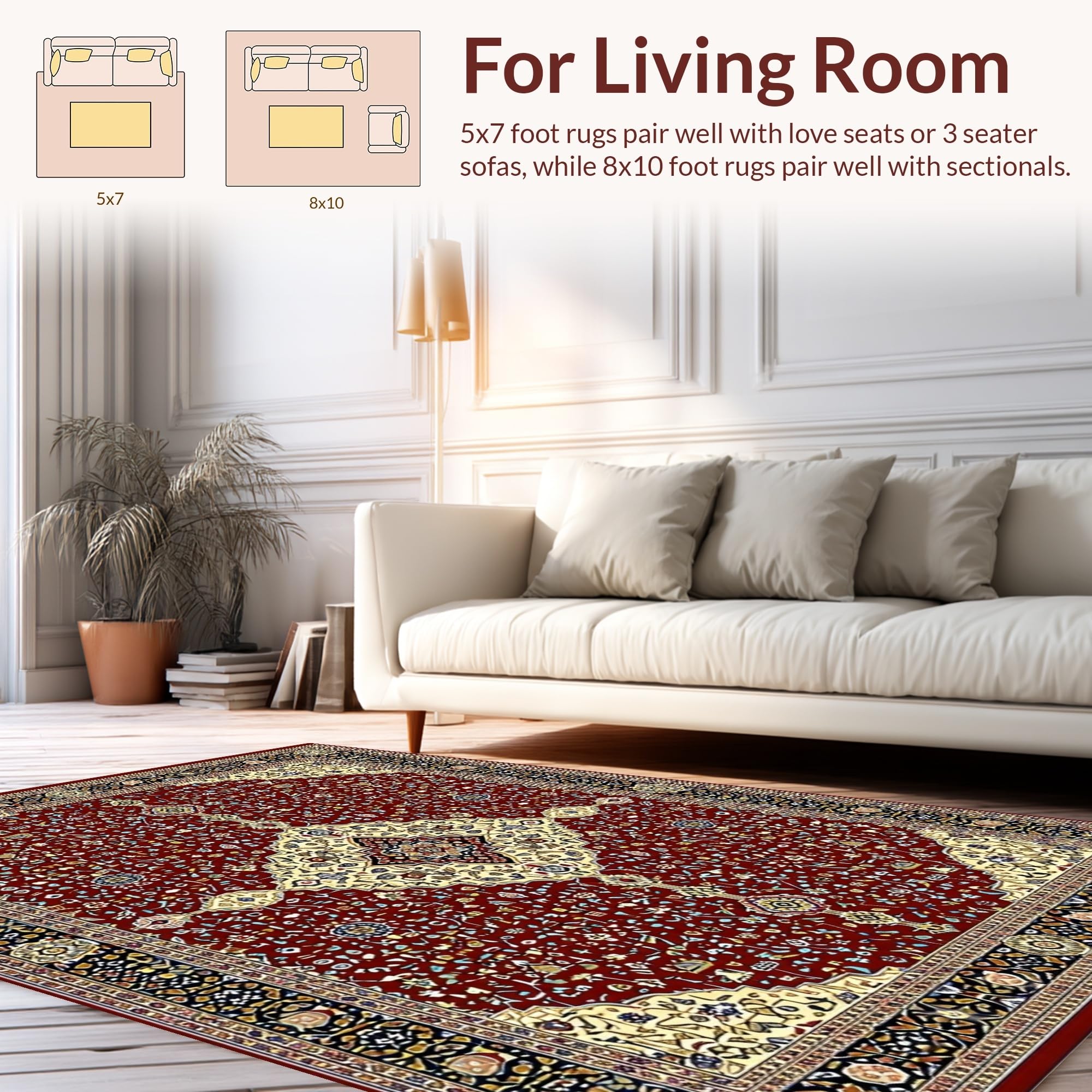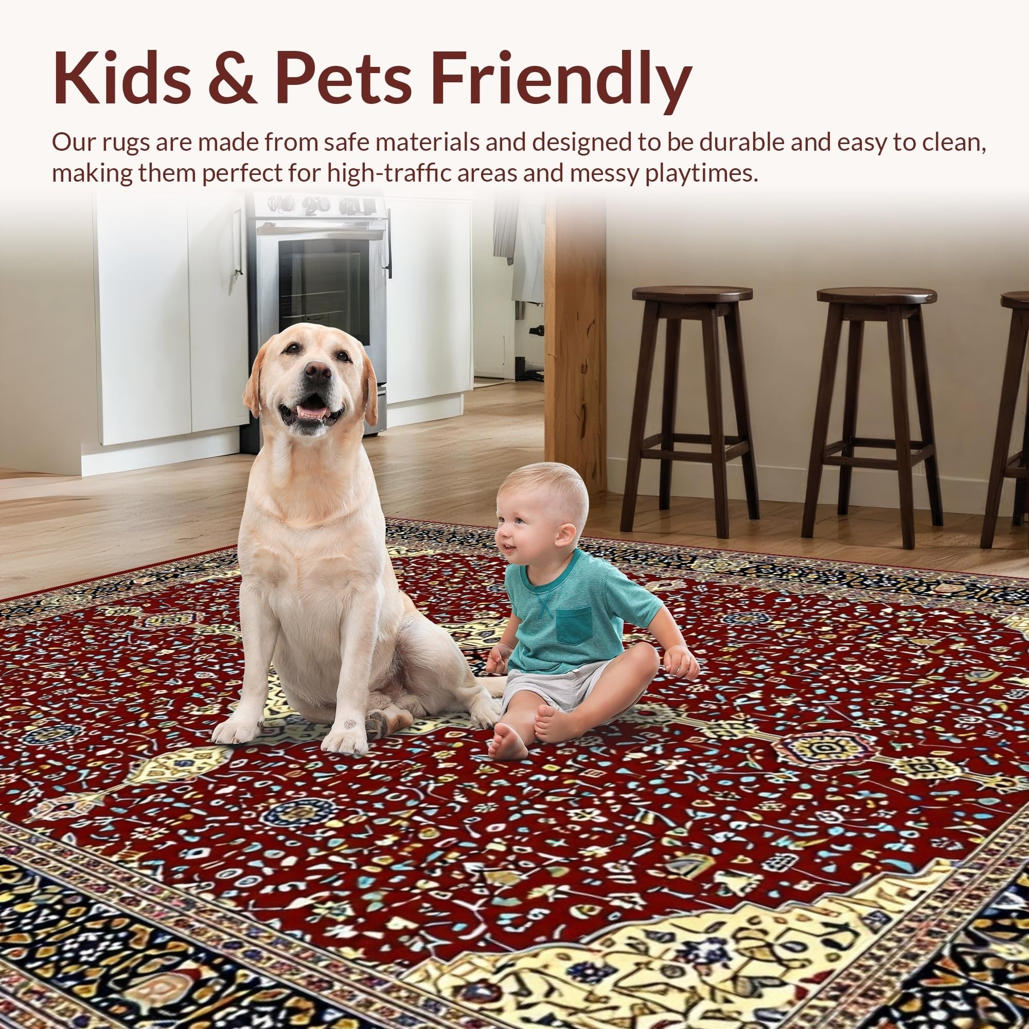 Ultra Soft Area Rug, Non Slip, Stain Resistant, Washable Area Rugs for Living Room, Bedroom, Cozy Rustic Tiled Aesthetic(Red) Overview: