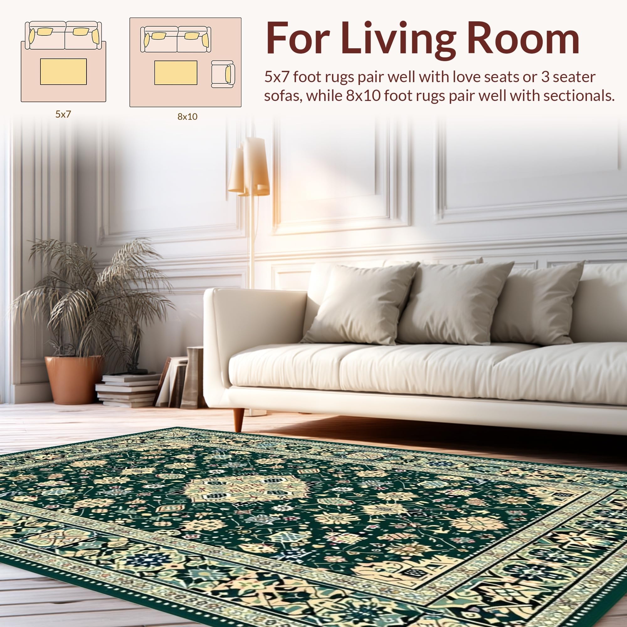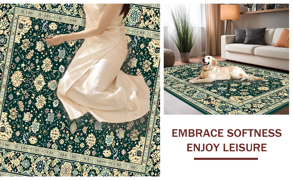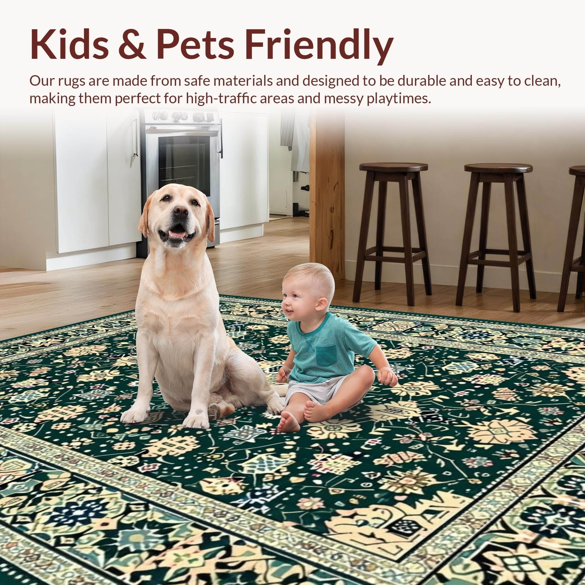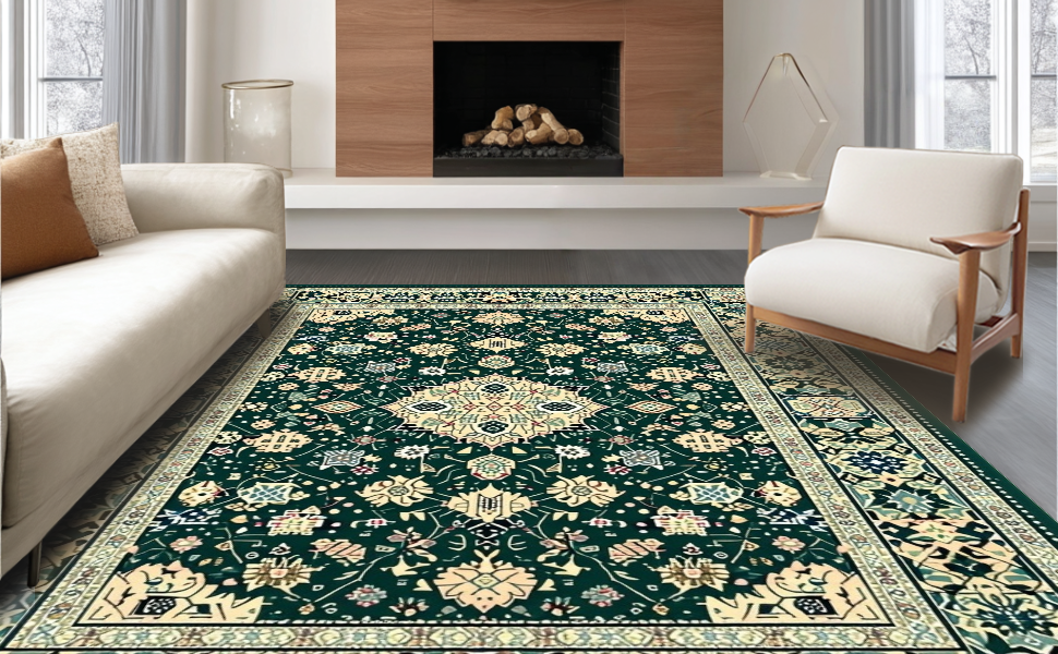 Ultra Soft Area Rug, Non Slip, Stain Resistant, Washable Area Rugs for Living Room, Bedroom, Cozy Rustic Tiled Arrangement(Green) Overview: