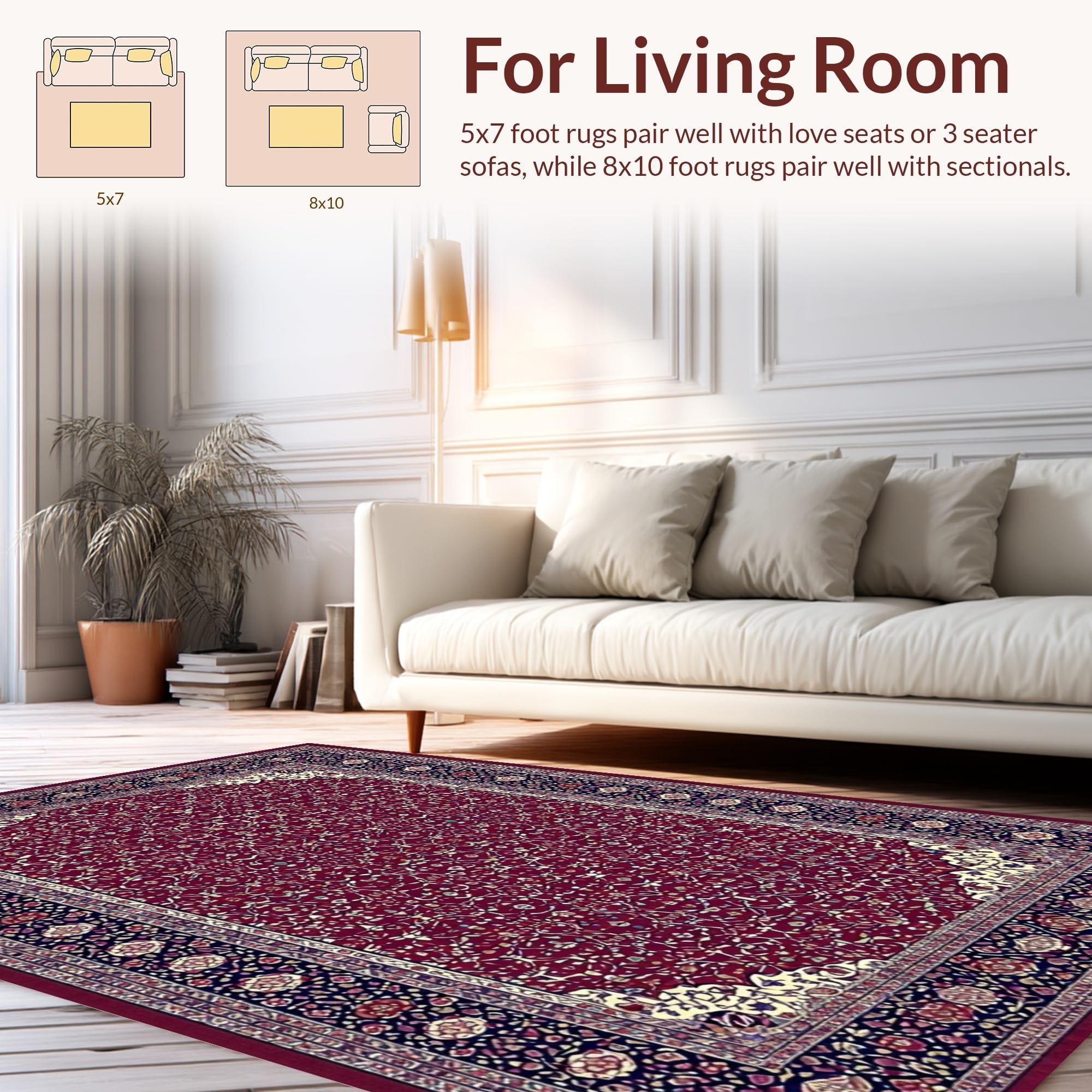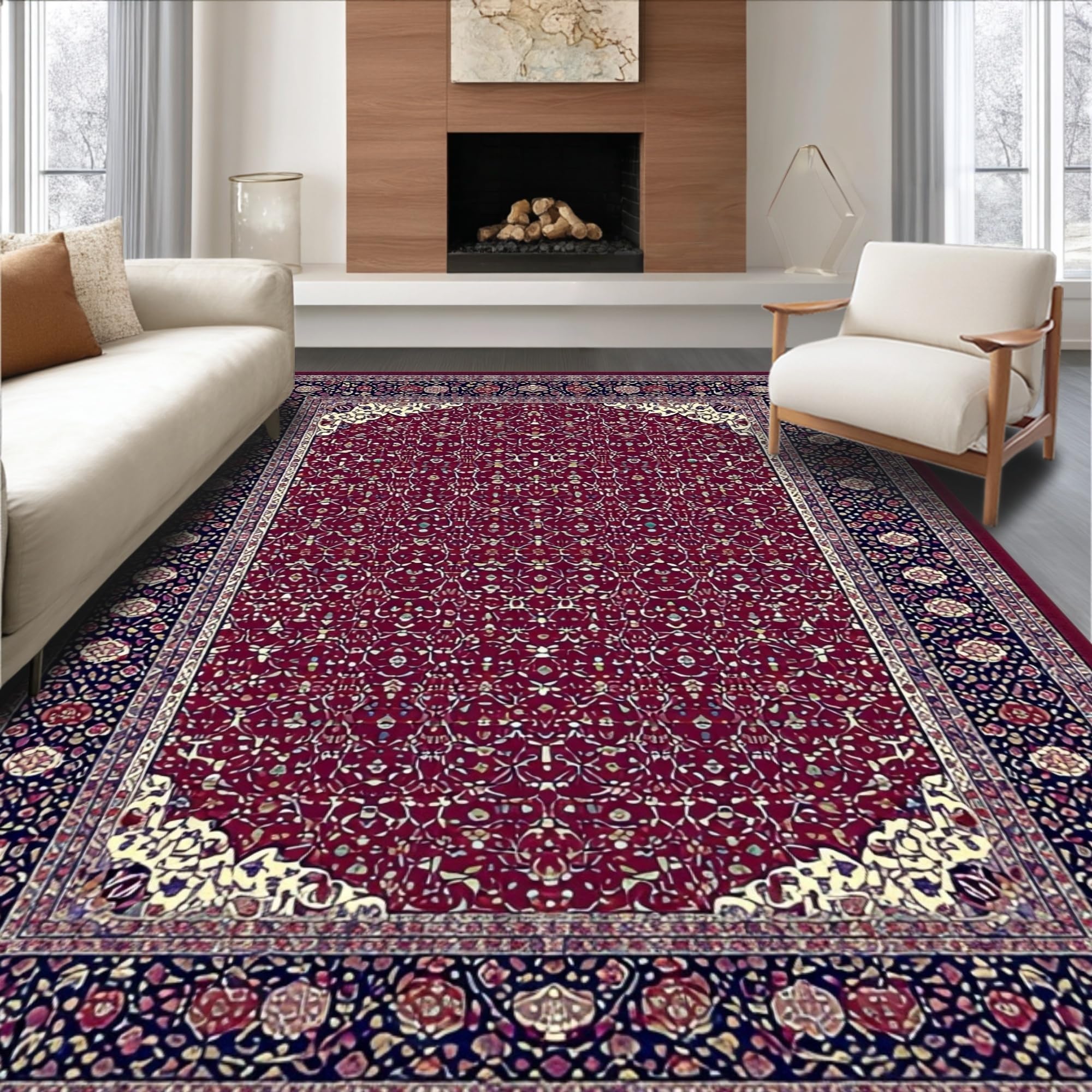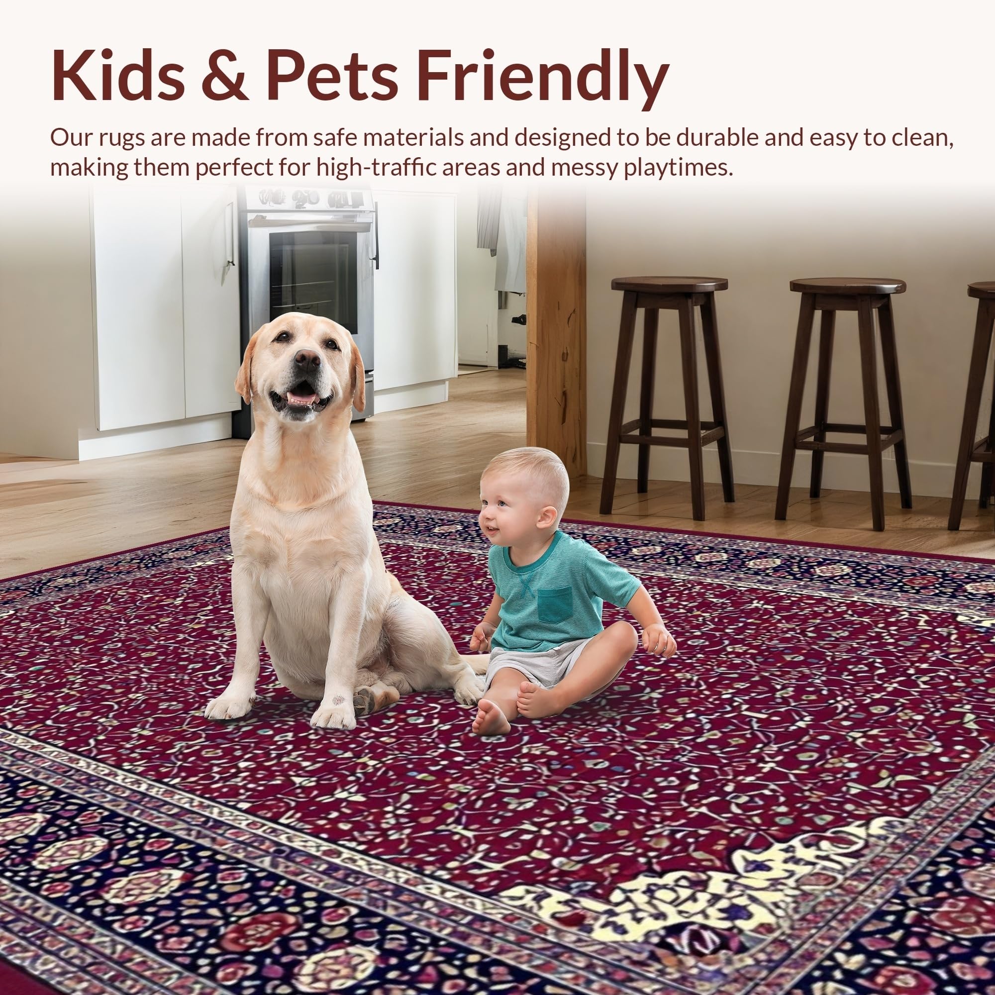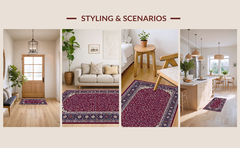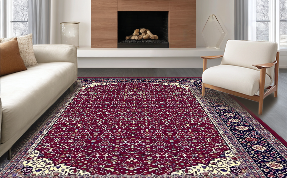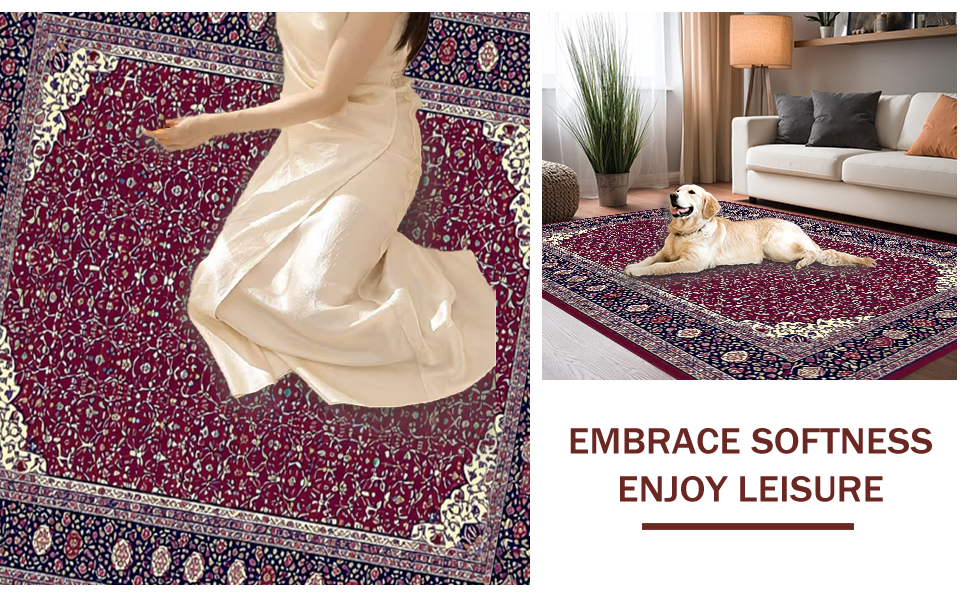 Ultra Soft Area Rug, Non Slip, Stain Resistant, Washable Area Rugs for Living Room, Bedroom, Cozy Rustic Tiled Design(Red) Overview: