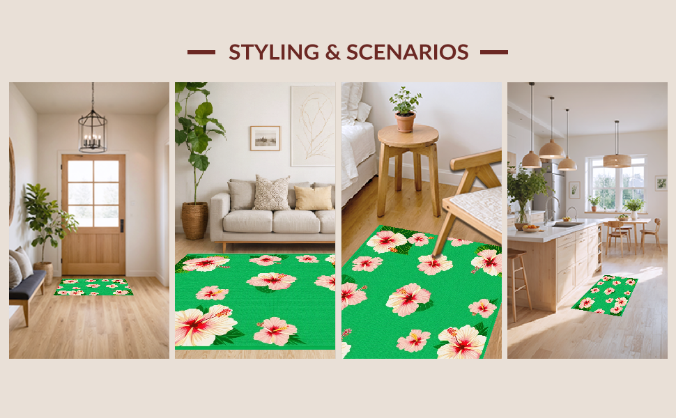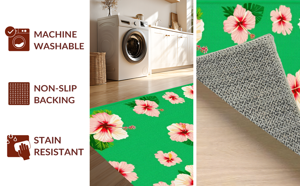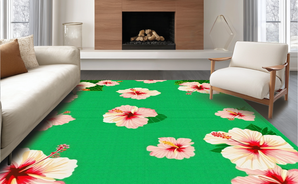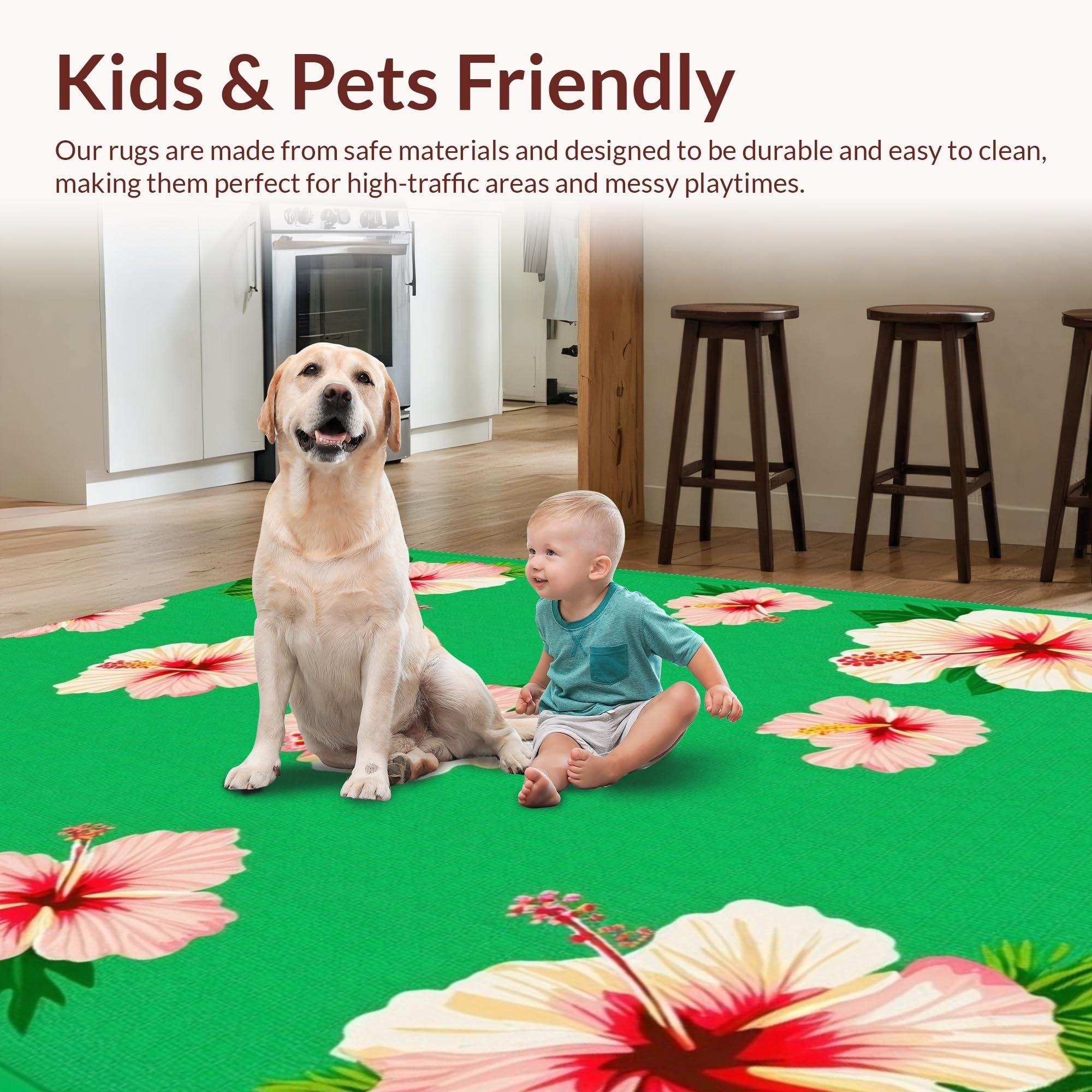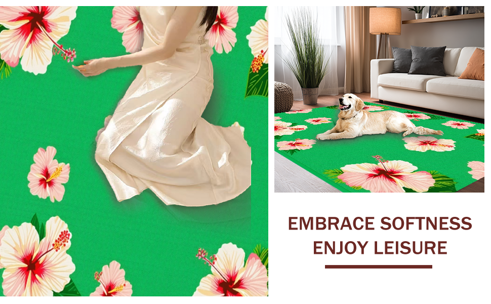 Ultra Soft Area Rug, Non Slip, Stain Resistant, Washable Area Rugs for Living Room, Bedroom, Cozy Rustic Tropical Vibe(Green) Overview: