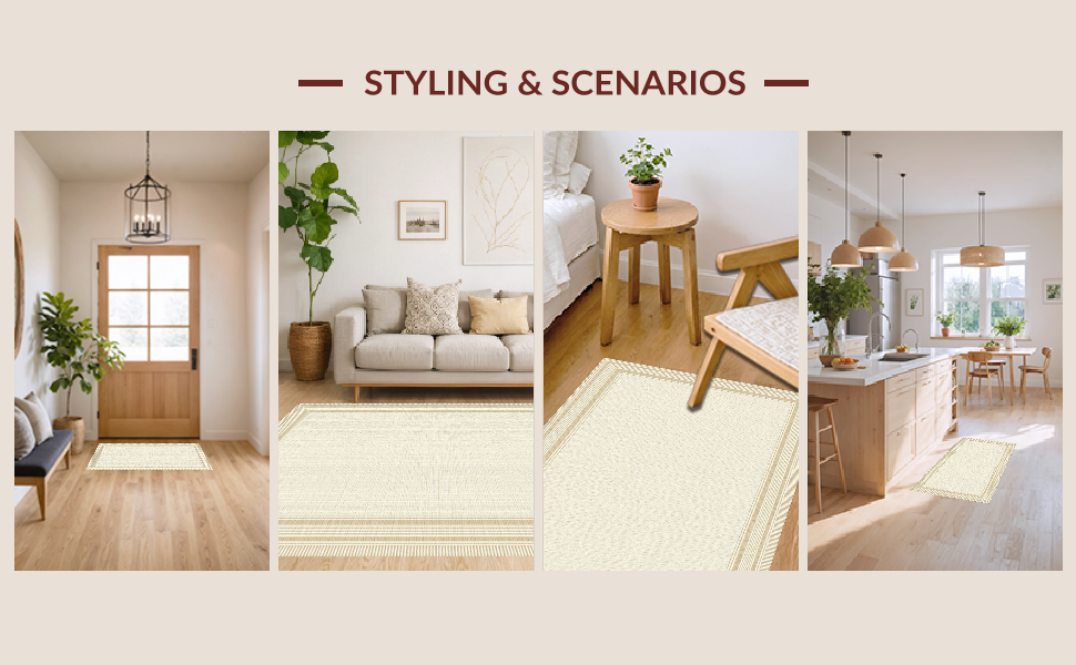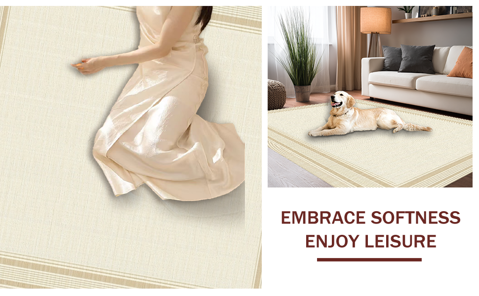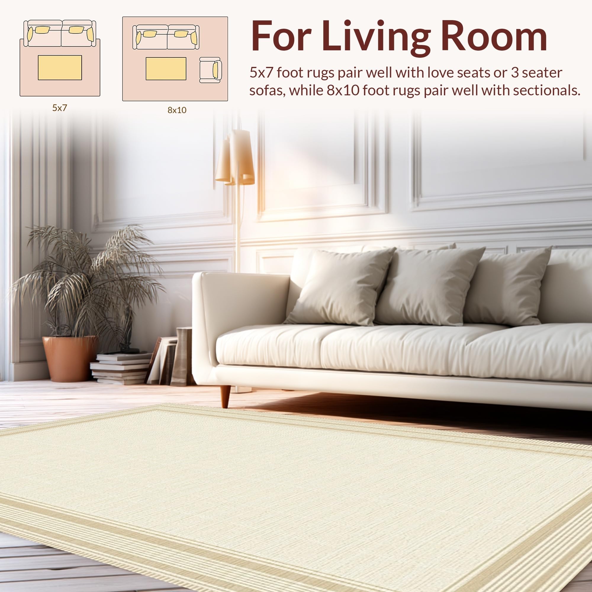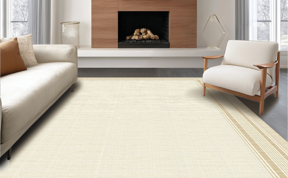 Ultra Soft Area Rug, Non Slip, Stain Resistant, Washable Area Rugs for Living Room, Bedroom, Cozy Scalloped Border Aesthetic(Beige) Overview: