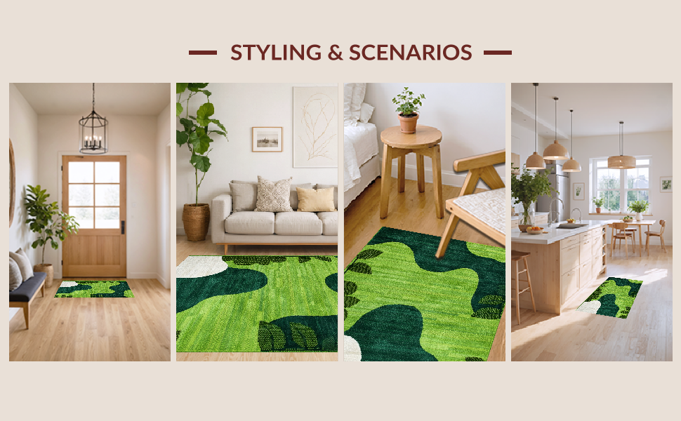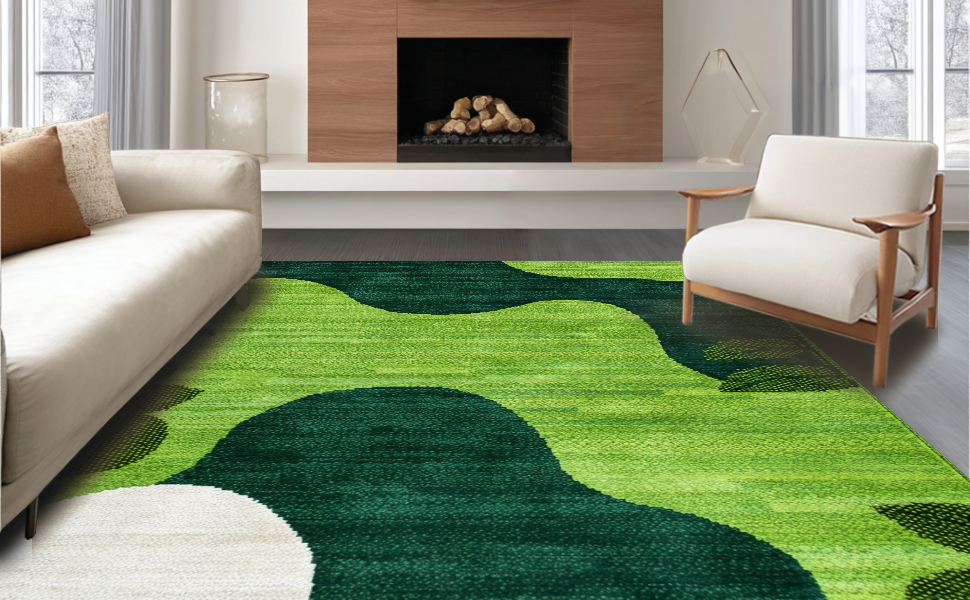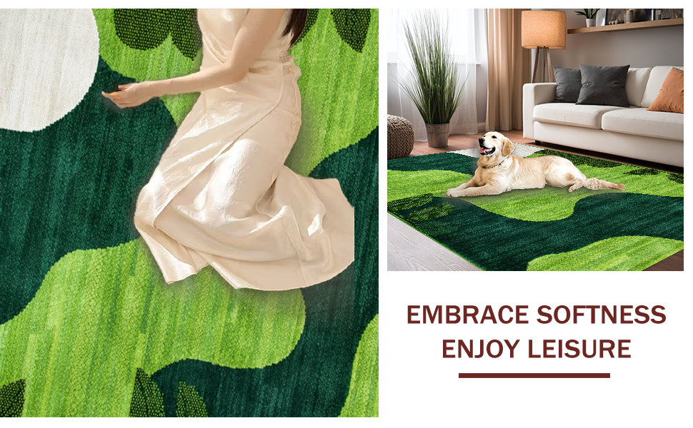 Ultra Soft Area Rug, Non Slip, Stain Resistant, Washable Area Rugs for Living Room, Bedroom, Cozy Shaggy Nature-Inspired Texture(Green) Overview:
