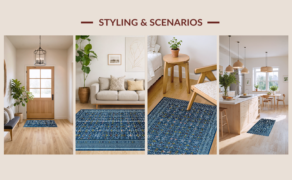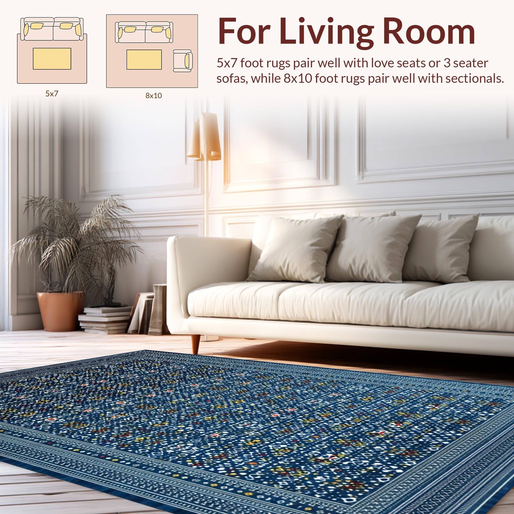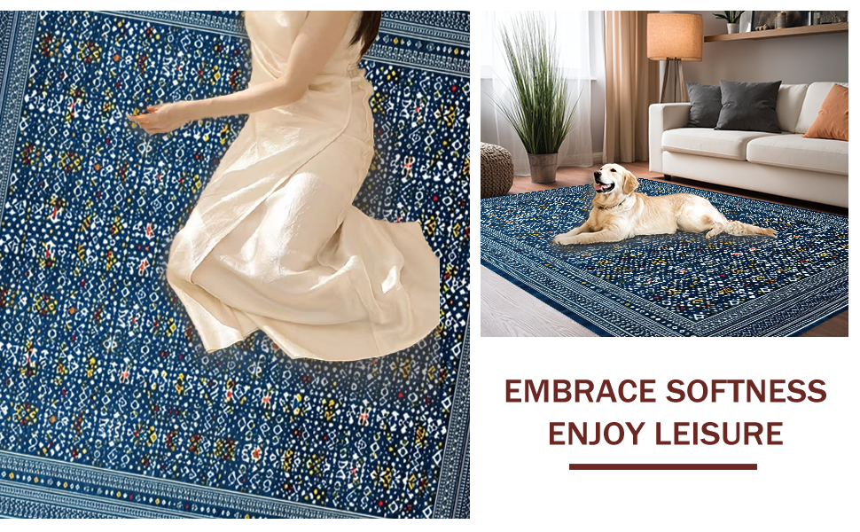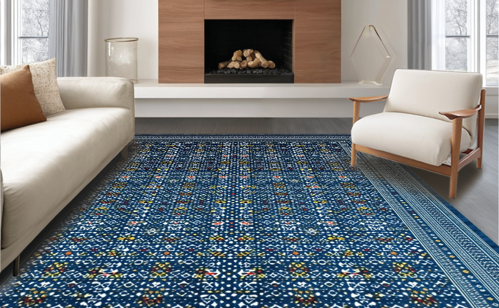 Ultra Soft Area Rug, Non Slip, Stain Resistant, Washable Area Rugs for Living Room, Bedroom, Cozy Soft Trellis Aesthetic(Blue) Overview: