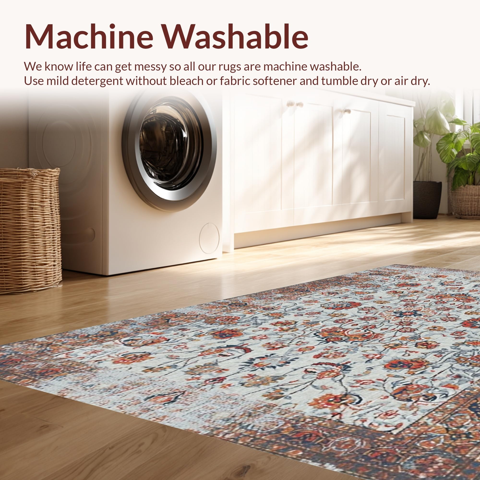 - Machine Washable: Our rugs can be easily thrown in the wash machine.