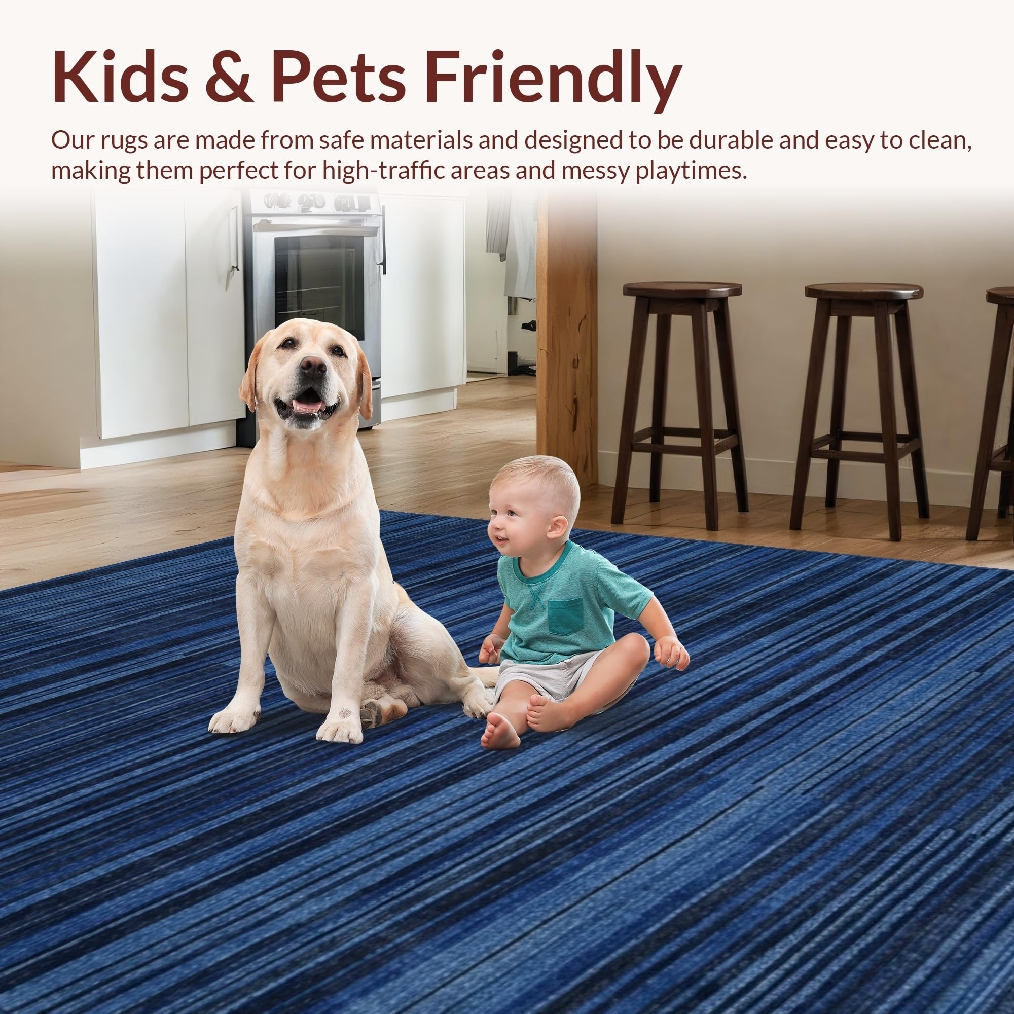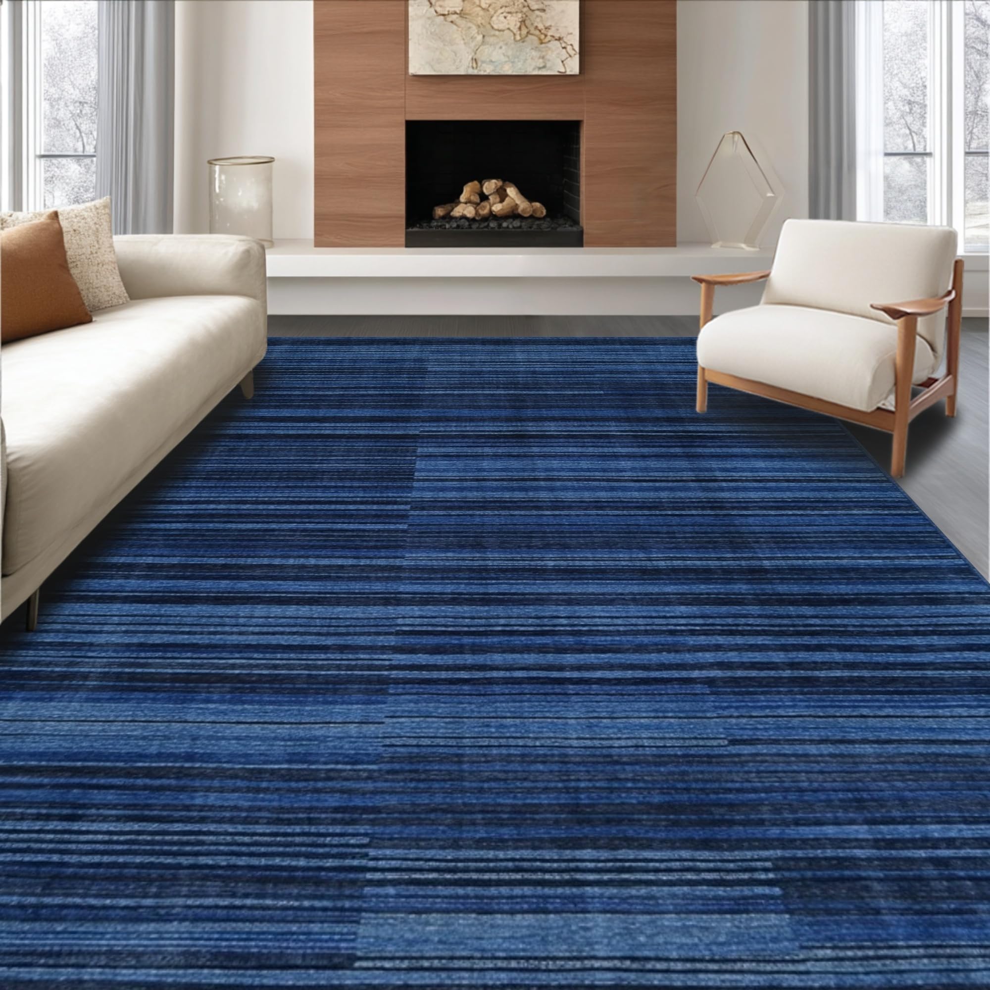 Ultra Soft Area Rug, Non Slip, Stain Resistant, Washable Area Rugs for Living Room, Bedroom, Cozy Solid Color Contemporary Touch(Blue) Overview: