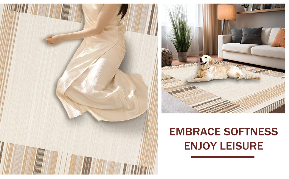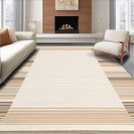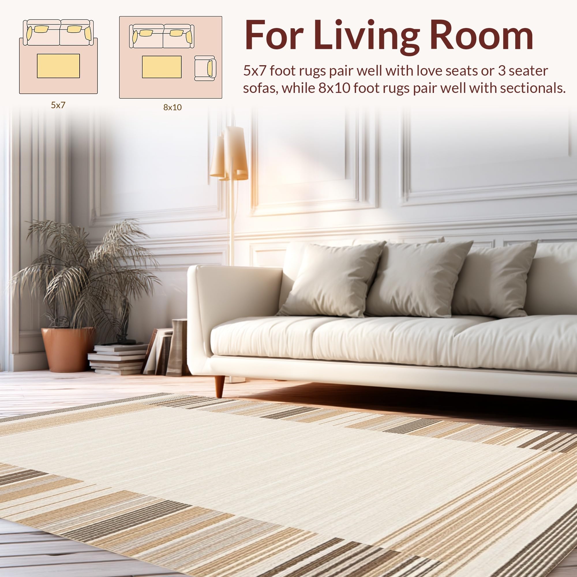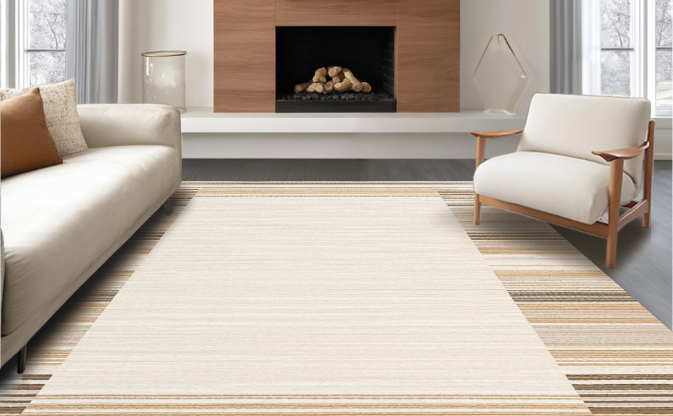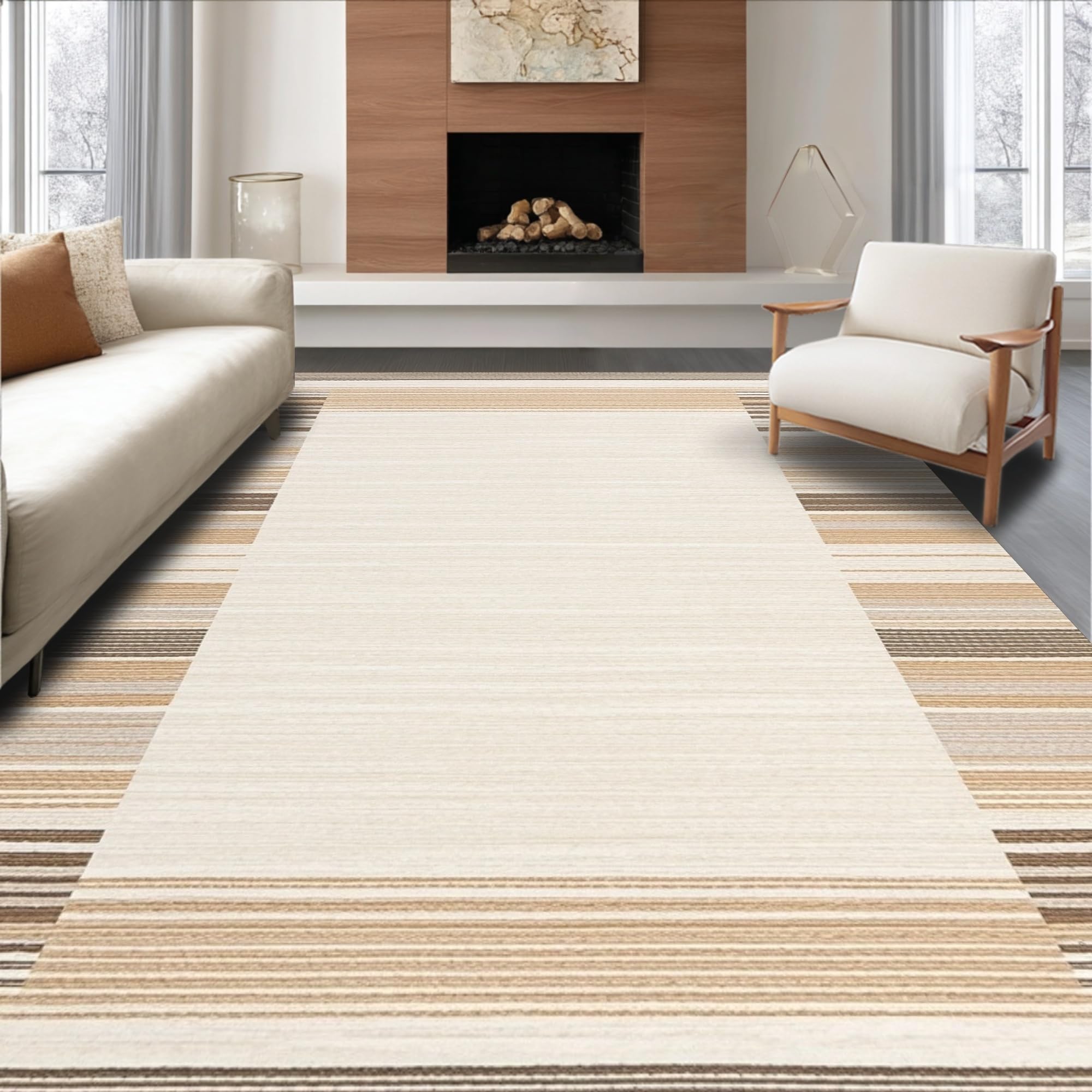 Ultra Soft Area Rug, Non Slip, Stain Resistant, Washable Area Rugs for Living Room, Bedroom, Cozy Striped Border Aesthetic(Beige) Overview:
