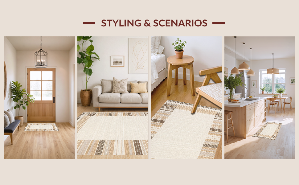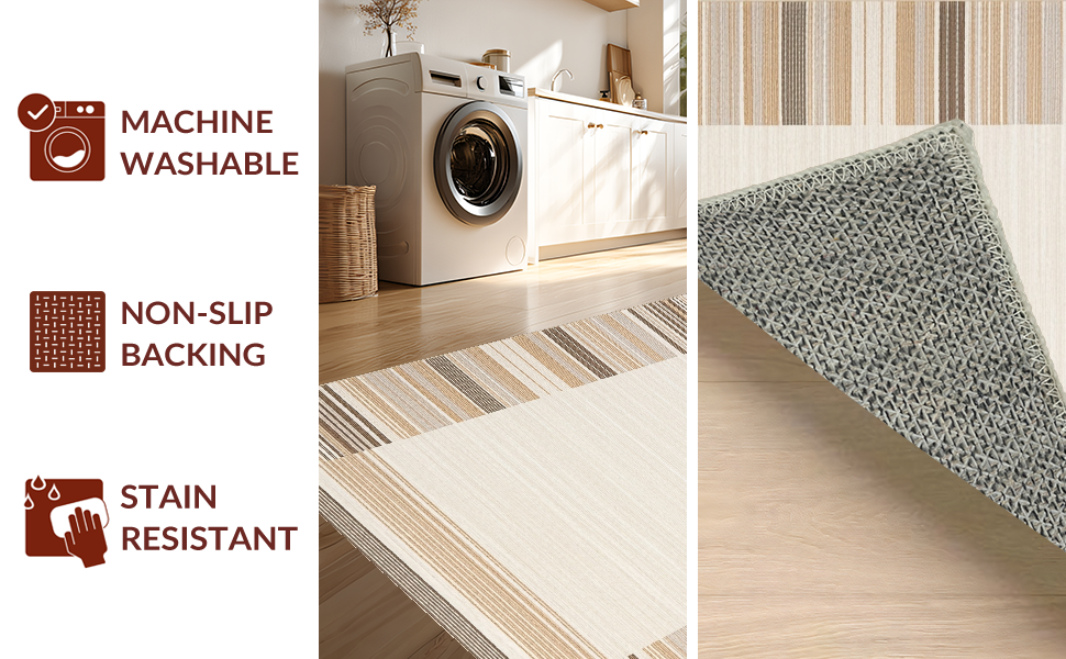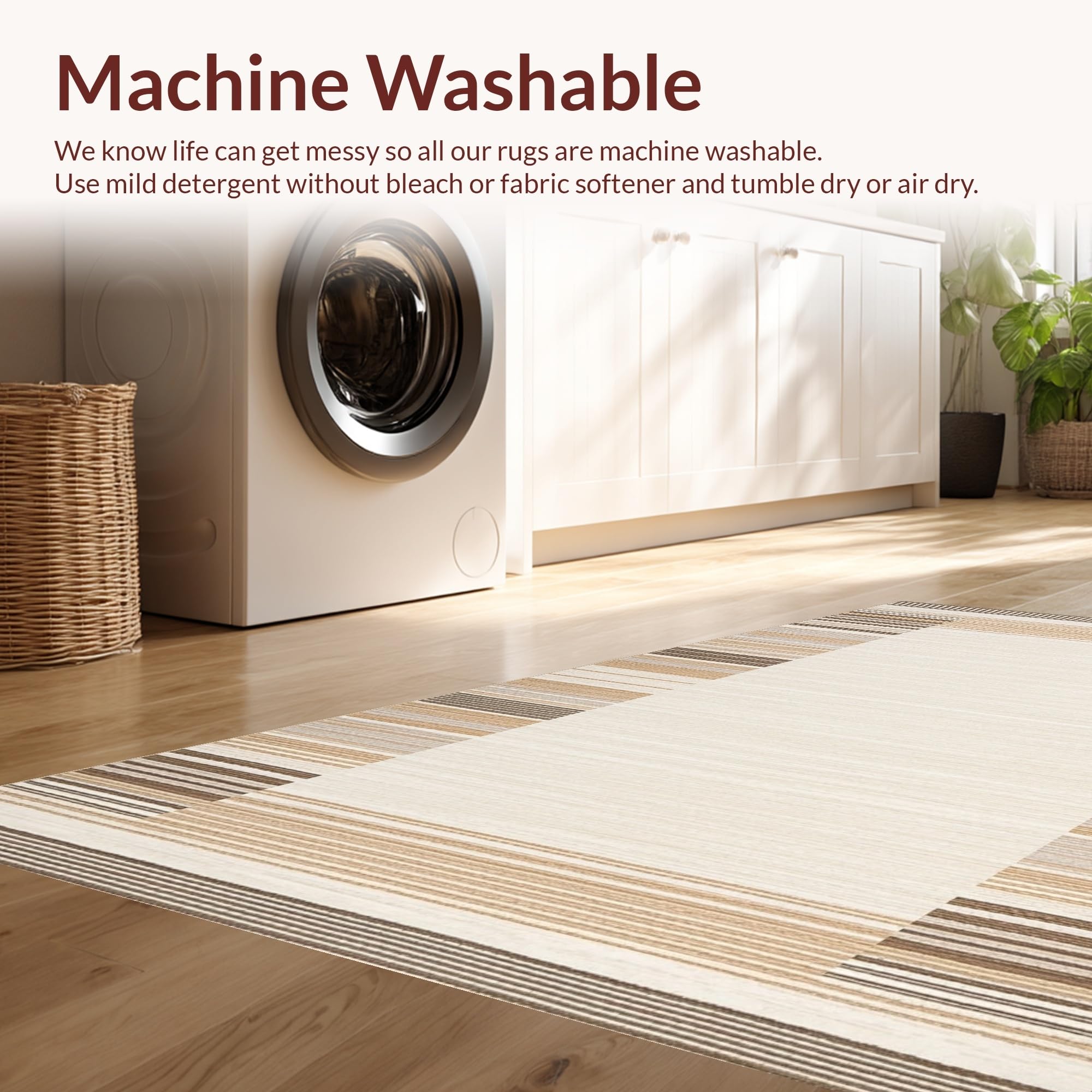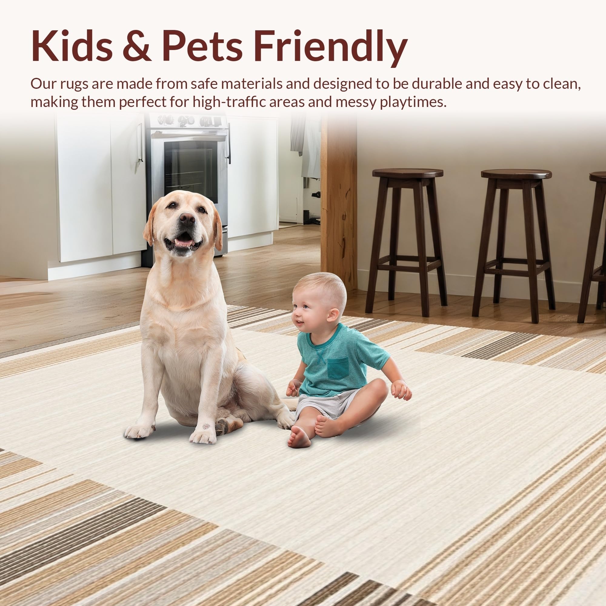 Ultra Soft Area Rug, Non Slip, Stain Resistant, Washable Area Rugs for Living Room, Bedroom, Cozy Striped Border Aesthetic(Beige) Overview: