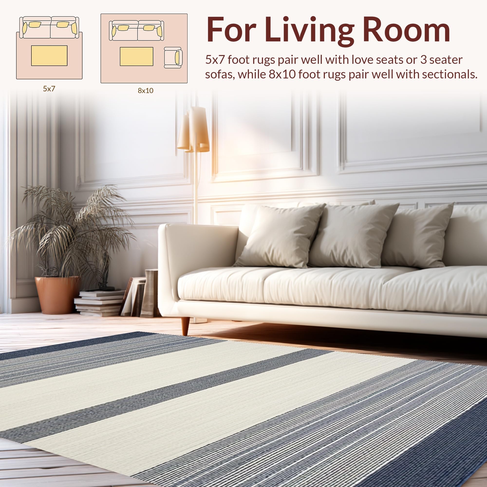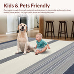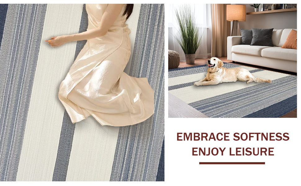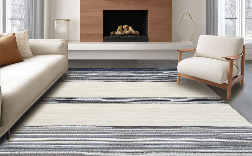 Ultra Soft Area Rug, Non Slip, Stain Resistant, Washable Area Rugs for Living Room, Bedroom, Cozy Textured Cream and Navy Pattern(Blue) Overview: