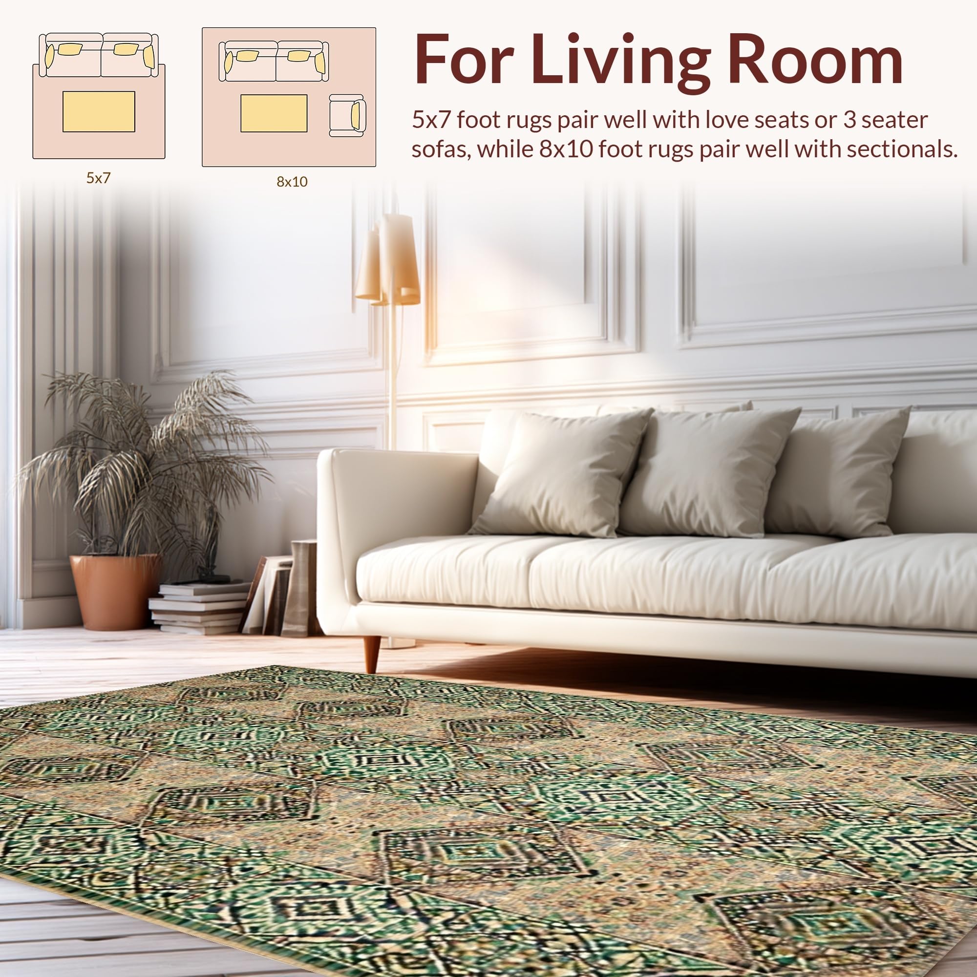 Ultra Soft Area Rug, Non Slip, Stain Resistant, Washable Area Rugs for Living Room, Bedroom, Cozy Textured Diamond Arrangement(Beige) Overview: