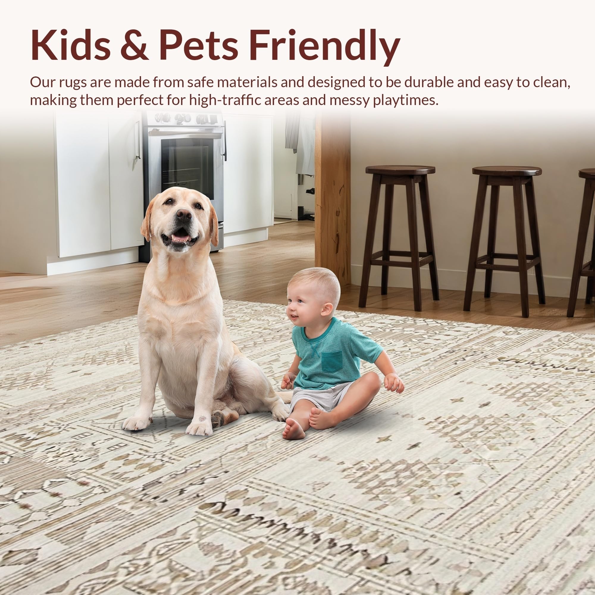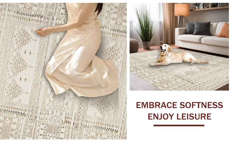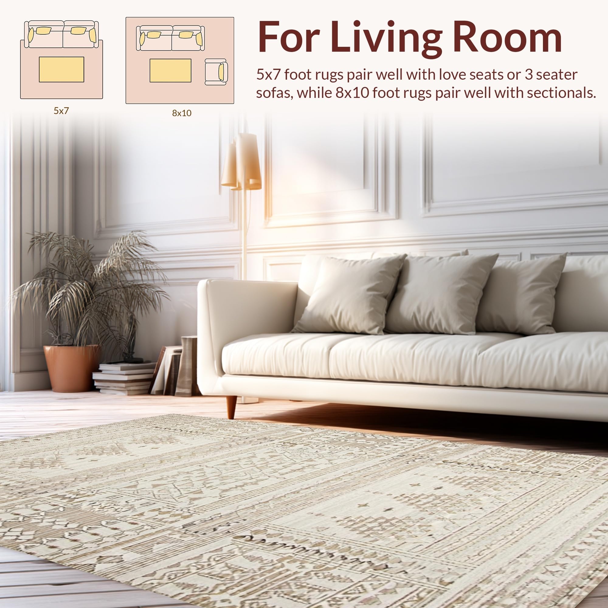 Ultra Soft Area Rug, Non Slip, Stain Resistant, Washable Area Rugs for Living Room, Bedroom, Cozy Textured Diamond Design(Beige) Overview:
