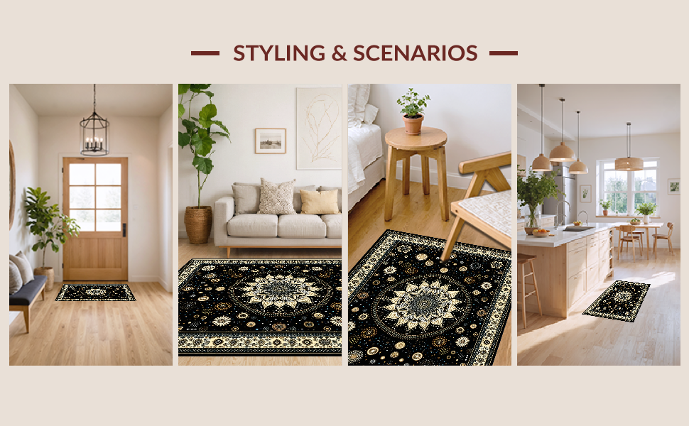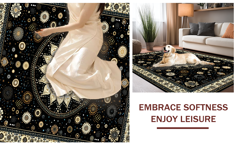 Ultra Soft Area Rug, Non Slip, Stain Resistant, Washable Area Rugs for Living Room, Bedroom, Cozy Textured Fringe Runner(Black) Overview: