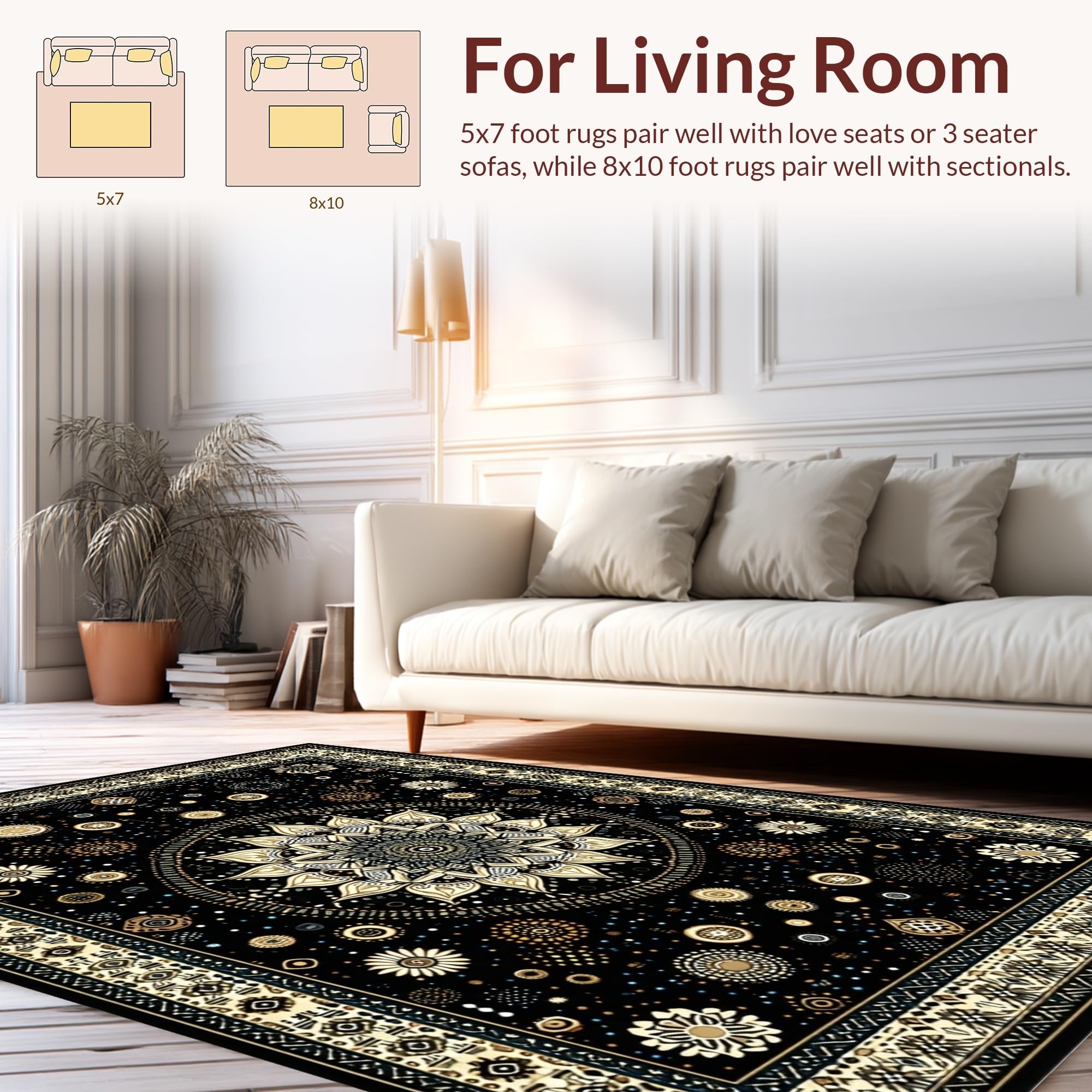 - Durable: Designed for the living room, your rug will be perfectly serviceable for long-term usage in any 'high-traffic' area. Enjoy the underfoot comfort without any shedding.
