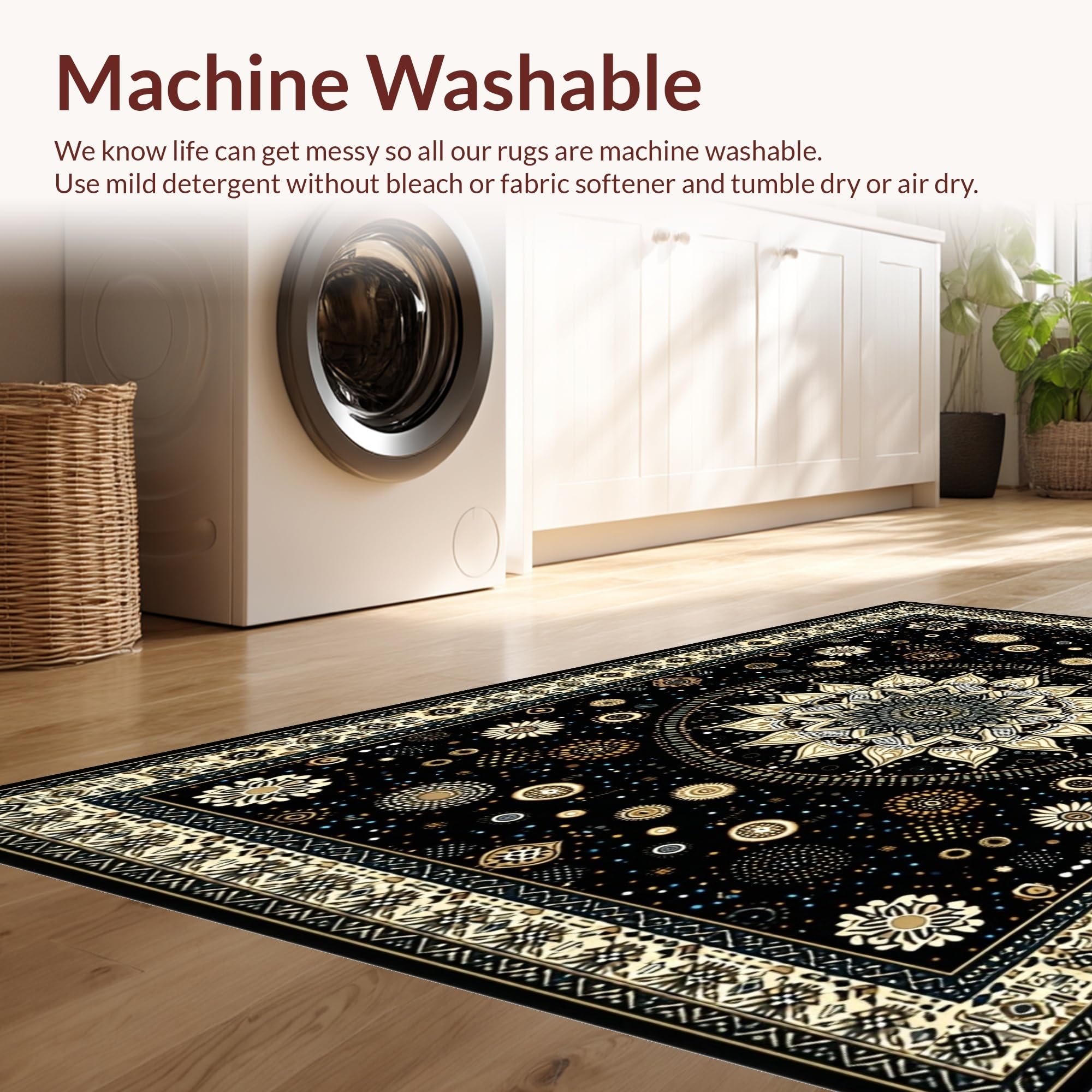 - Machine Washable: Our rugs can be easily thrown in the wash machine.