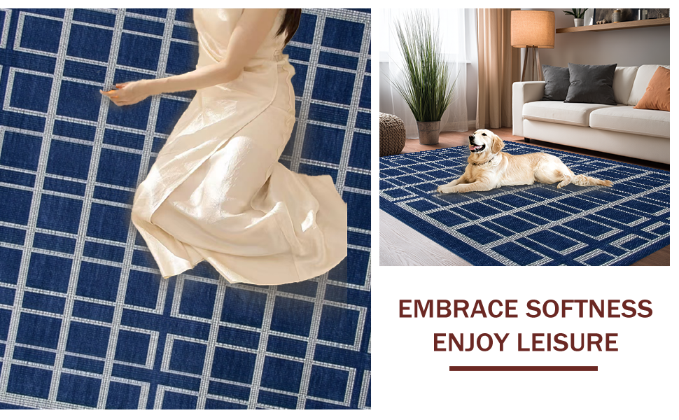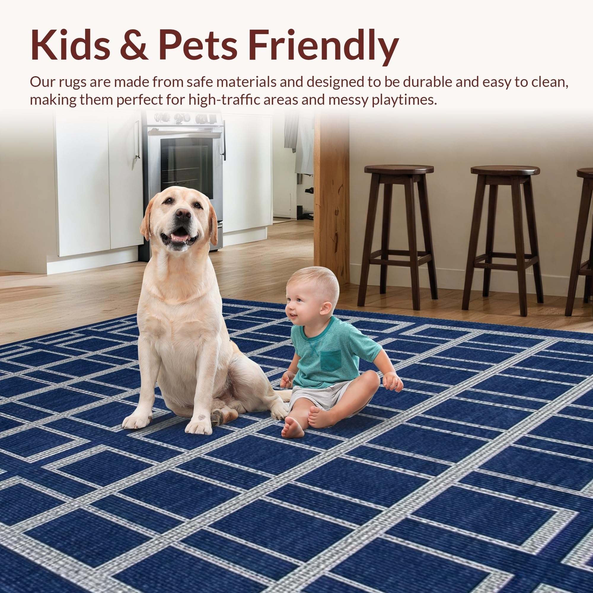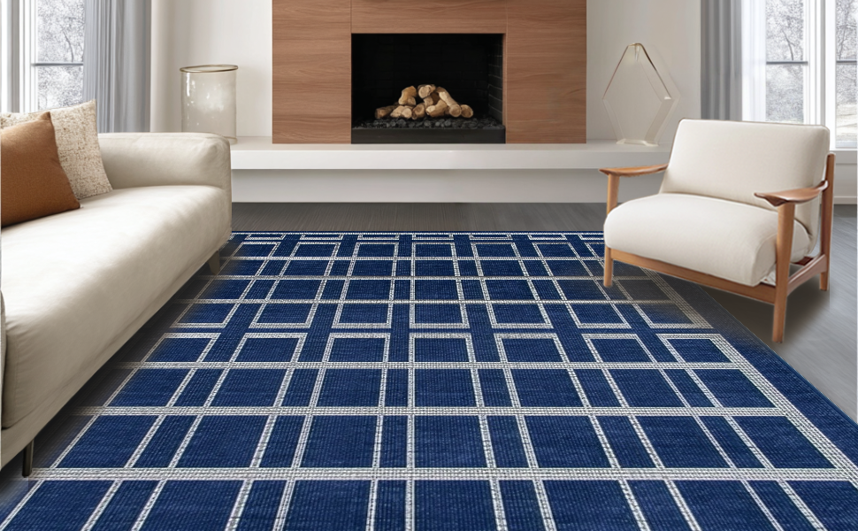Ultra Soft Area Rug, Non Slip, Stain Resistant, Washable Area Rugs for Living Room, Bedroom, Cozy Textured Geometric Aesthetic(Blue) Overview: