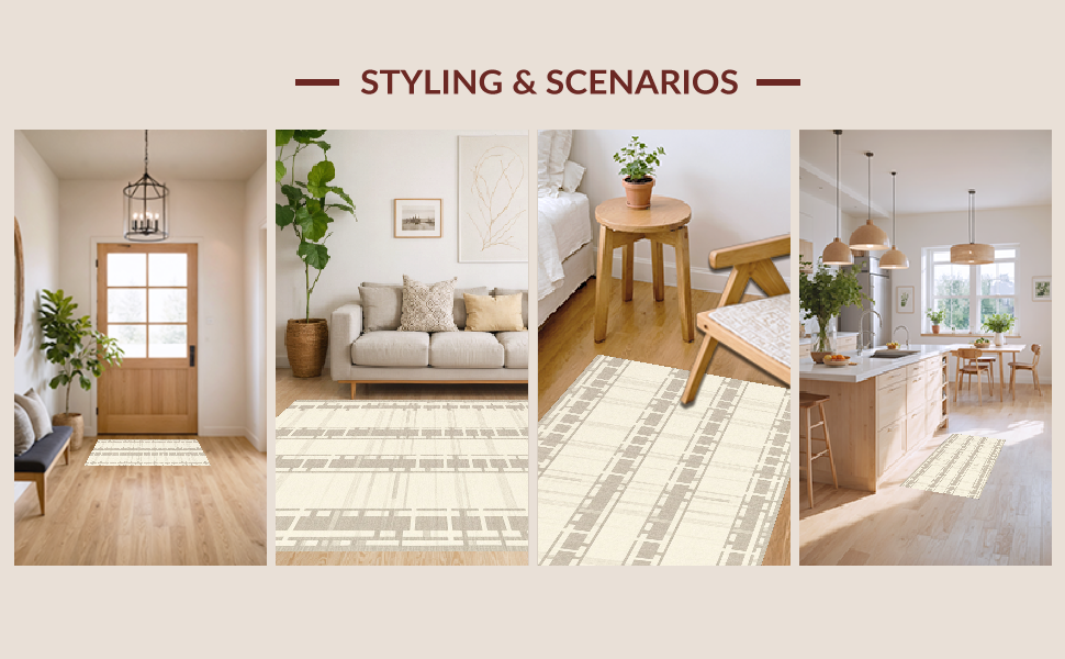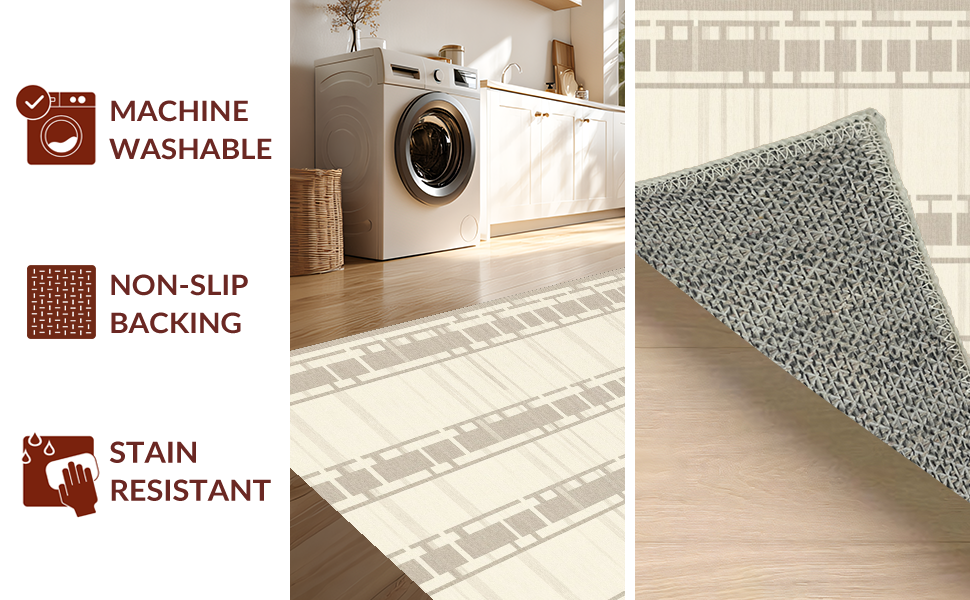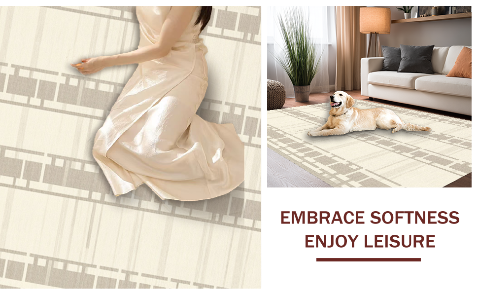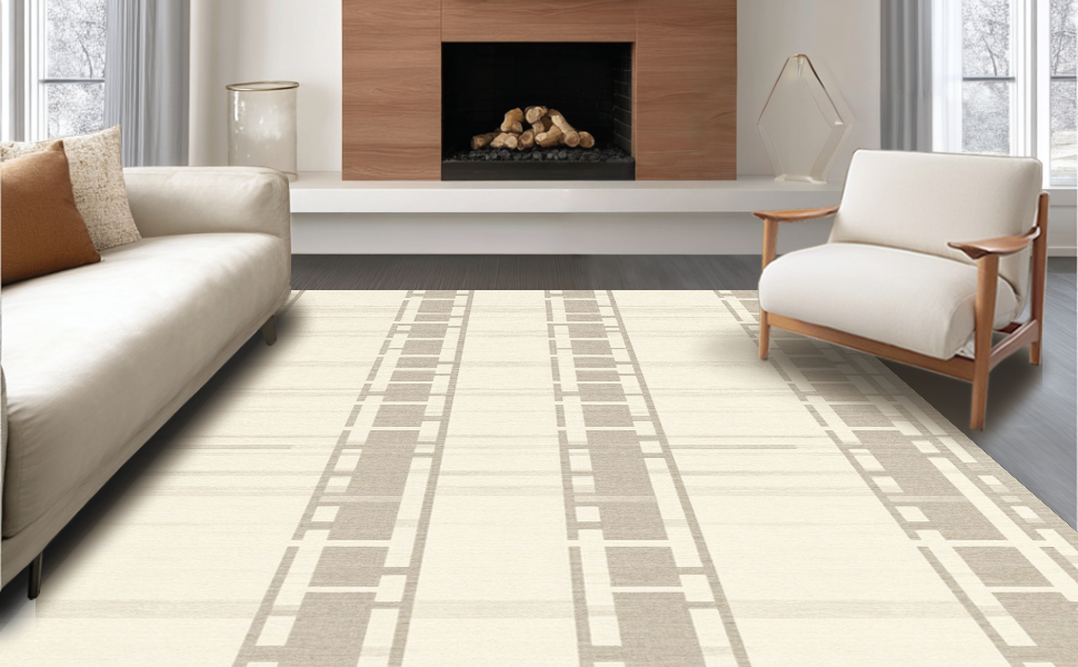 Ultra Soft Area Rug, Non Slip, Stain Resistant, Washable Area Rugs for Living Room, Bedroom, Cozy Textured Ladder Style(Beige) Overview: