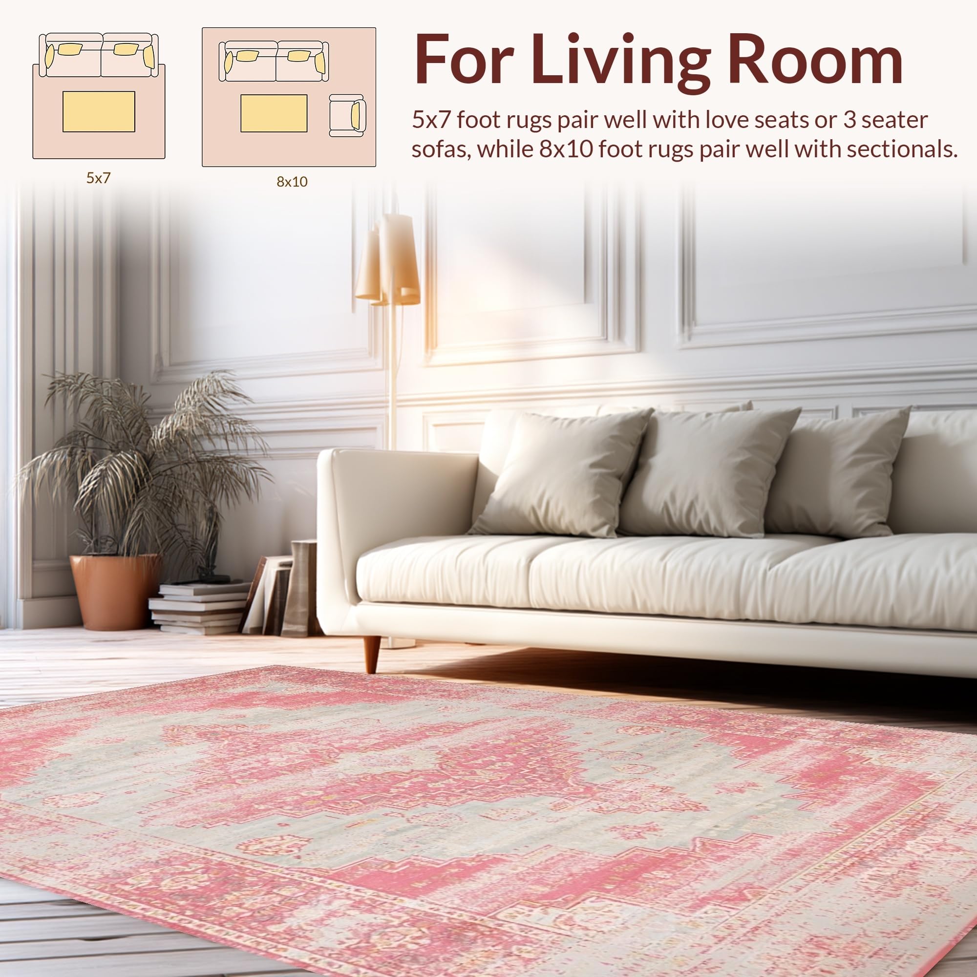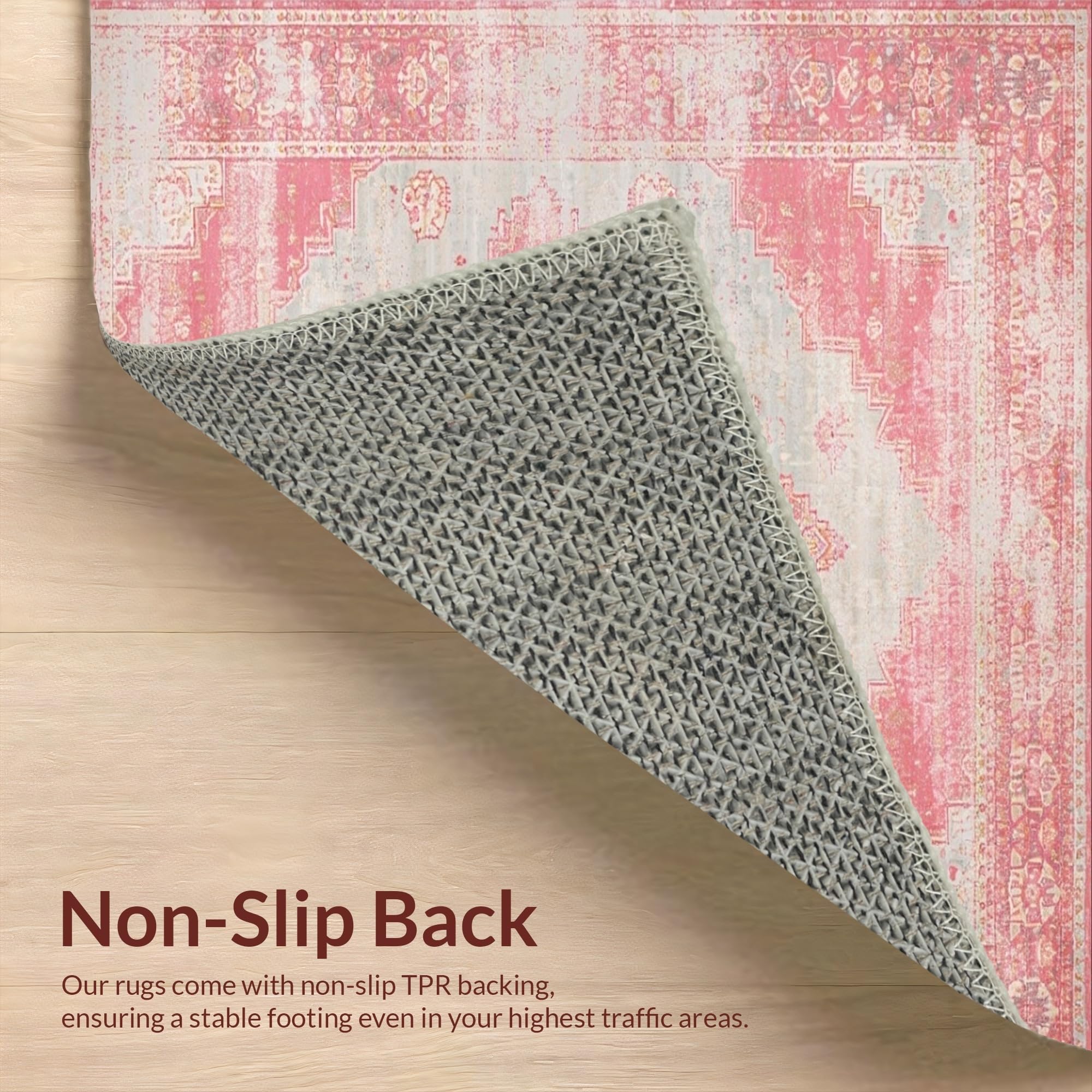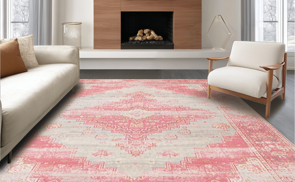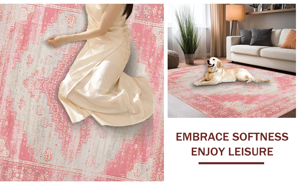 Ultra Soft Area Rug, Non Slip, Stain Resistant, Washable Area Rugs for Living Room, Bedroom, Cozy Textured Linear Accents(Pink) Overview: