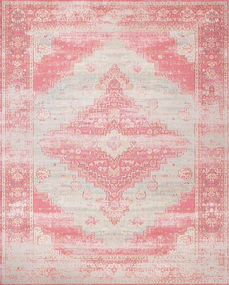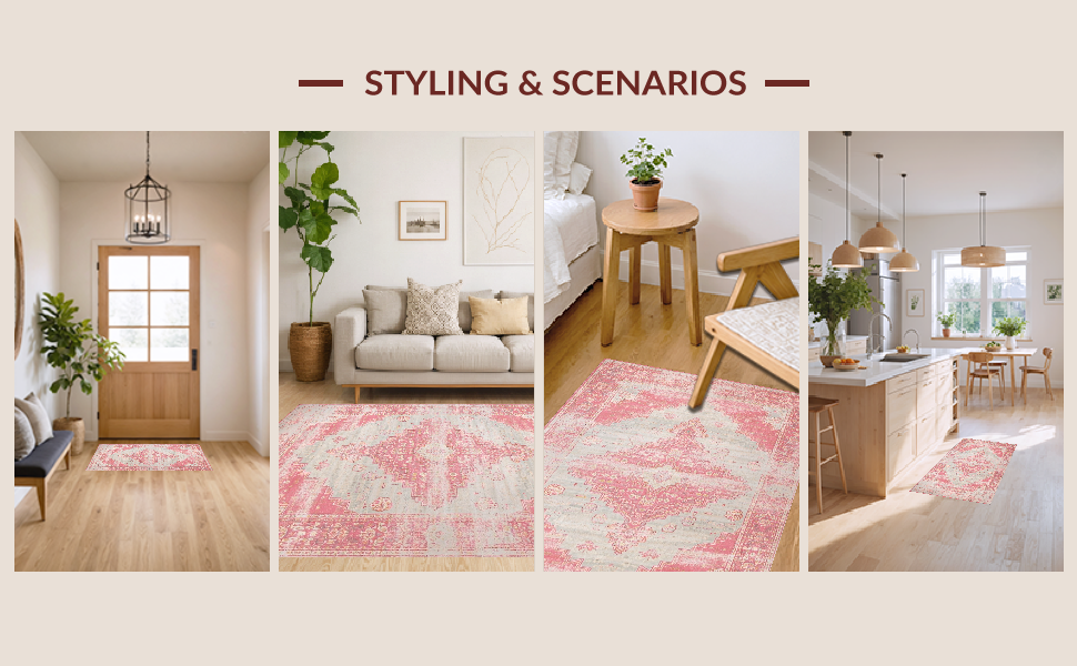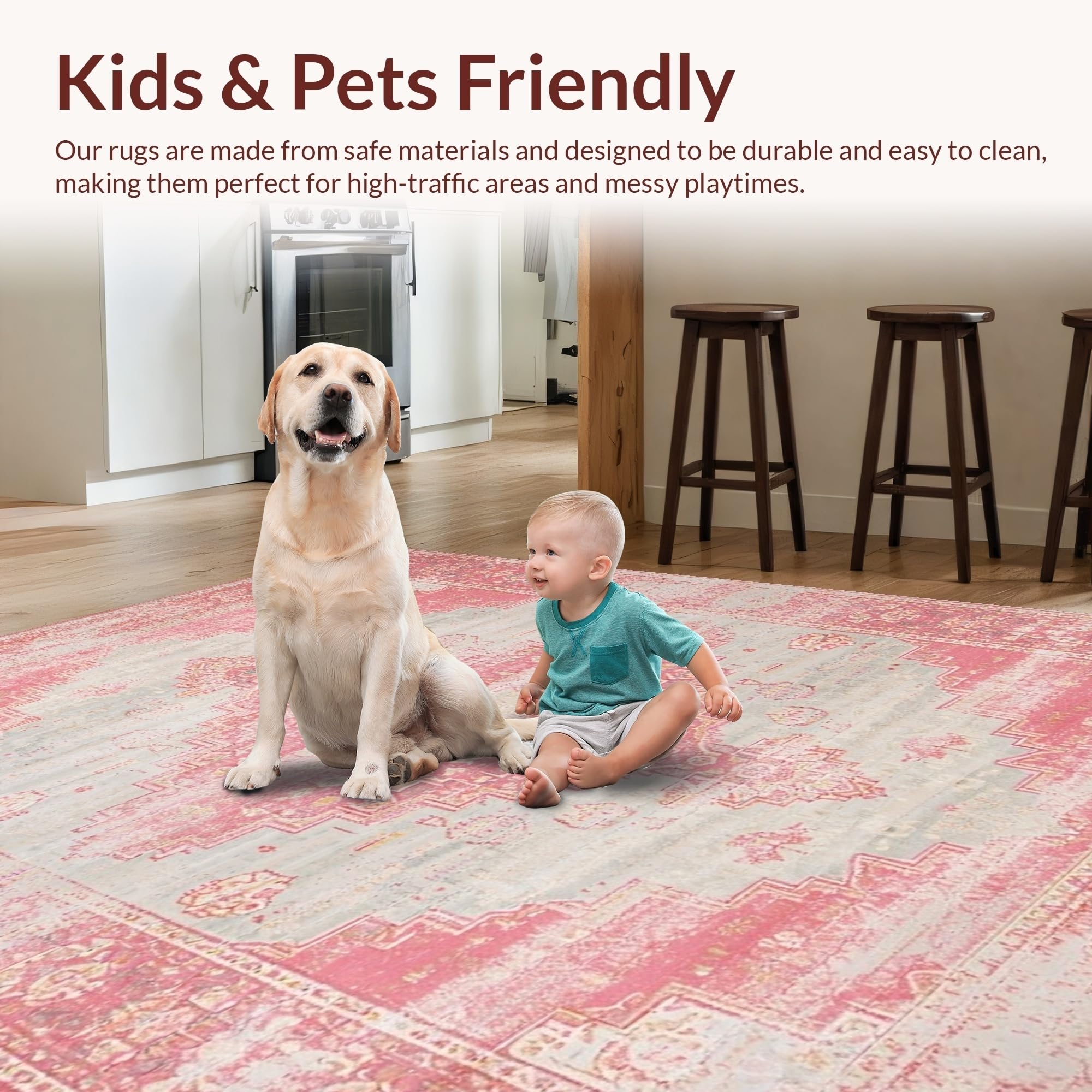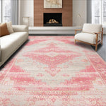 Ultra Soft Area Rug, Non Slip, Stain Resistant, Washable Area Rugs for Living Room, Bedroom, Cozy Textured Linear Accents(Pink) Overview: