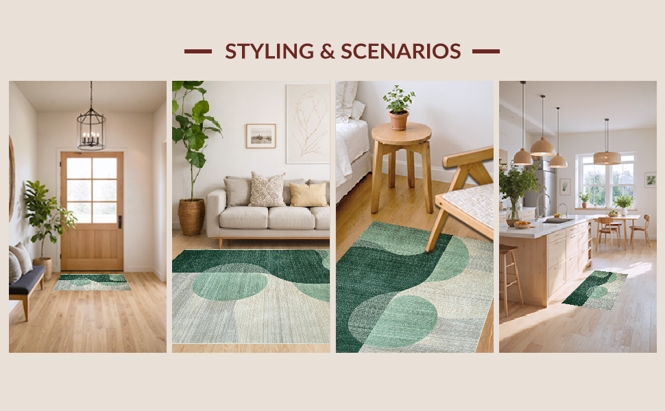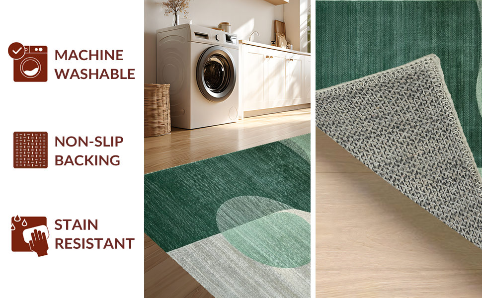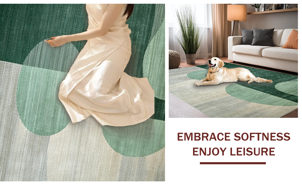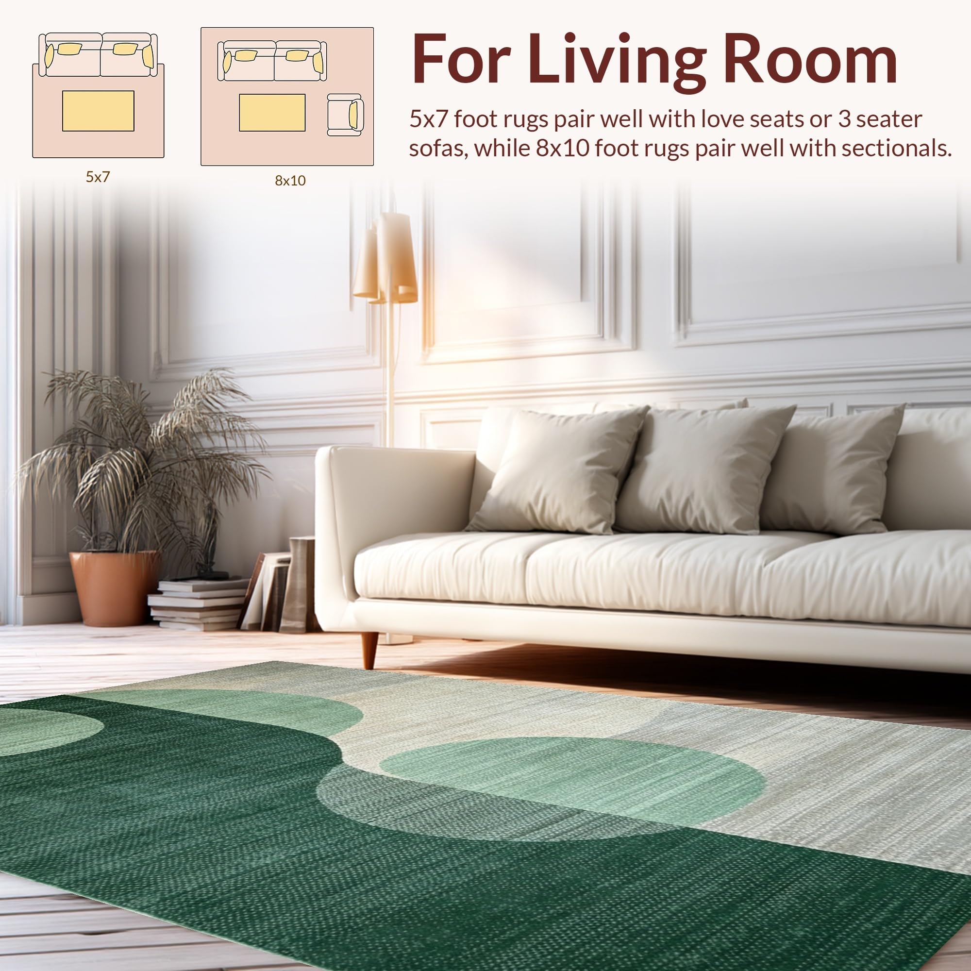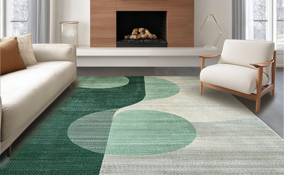 Ultra Soft Area Rug, Non Slip, Stain Resistant, Washable Area Rugs for Living Room, Bedroom, Cozy Textured Linear Design(Green) Overview: