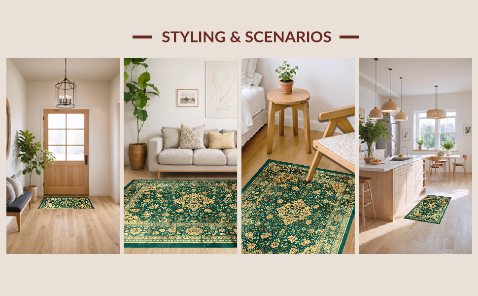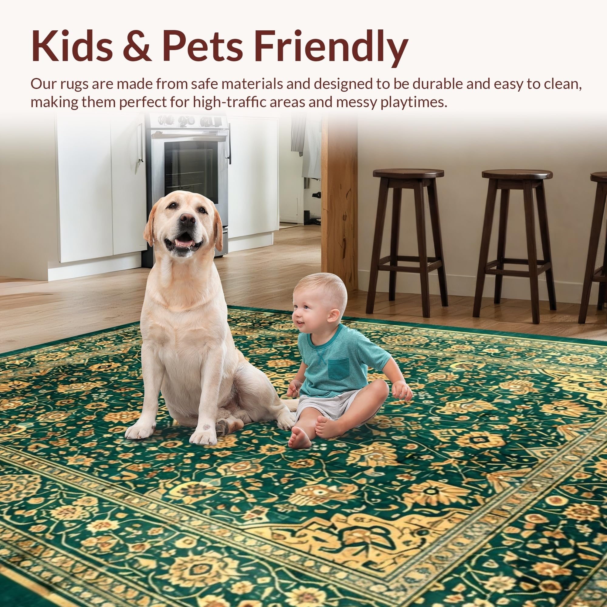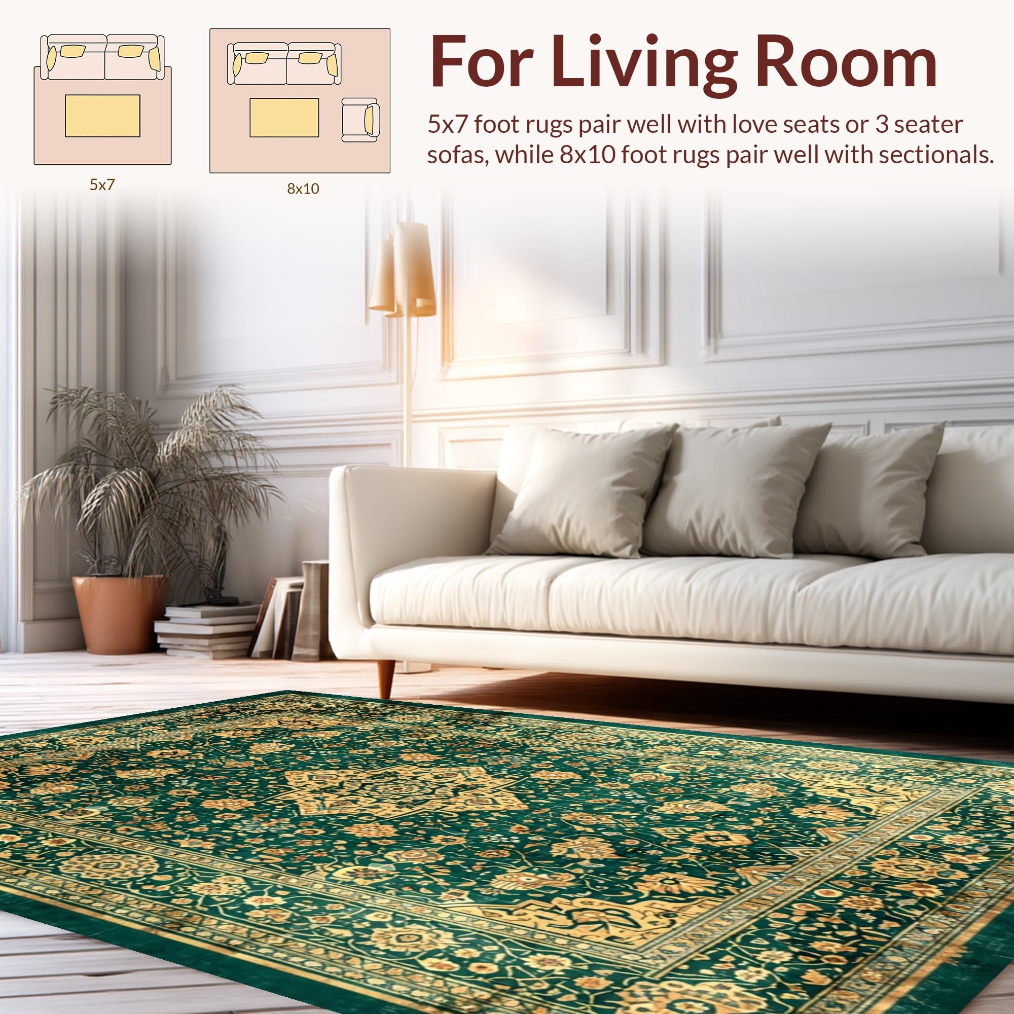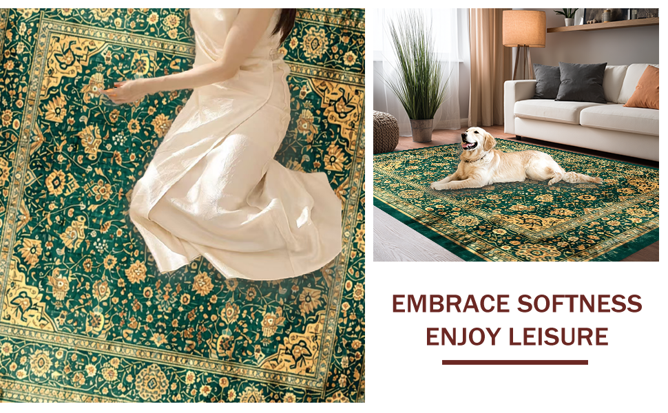 Ultra Soft Area Rug, Non Slip, Stain Resistant, Washable Area Rugs for Living Room, Bedroom, Cozy Textured Linear Patterning(Green) Overview:
