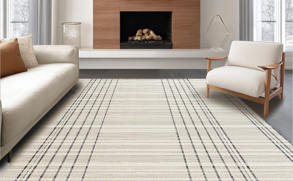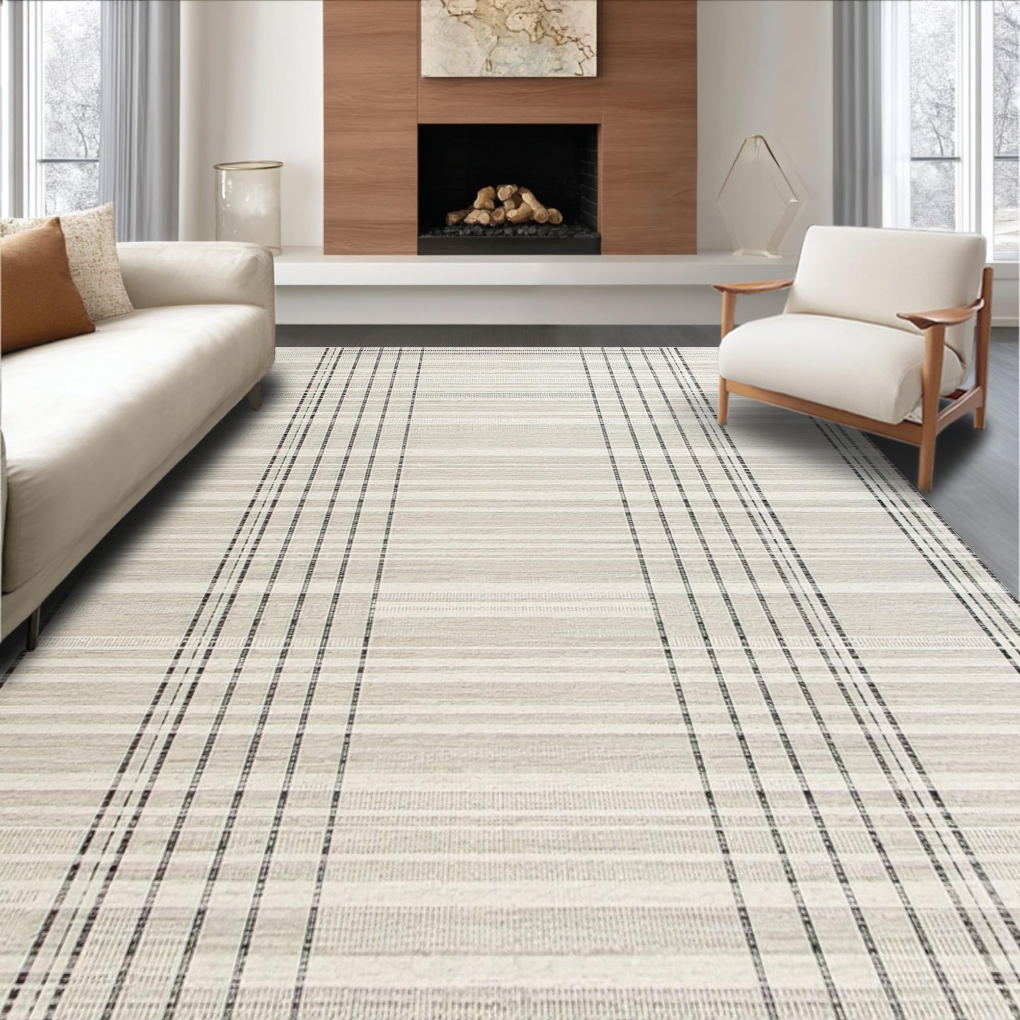 Ultra Soft Area Rug, Non Slip, Stain Resistant, Washable Area Rugs for Living Room, Bedroom, Cozy Textured Symmetrical Patterns(Beige) Overview: