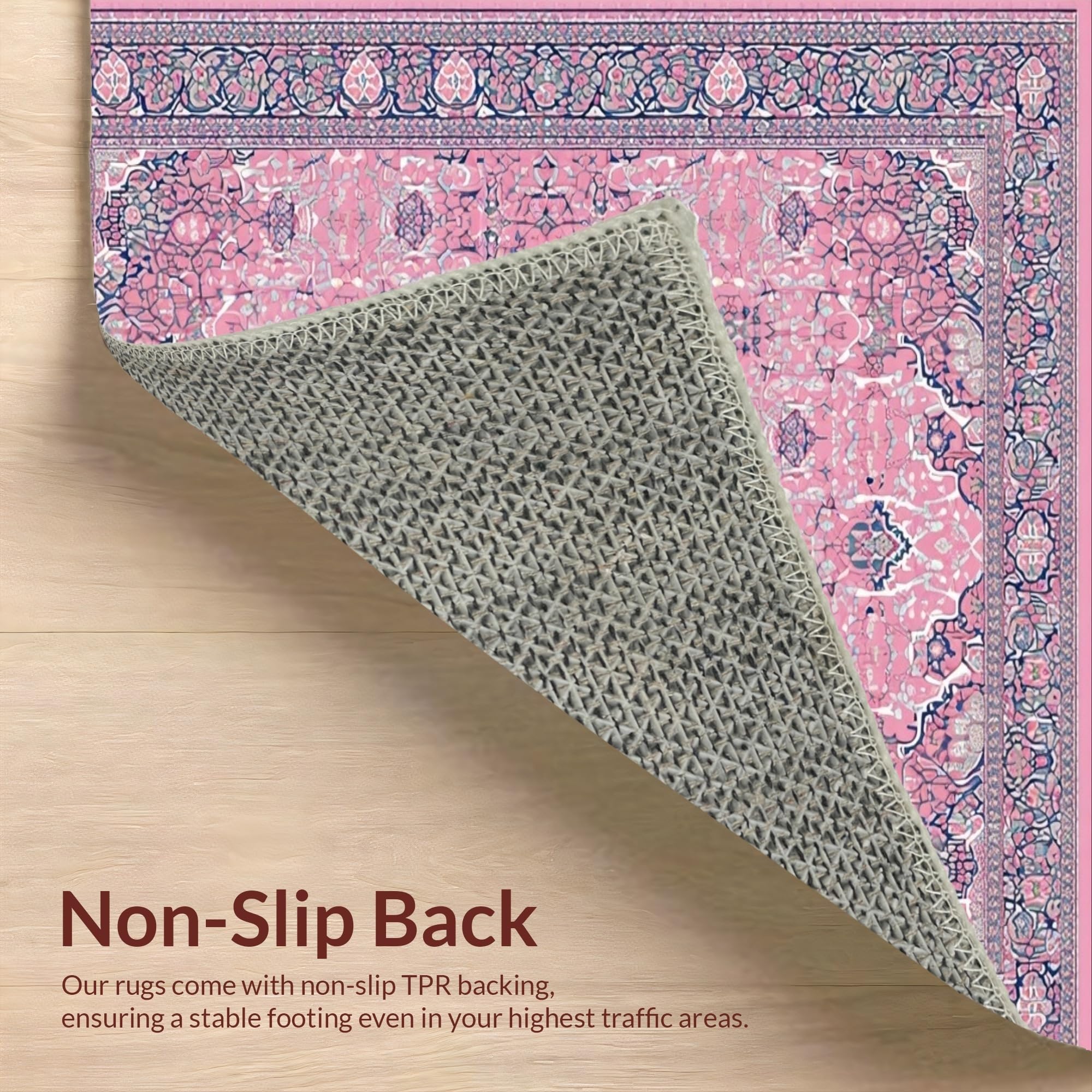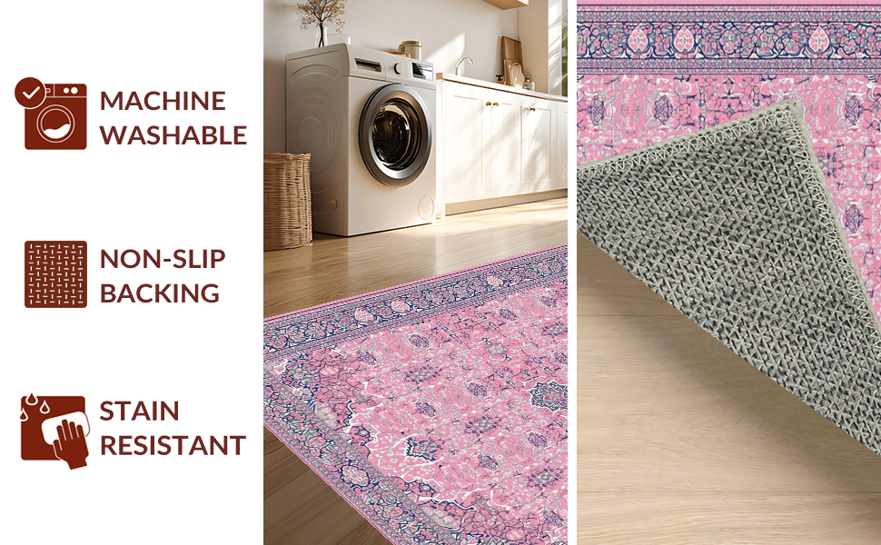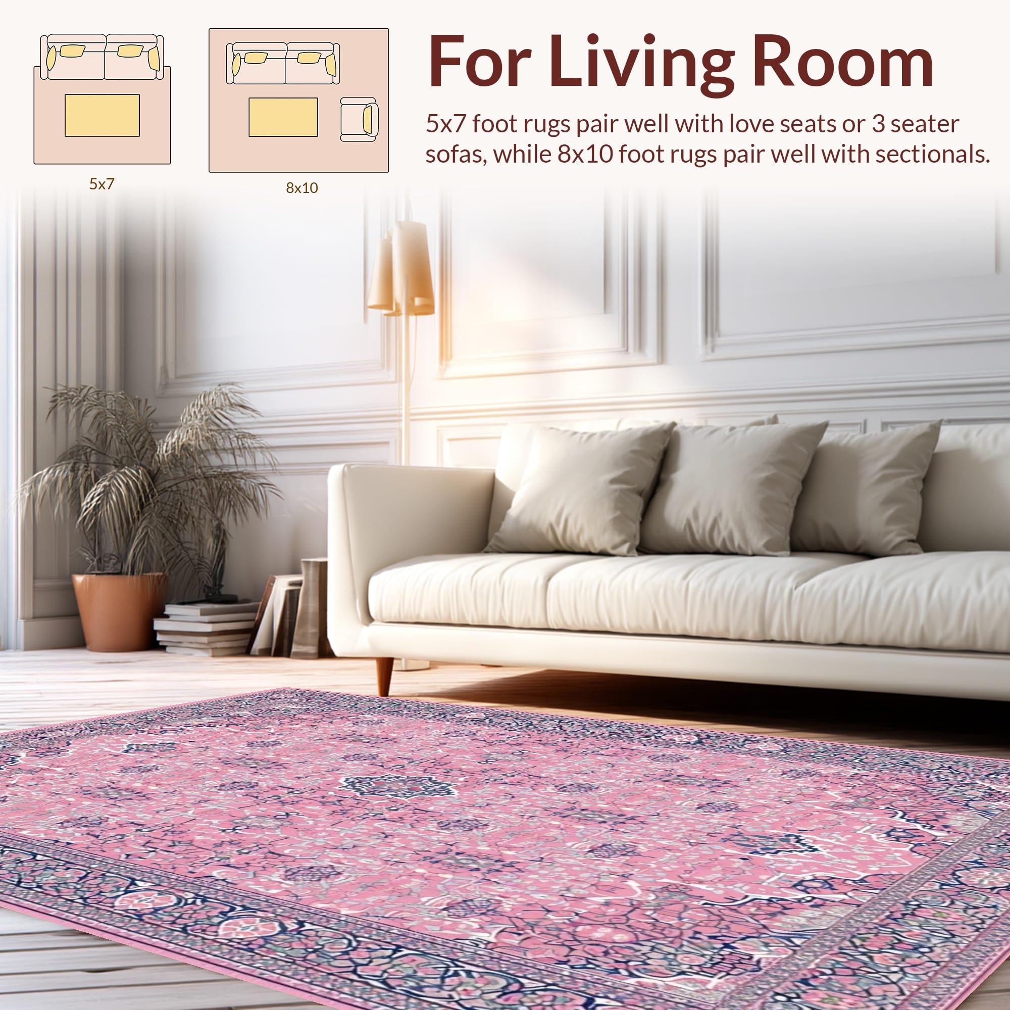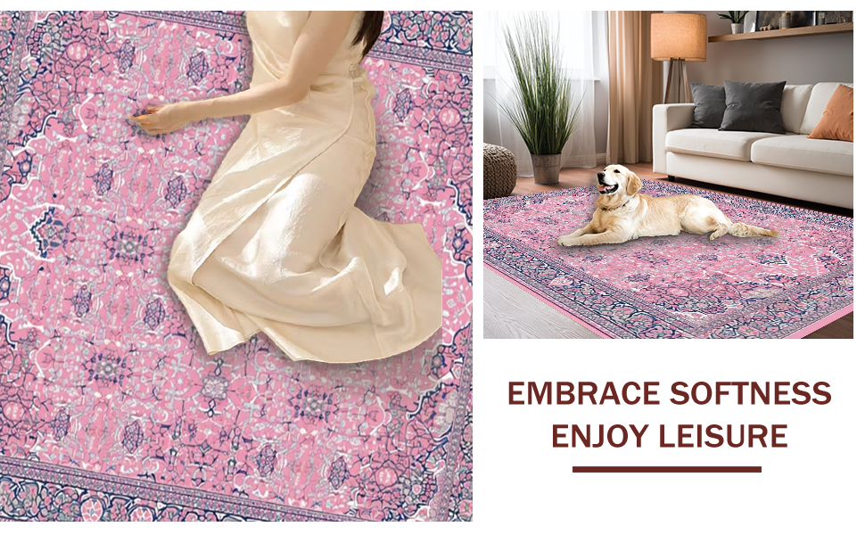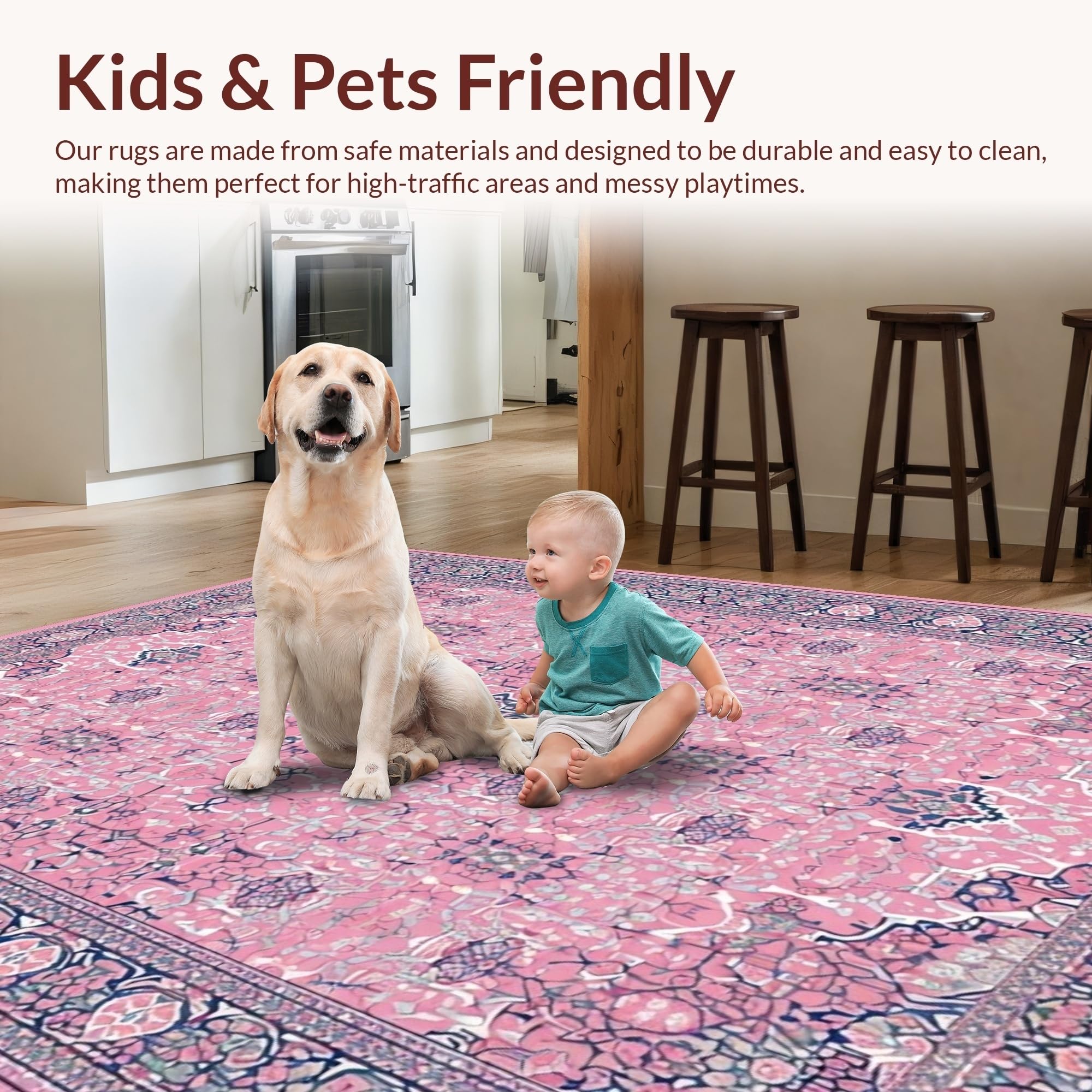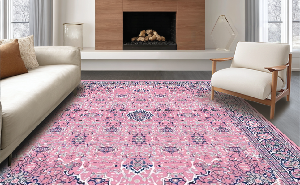 Ultra Soft Area Rug, Non Slip, Stain Resistant, Washable Area Rugs for Living Room, Bedroom, Cozy Traditional Trellis Style(Pink) Overview: