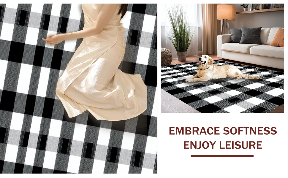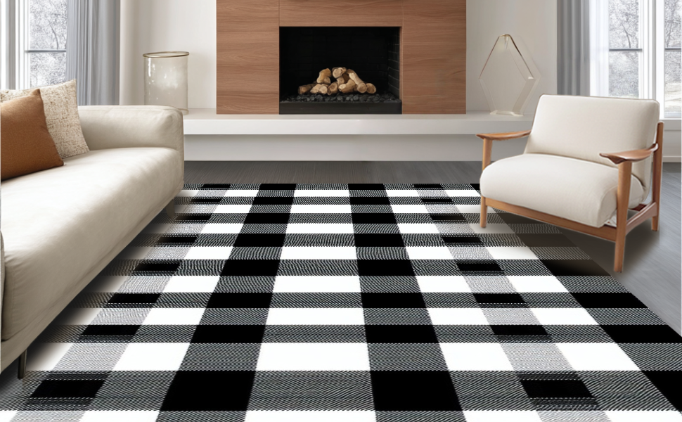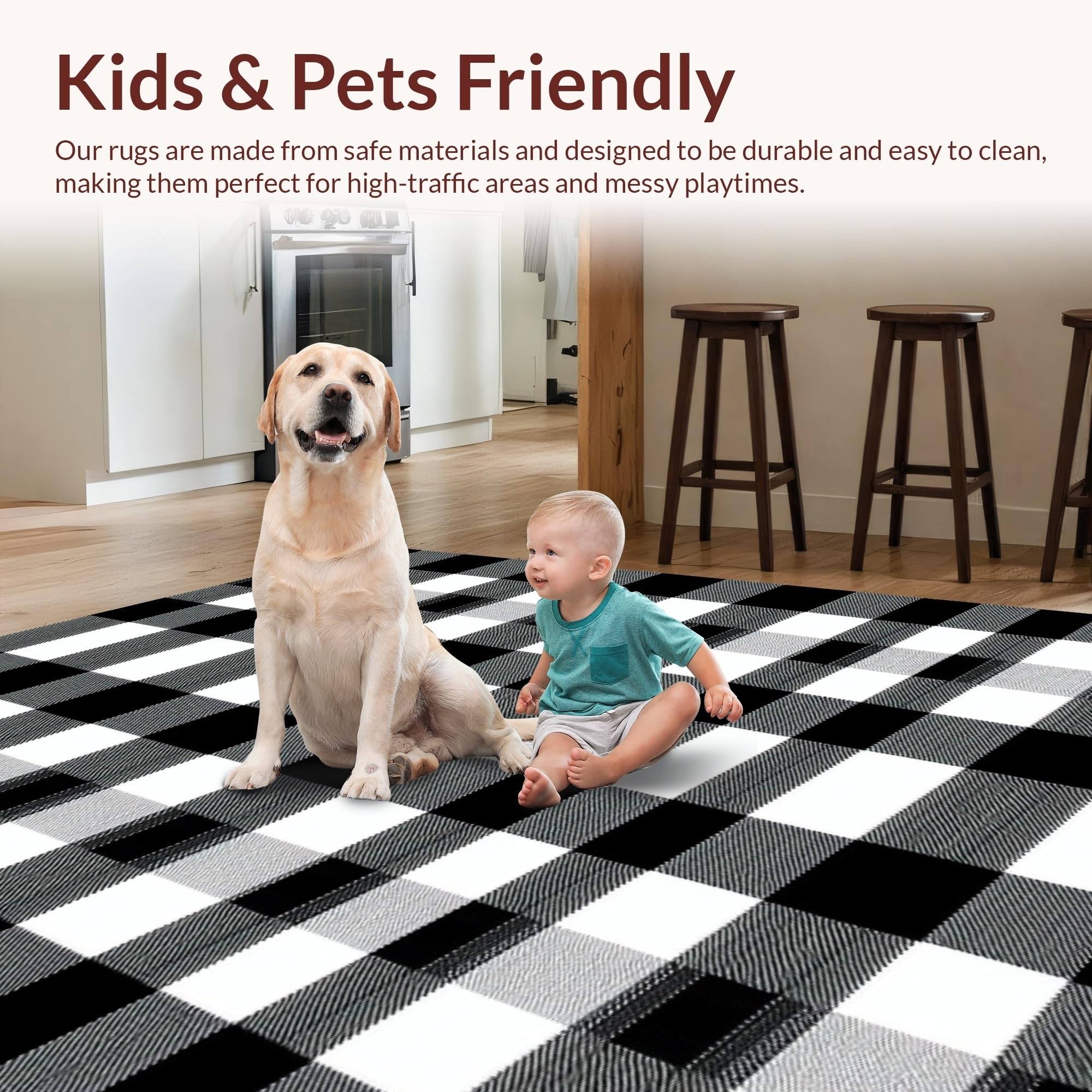 Ultra Soft Area Rug, Non Slip, Stain Resistant, Washable Area Rugs for Living Room, Bedroom, Cozy Transitional Black and White Pattern(Black) Overview: