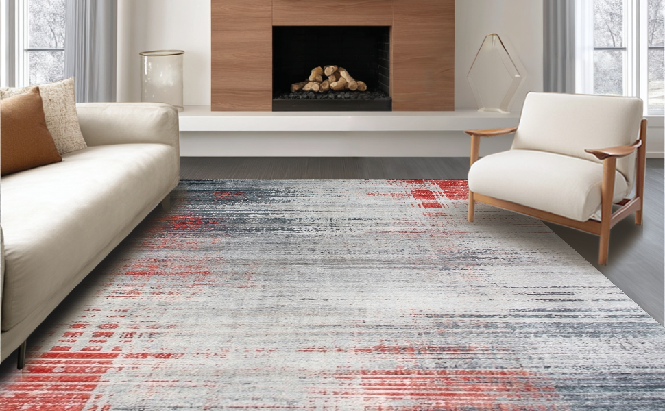Ultra Soft Area Rug, Non Slip, Stain Resistant, Washable Area Rugs for Living Room, Bedroom, Cozy Transitional Color Palette(Gray) Overview: