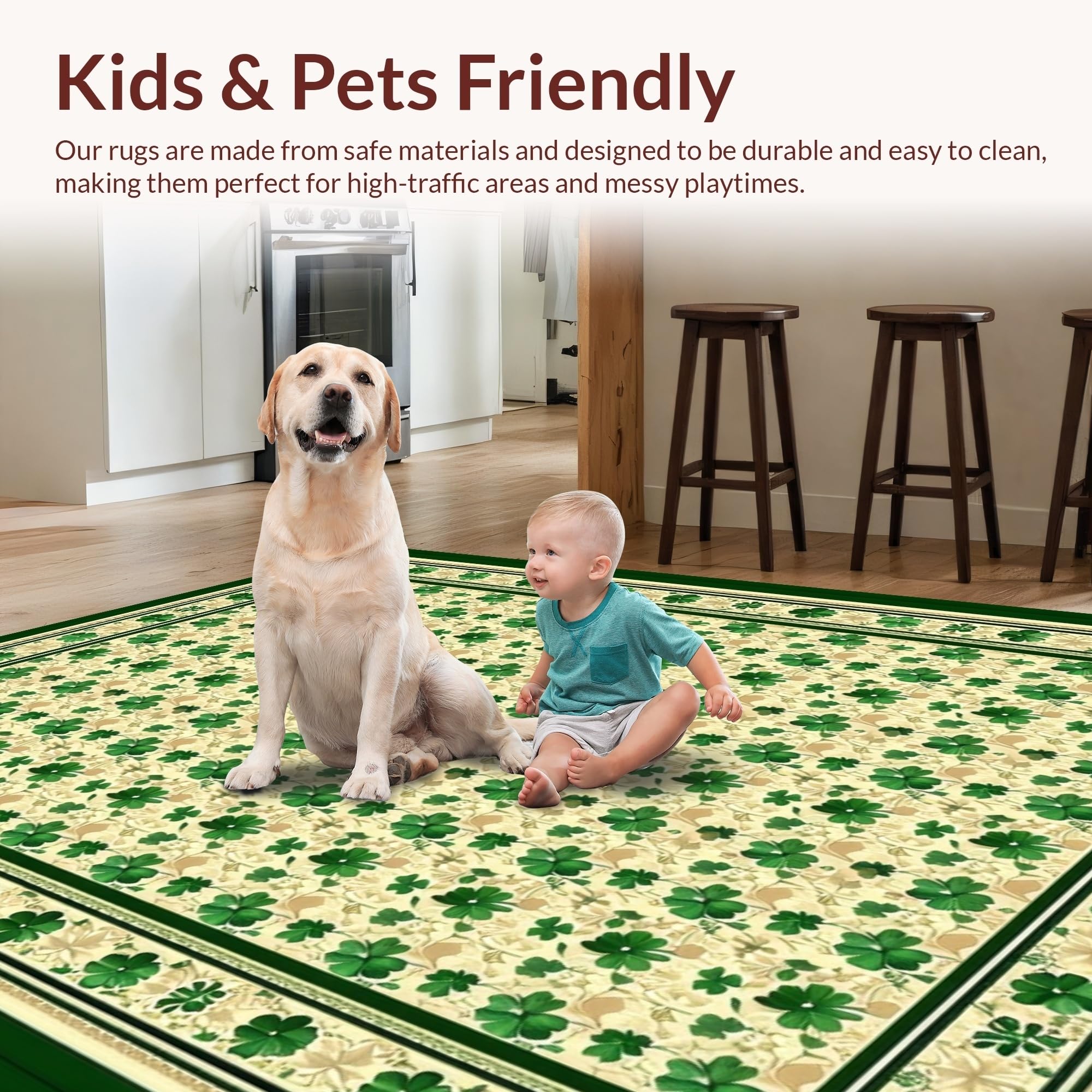 Ultra Soft Area Rug, Non Slip, Stain Resistant, Washable Area Rugs for Living Room, Bedroom, Cozy Transitional Floral Aesthetic(Green) Overview: