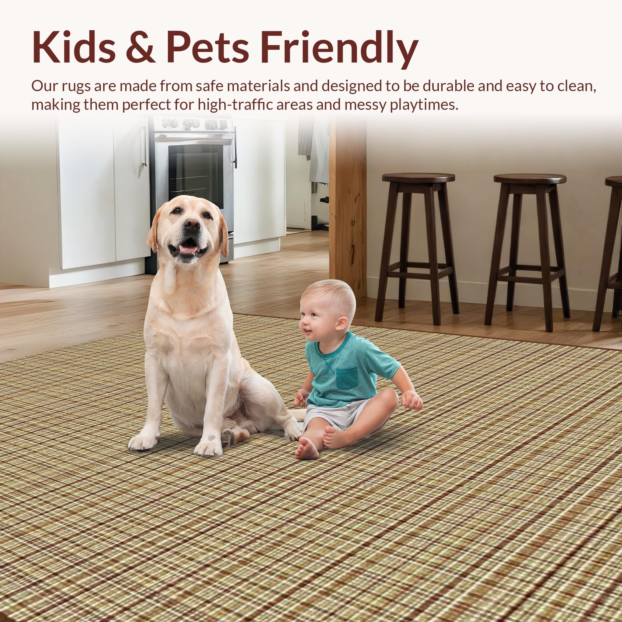 Ultra Soft Area Rug, Non Slip, Stain Resistant, Washable Area Rugs for Living Room, Bedroom, Cozy Transitional Symmetrical Elements(Beige) Overview: