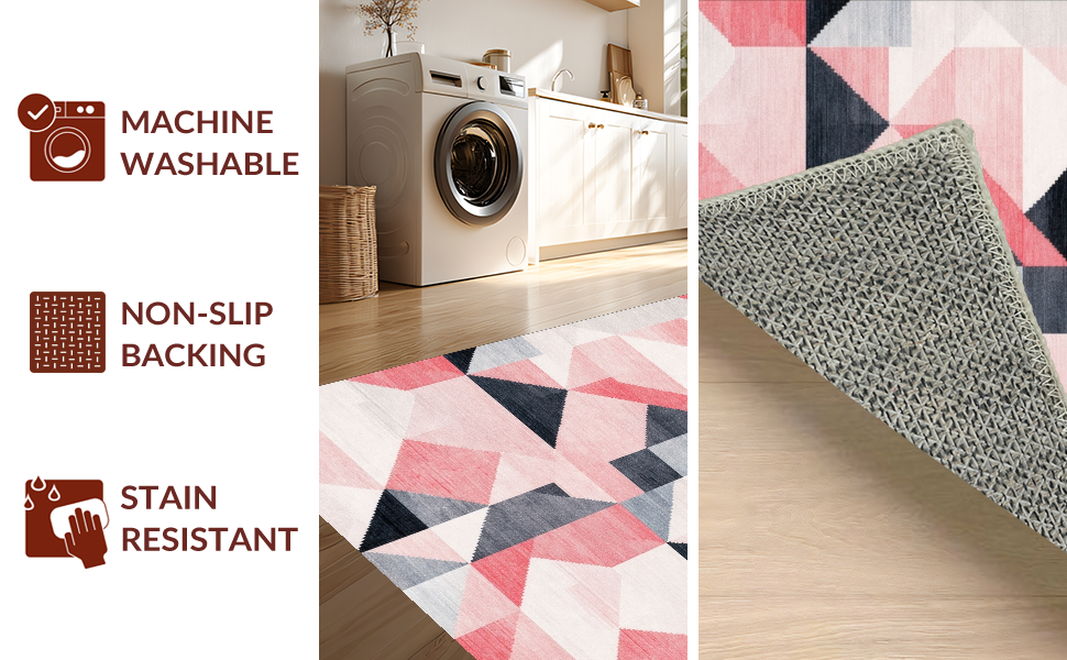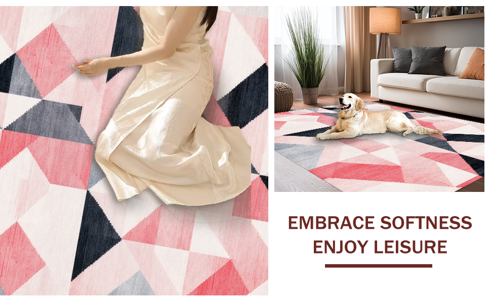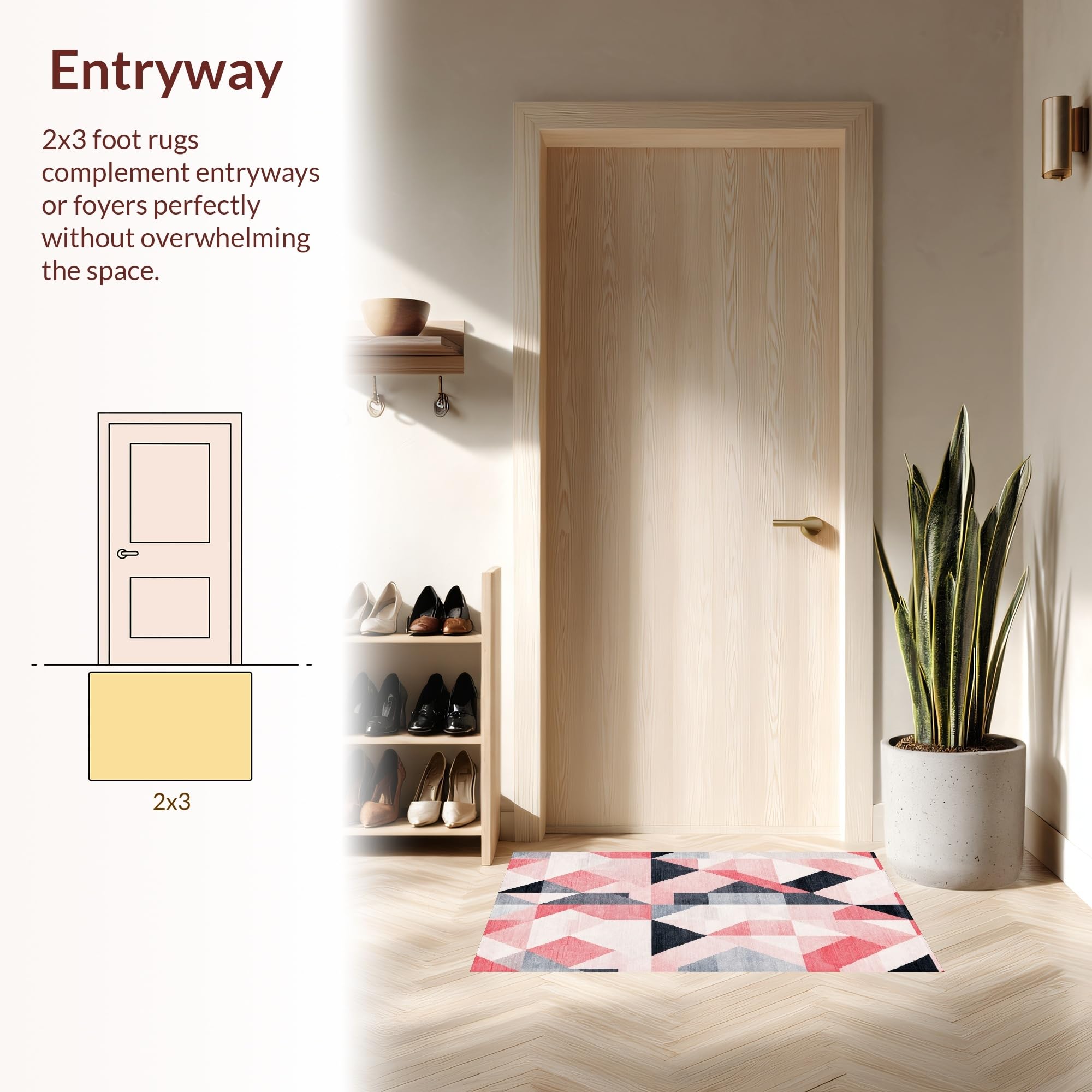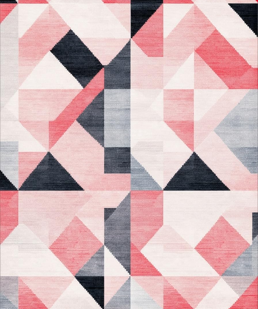 Ultra Soft Area Rug, Non Slip, Stain Resistant, Washable Area Rugs for Living Room, Bedroom, Cozy Triangle Motif in Pastels(Pink) Overview: