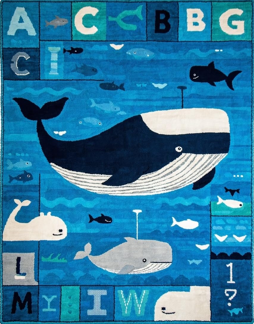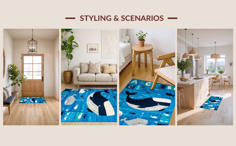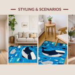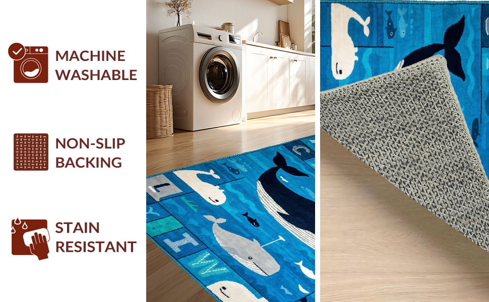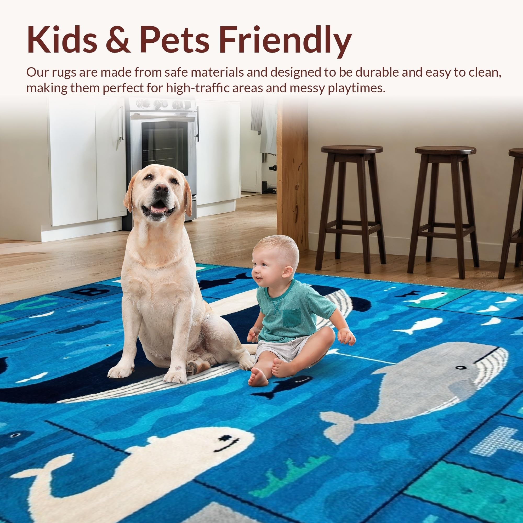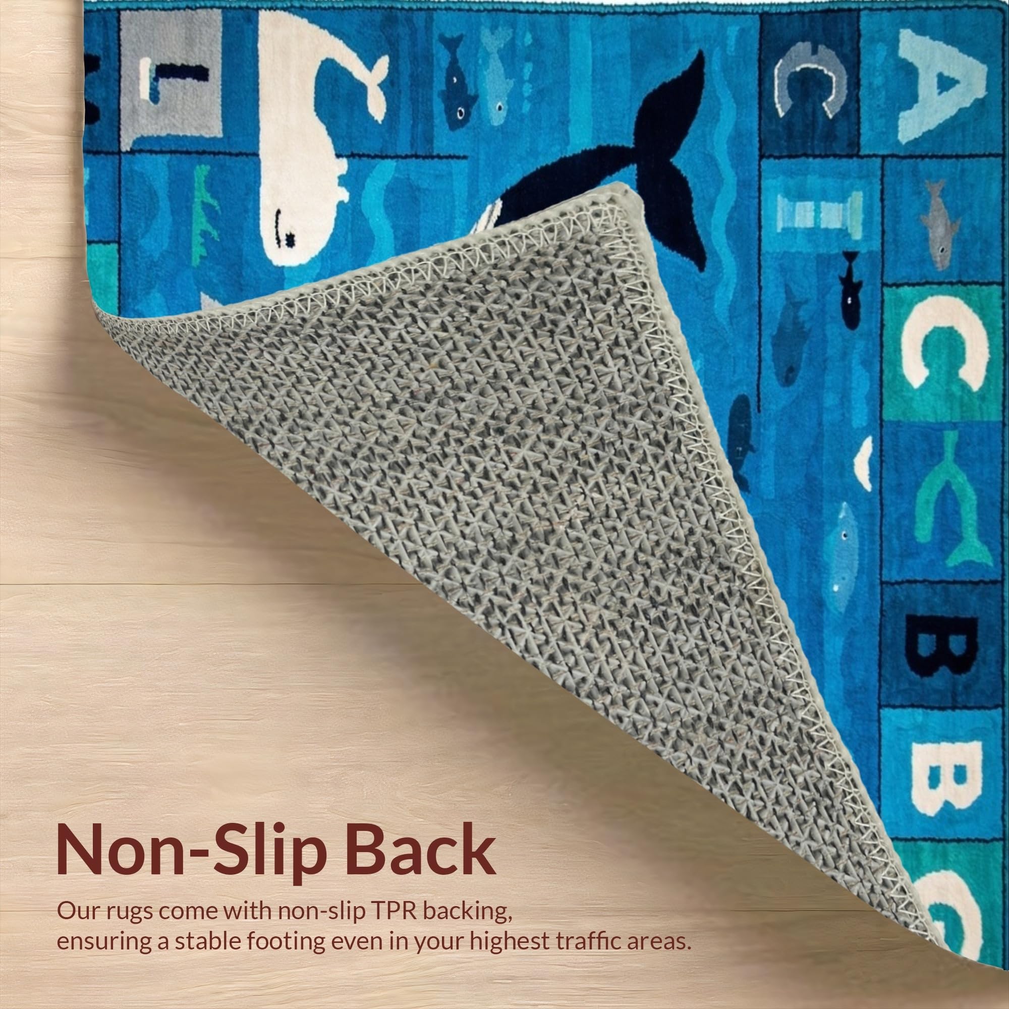 Ultra Soft Area Rug, Non Slip, Stain Resistant, Washable Area Rugs for Living Room, Bedroom, Cozy Underwater Alphabetic Illustration(Blue) Overview: