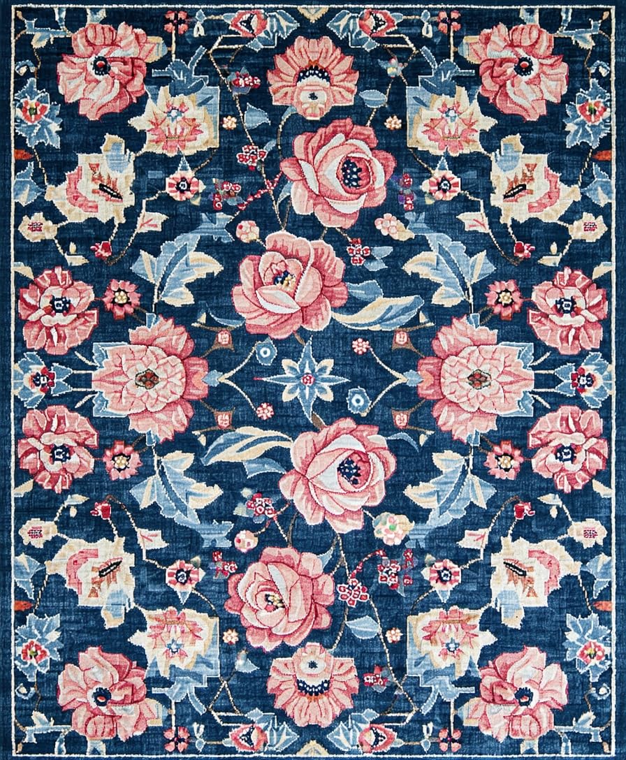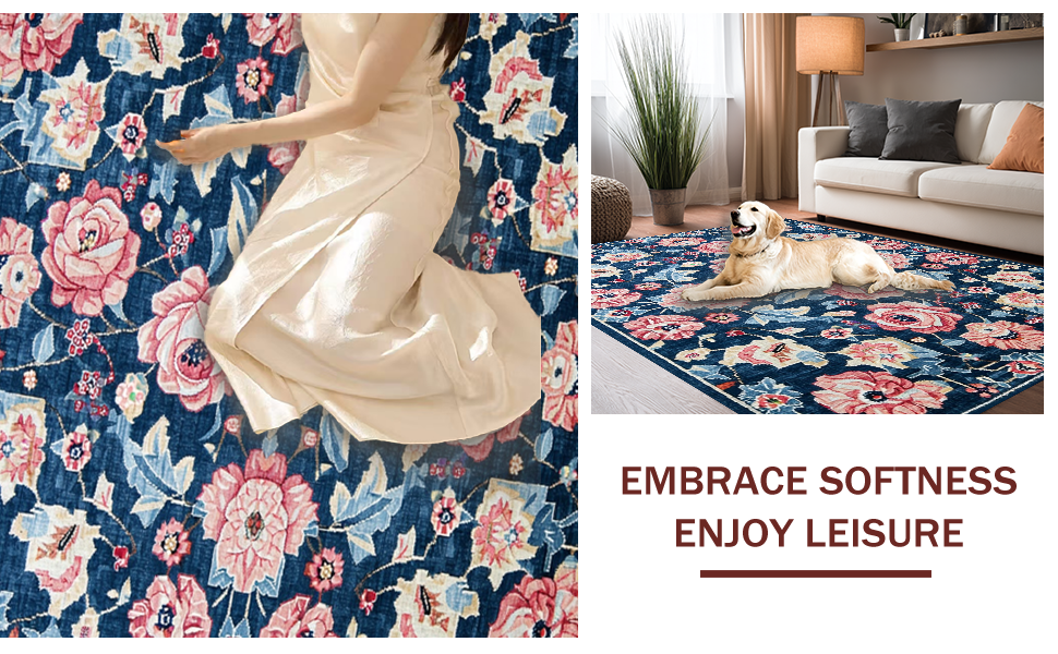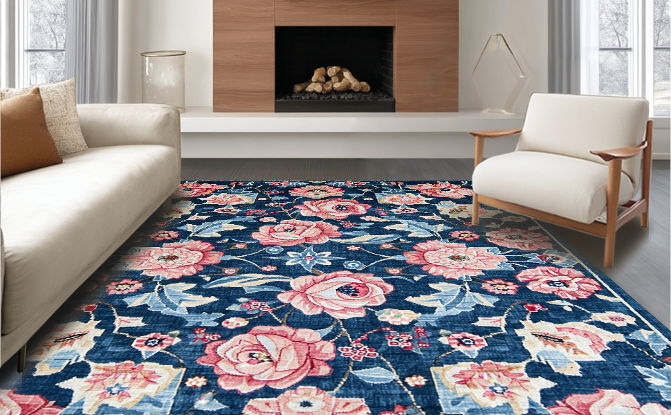 Ultra Soft Area Rug, Non Slip, Stain Resistant, Washable Area Rugs for Living Room, Bedroom, Cozy Vintage Abstract Arrangement(Blue) Overview: