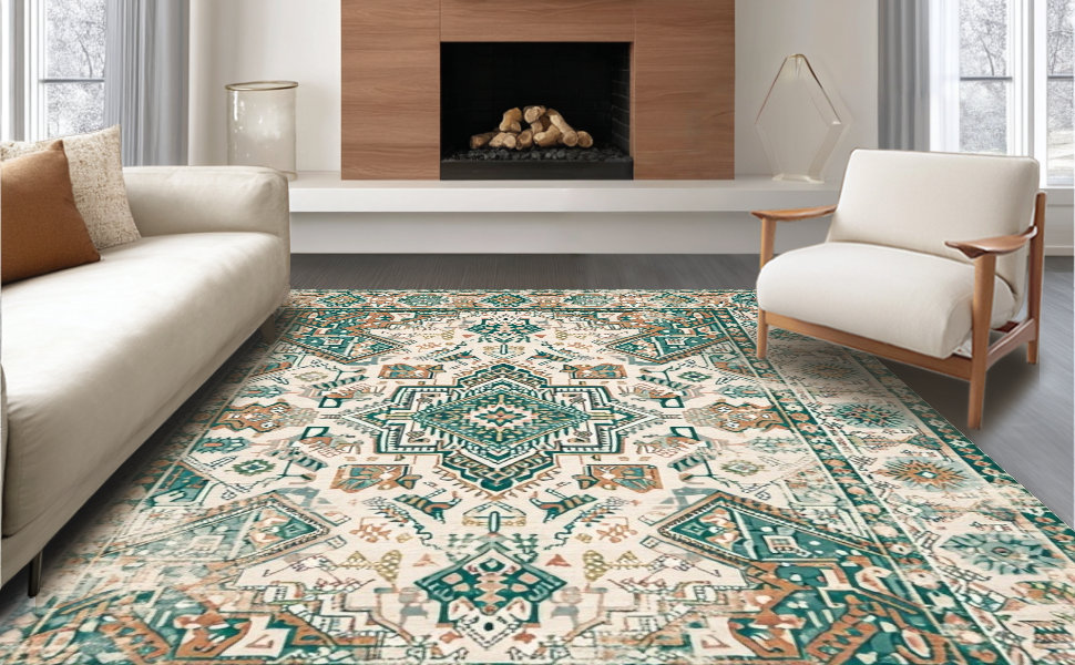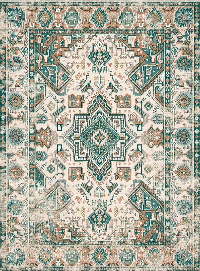Ultra Soft Area Rug, Non Slip, Stain Resistant, Washable Area Rugs for Living Room, Bedroom, Cozy Vintage Damask Influence(Beige) Overview: