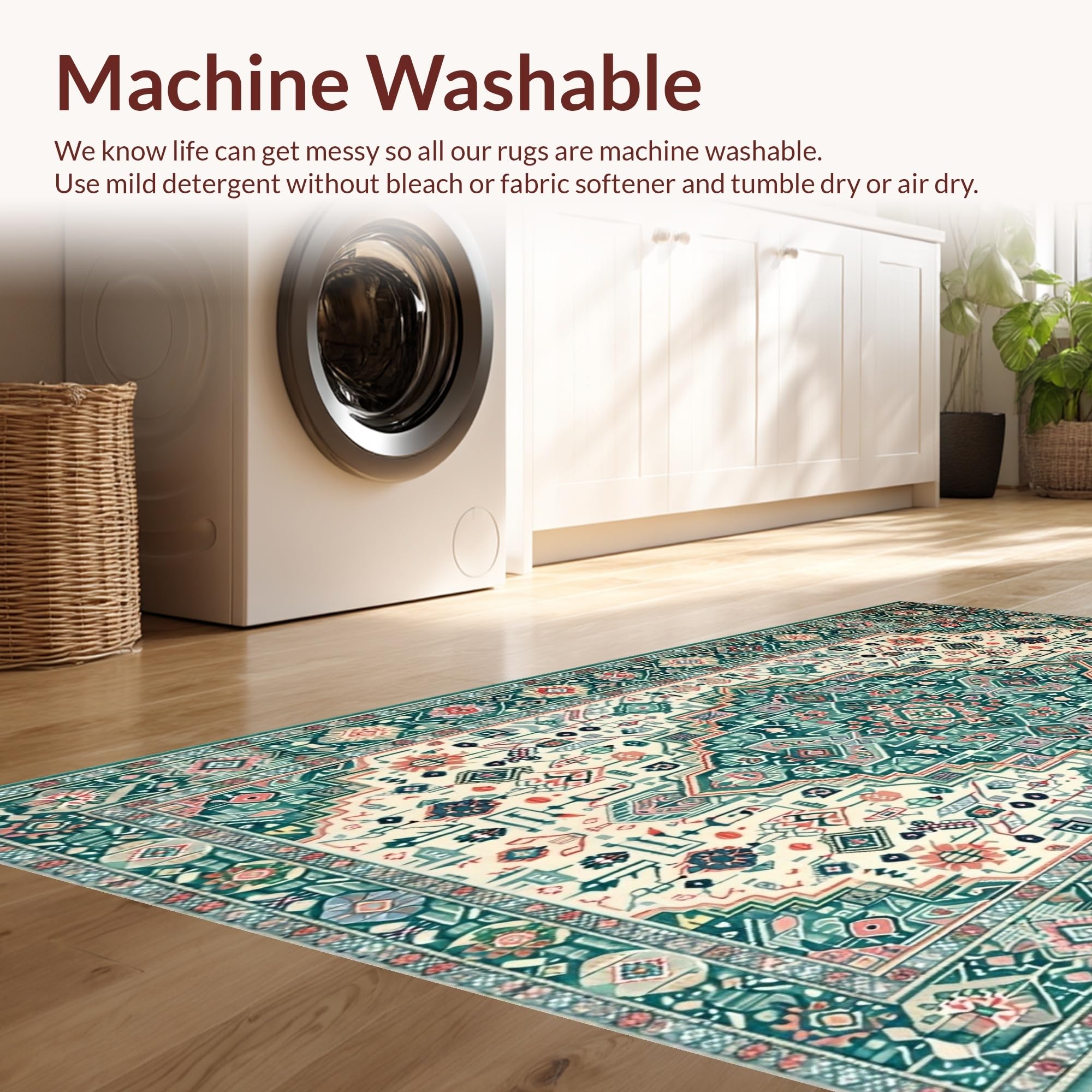 - Machine Washable: Our rugs can be easily thrown in the wash machine.