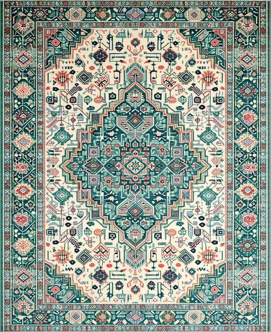 Ultra Soft Area Rug, Non Slip, Stain Resistant, Washable Area Rugs for Living Room, Bedroom, Cozy Vintage Dot Design(Ivory) Overview: