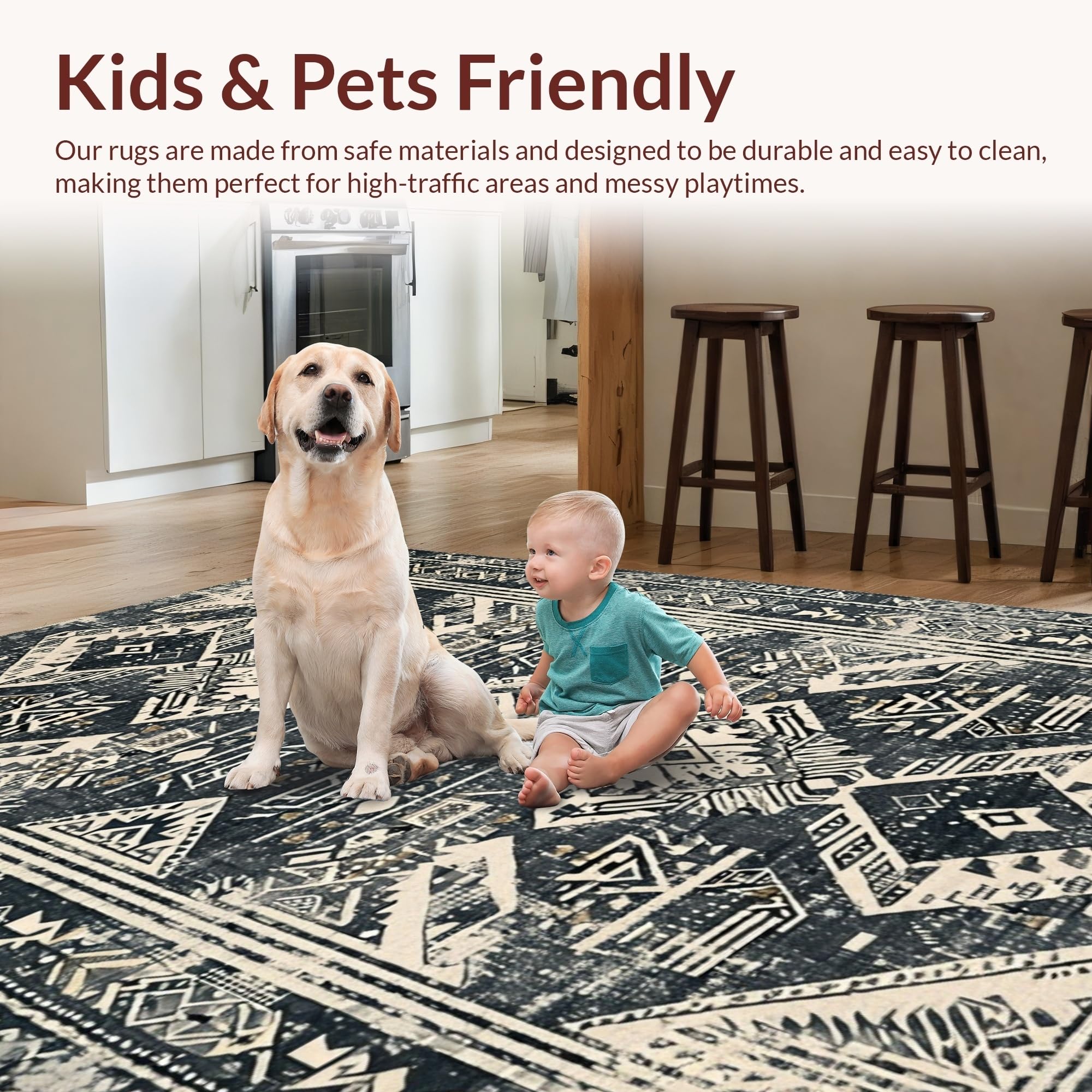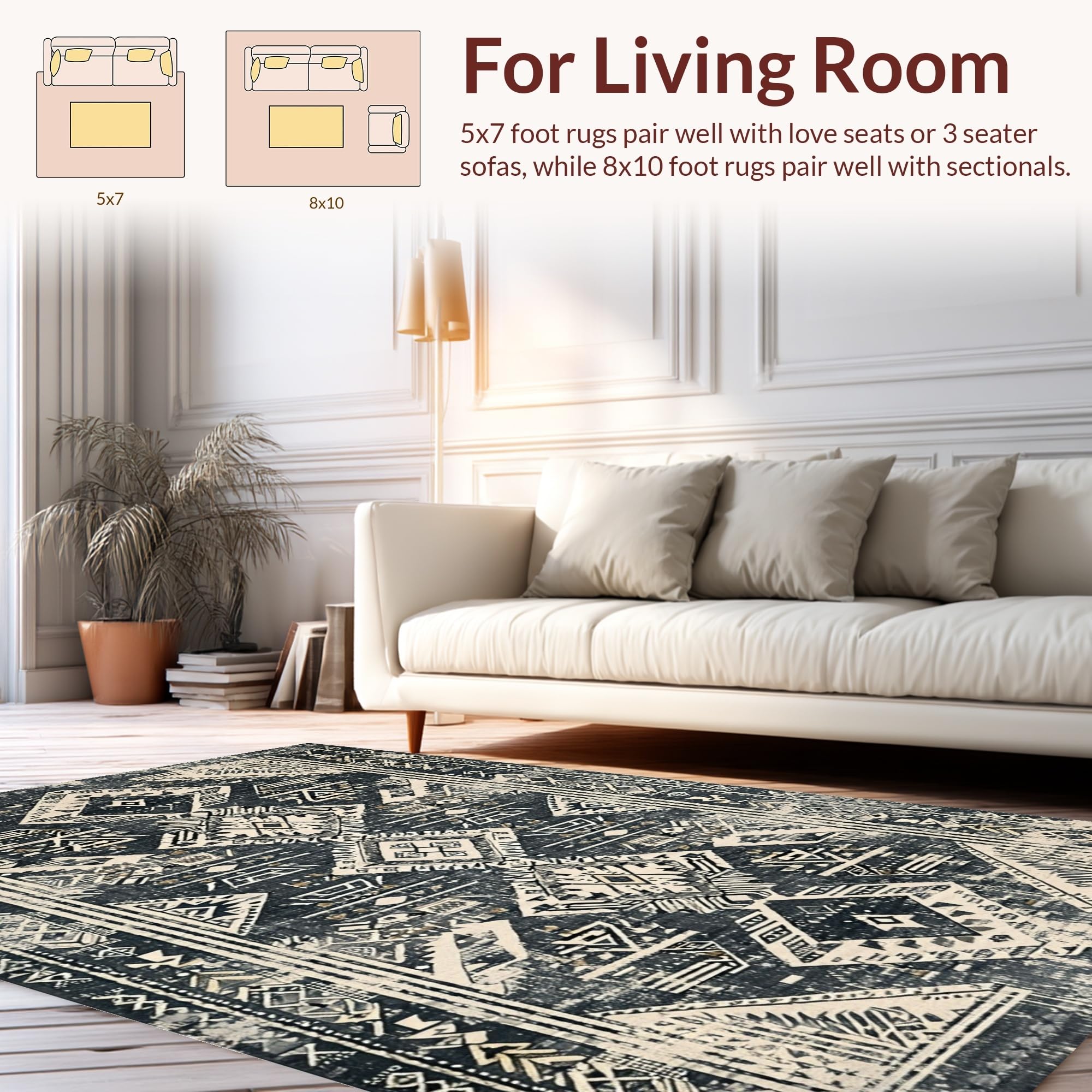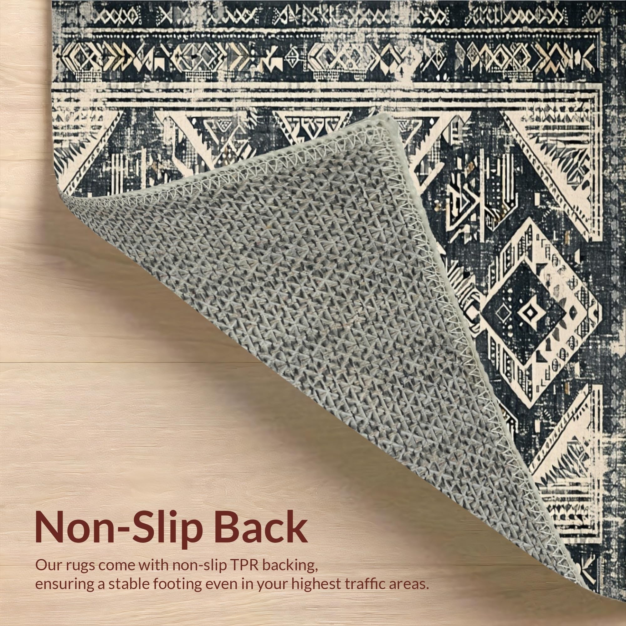 Ultra Soft Area Rug, Non Slip, Stain Resistant, Washable Area Rugs for Living Room, Bedroom, Cozy Vintage Floral Motif(Gray) Overview: