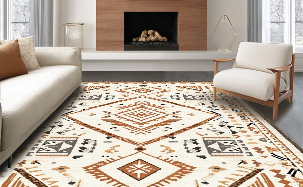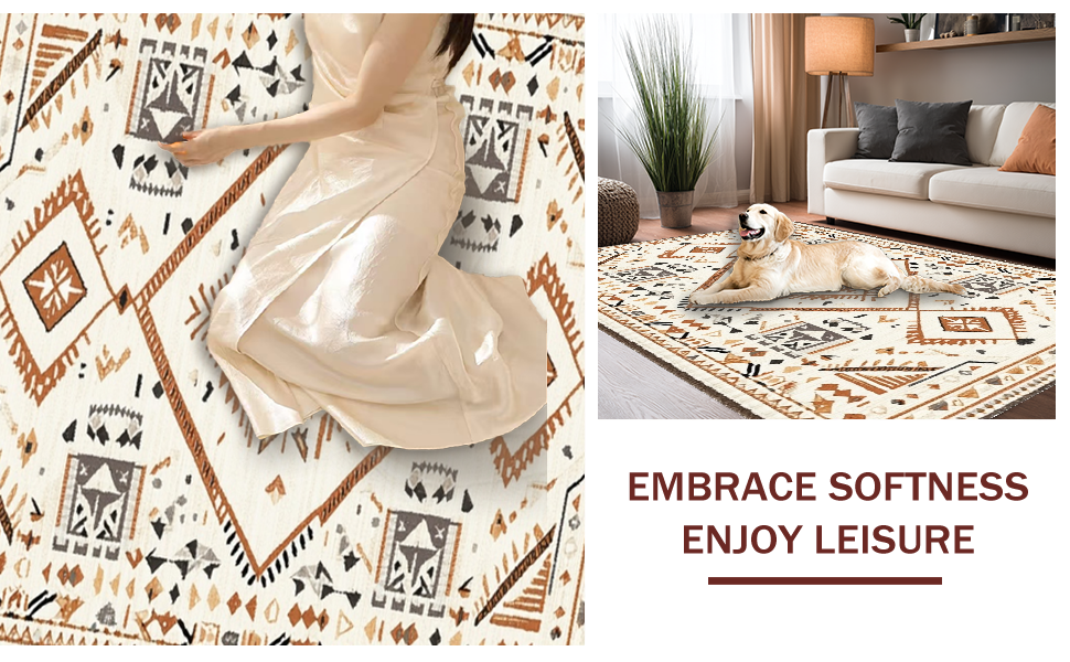 Ultra Soft Area Rug, Non Slip, Stain Resistant, Washable Area Rugs for Living Room, Bedroom, Cozy Vintage Inspired Design(Beige) Overview:
