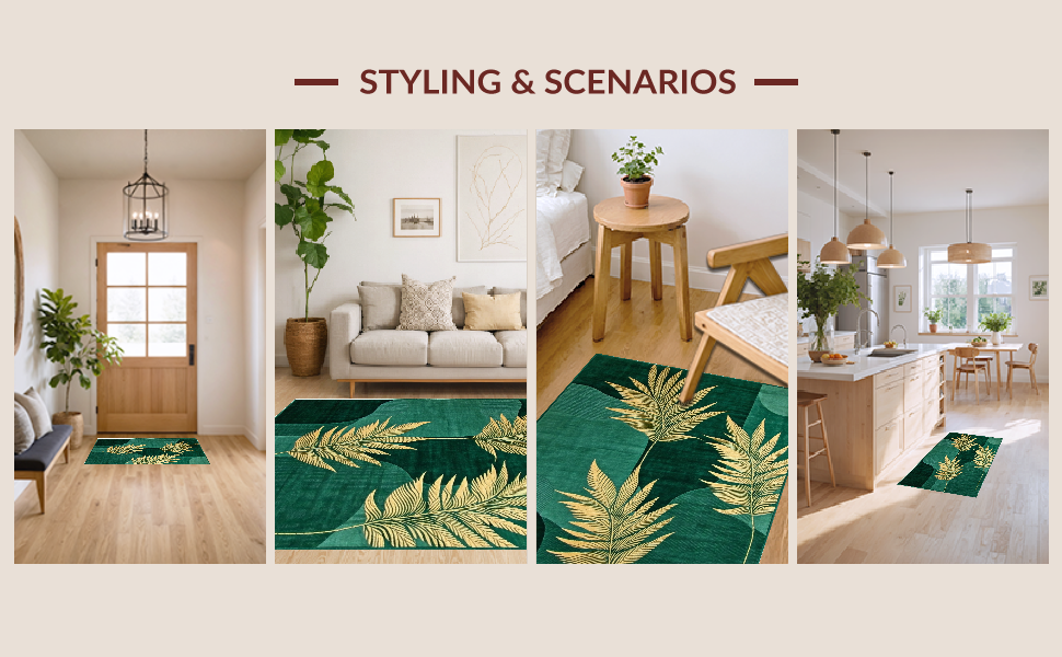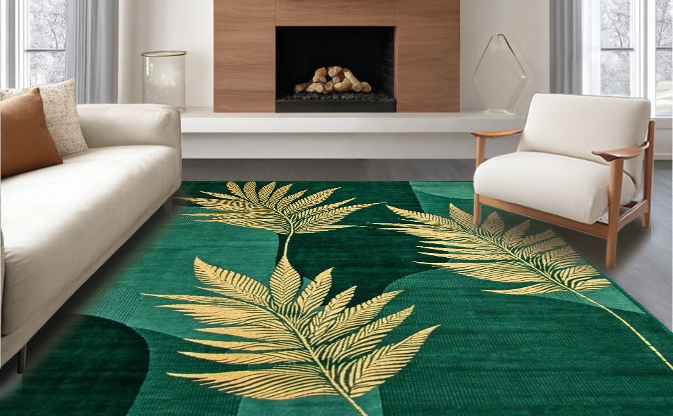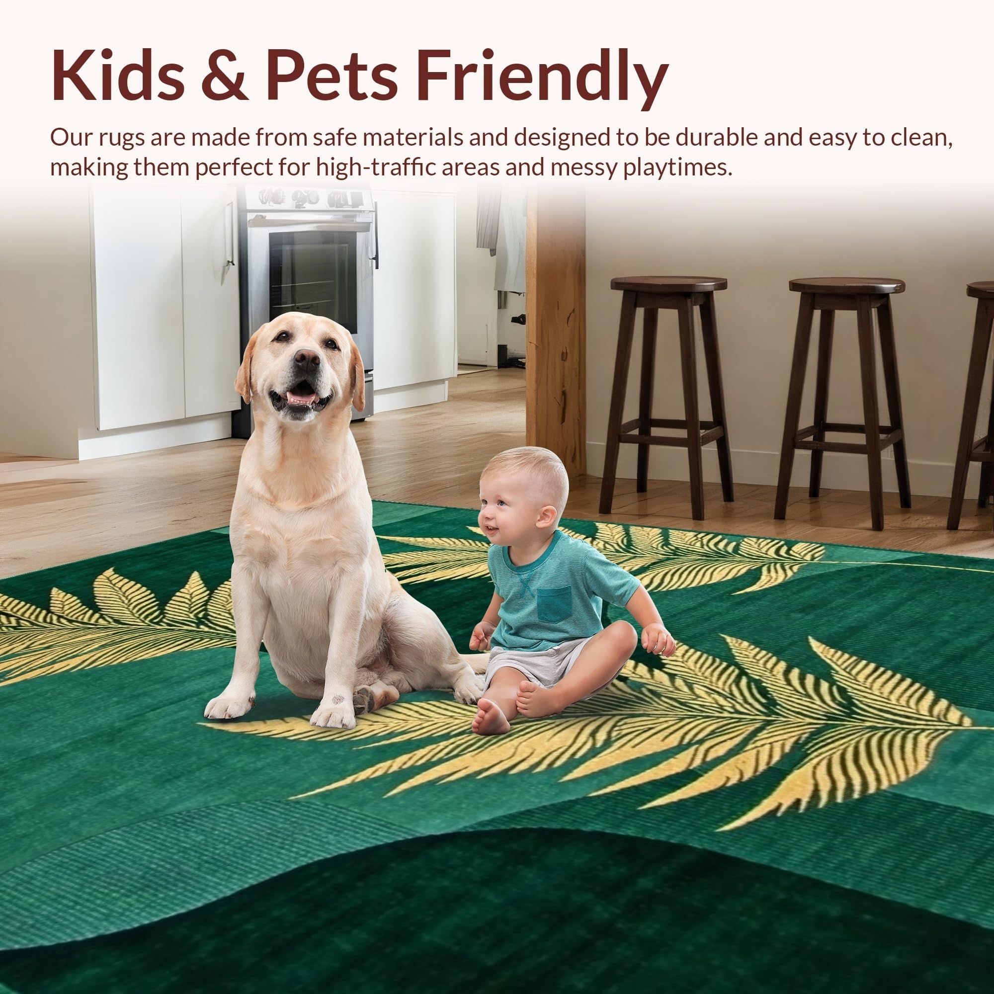Ultra Soft Area Rug, Non Slip, Stain Resistant, Washable Area Rugs for Living Room, Bedroom, Cozy Vintage Medallion Design(Green) Overview: