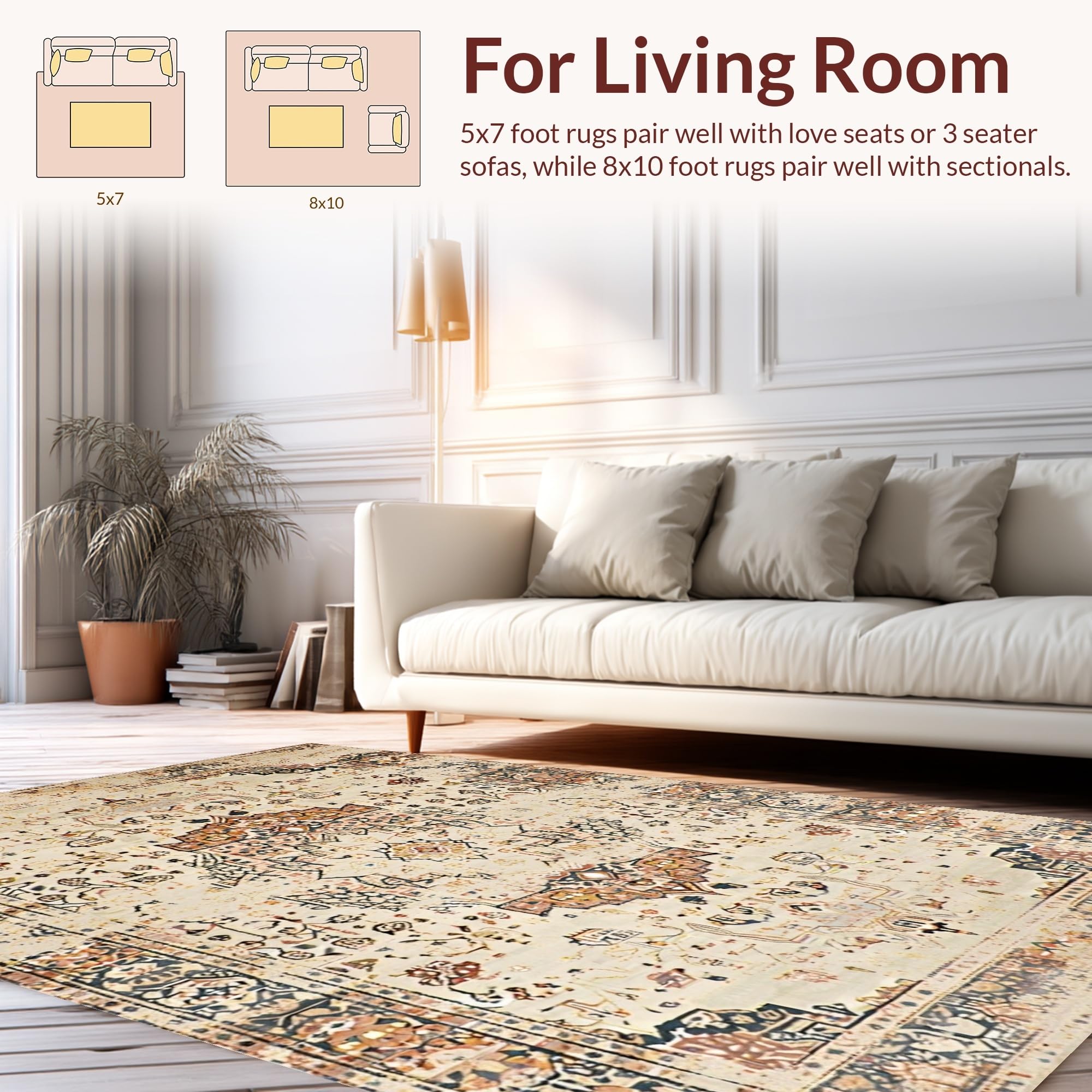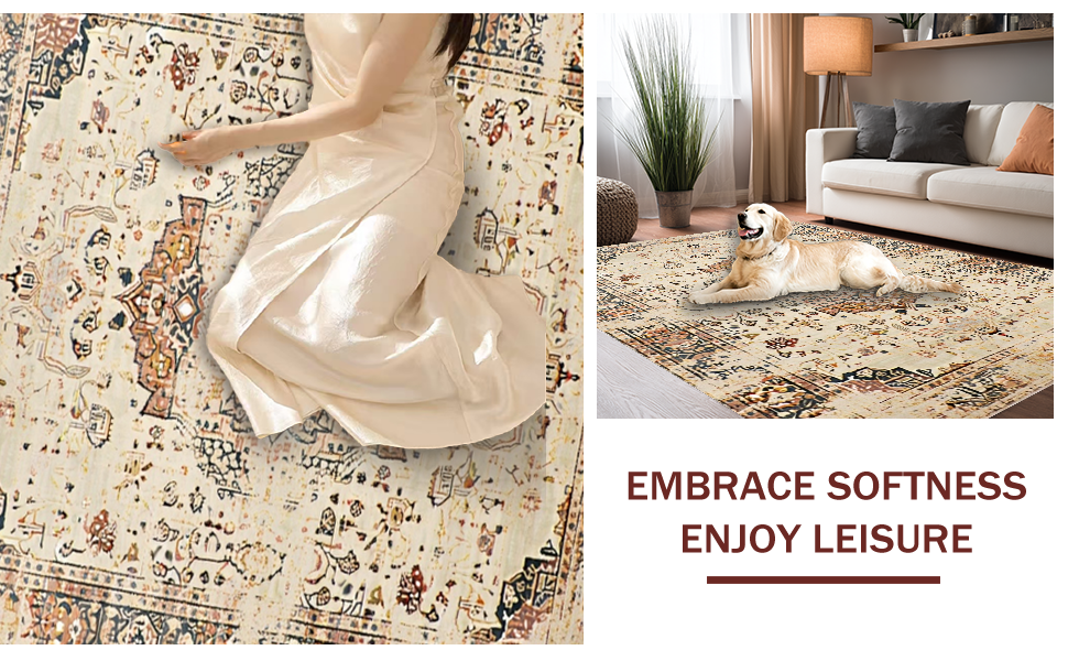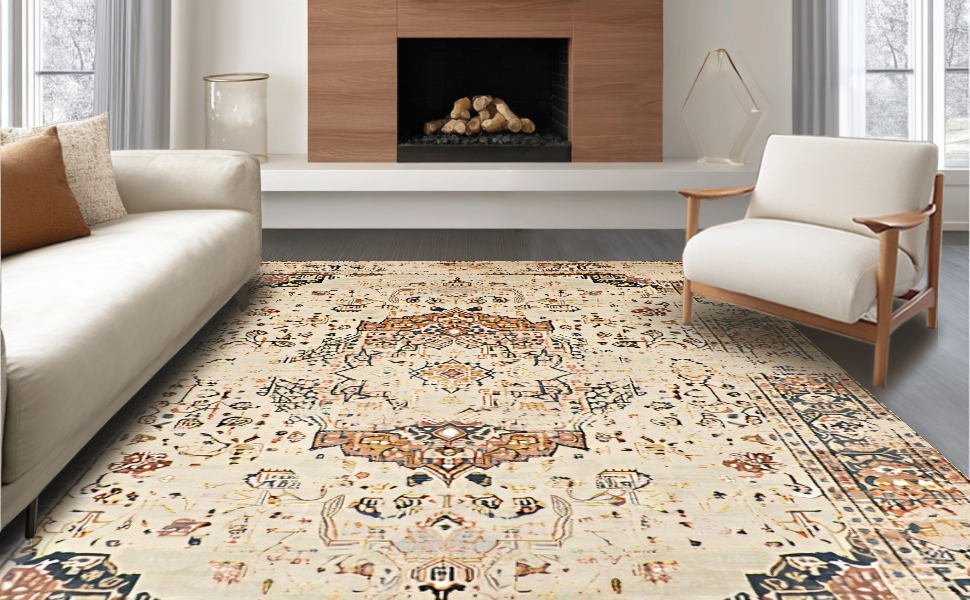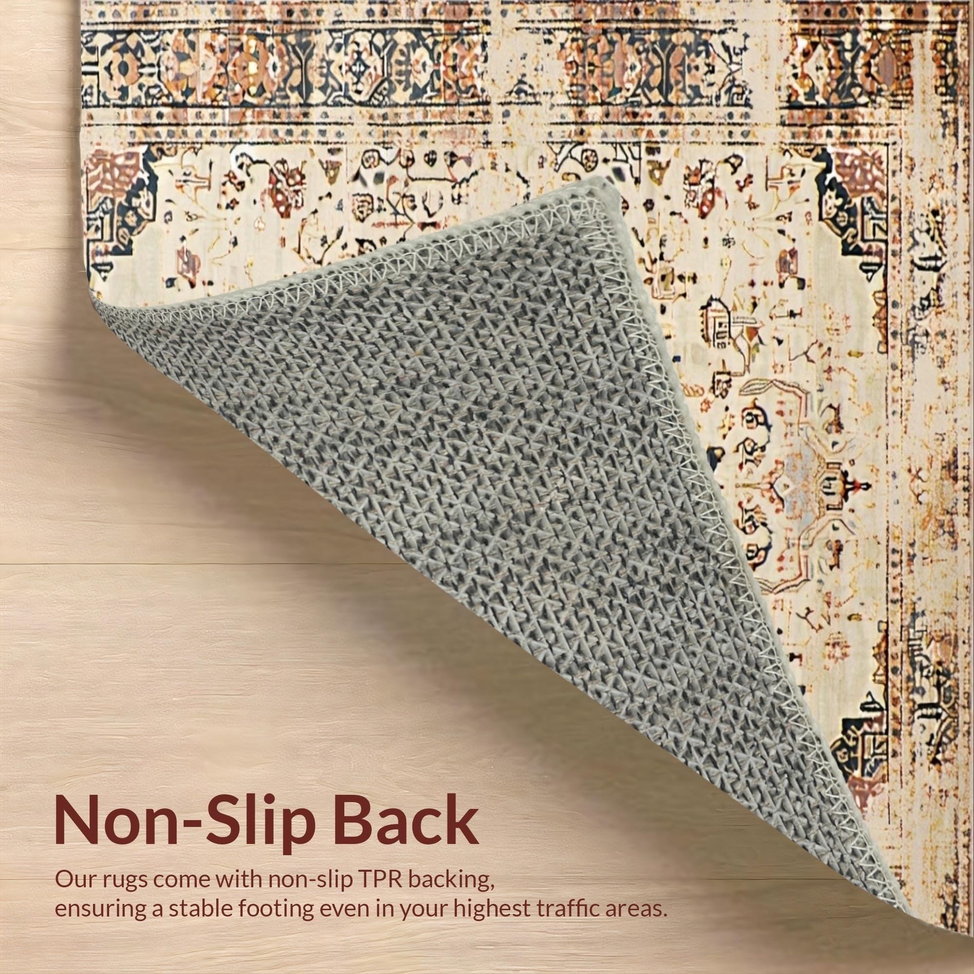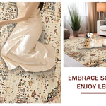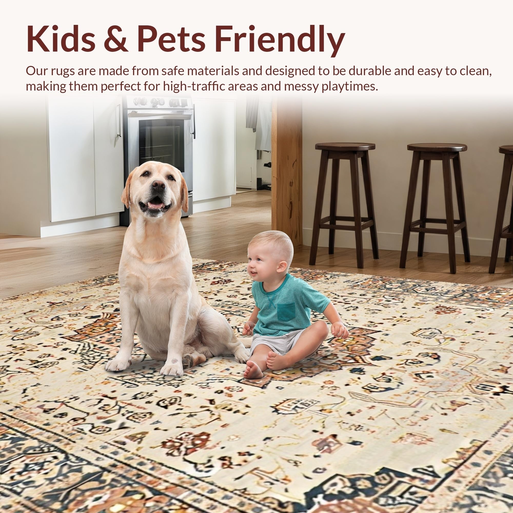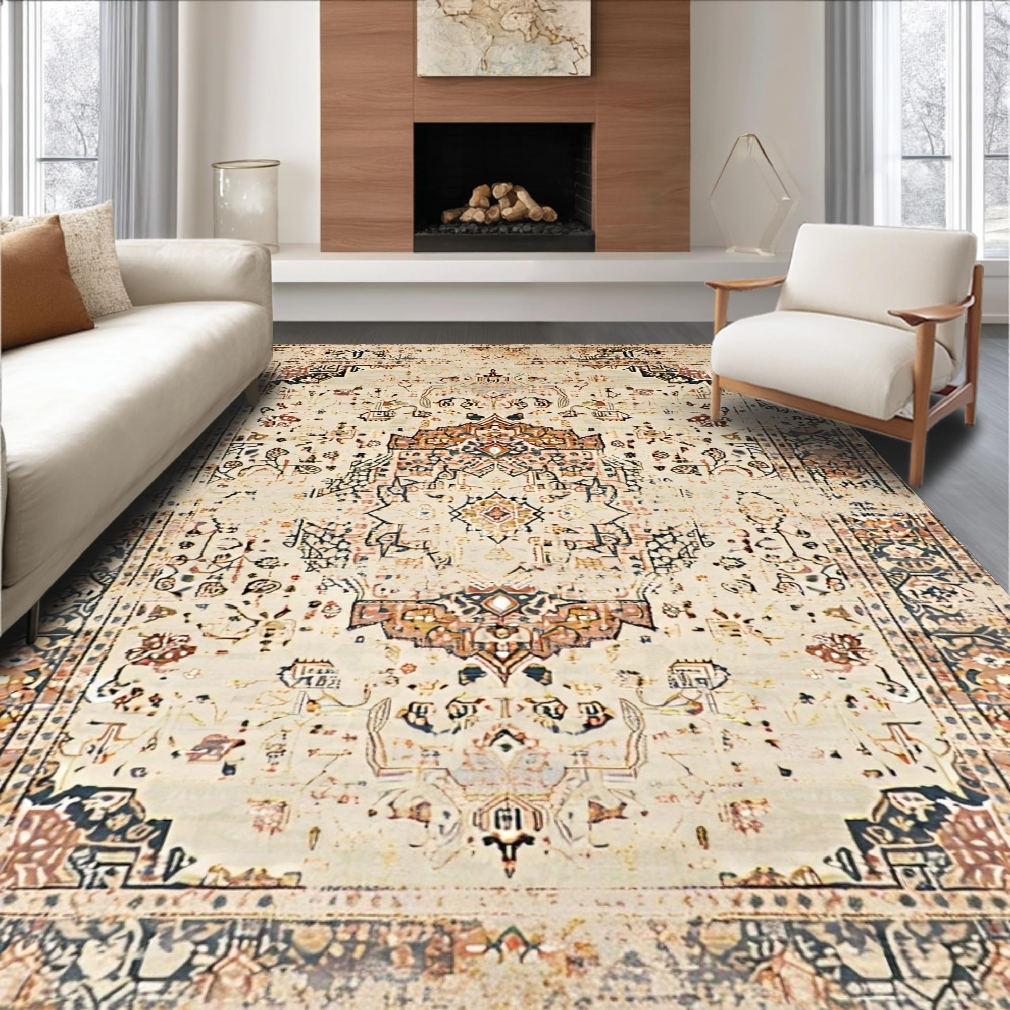 Ultra Soft Area Rug, Non Slip, Stain Resistant, Washable Area Rugs for Living Room, Bedroom, Cozy Vintage Ogee Print Arrangement(Beige) Overview: