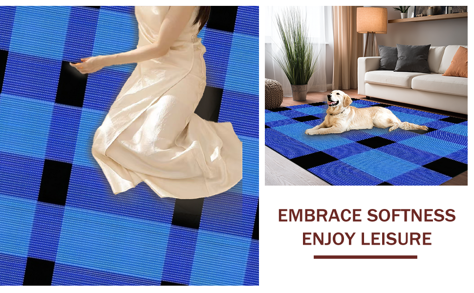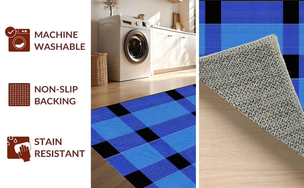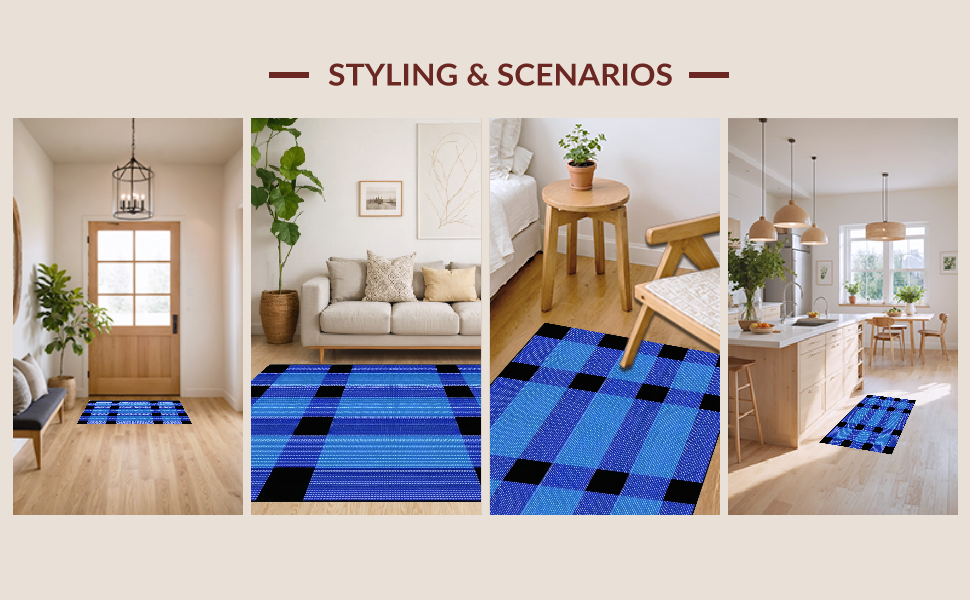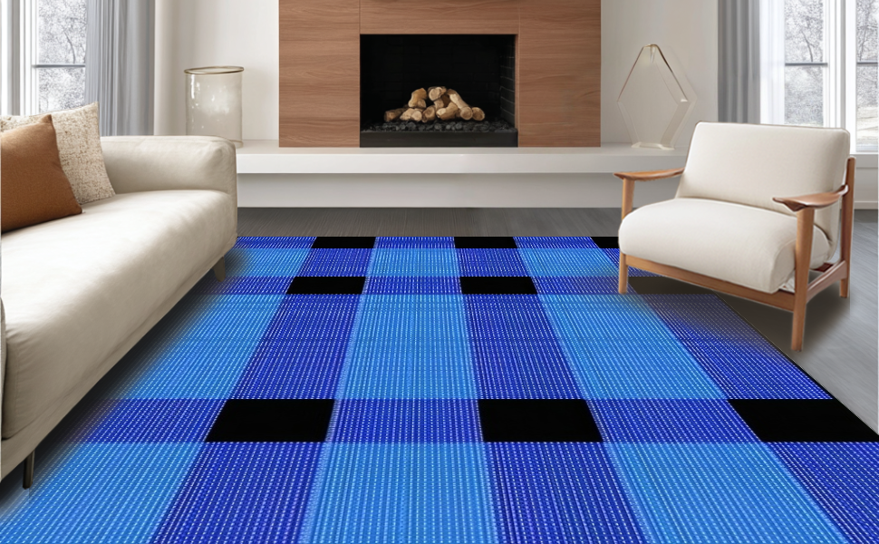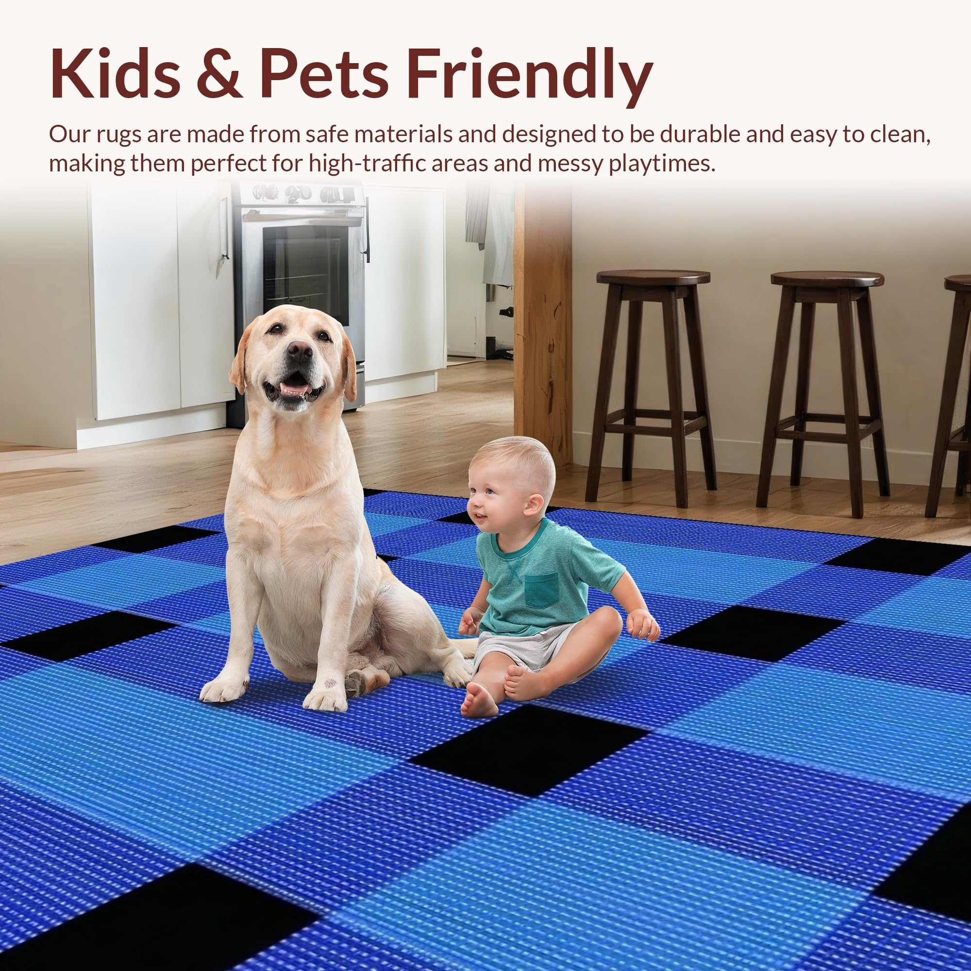 Ultra Soft Area Rug, Non Slip, Stain Resistant, Washable Area Rugs for Living Room, Bedroom, Cozy Vintage Plaid Collection(Blue) Overview: