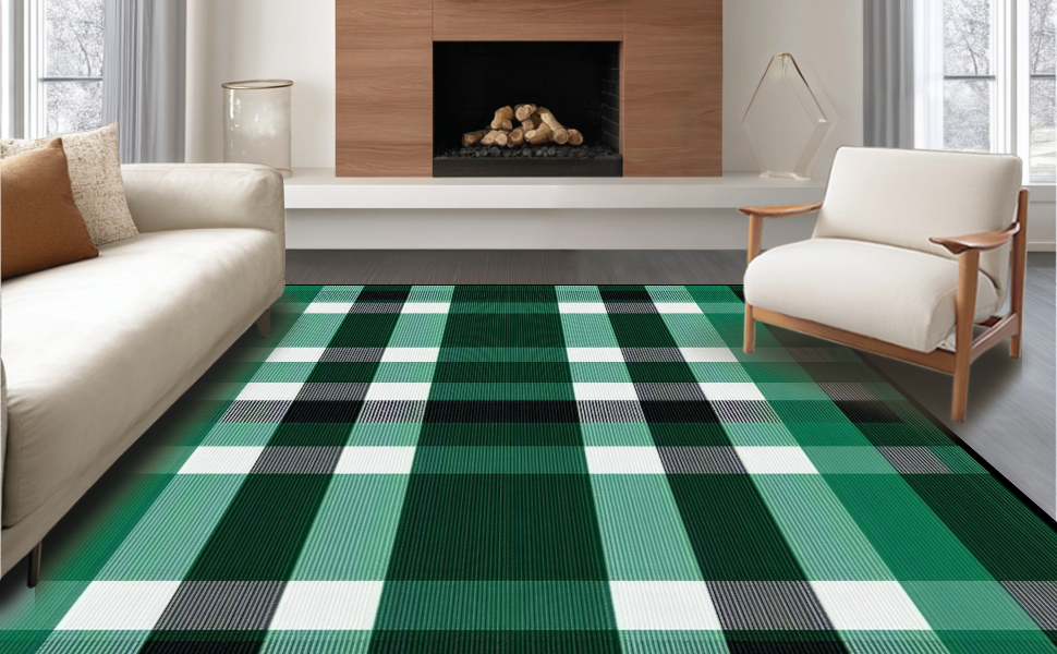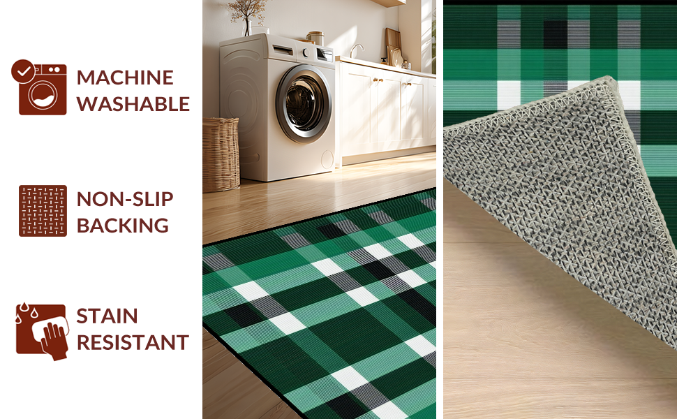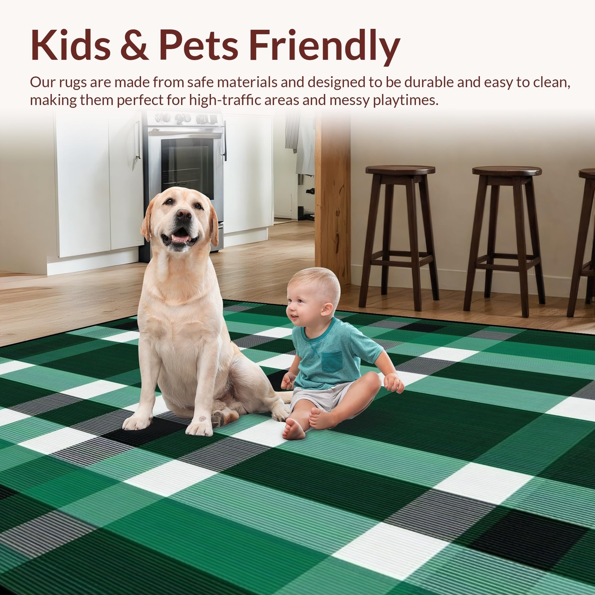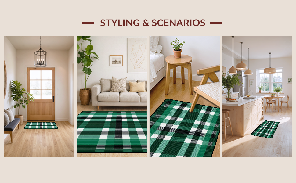 Ultra Soft Area Rug, Non Slip, Stain Resistant, Washable Area Rugs for Living Room, Bedroom, Cozy Vintage Tartan Style(Green) Overview: