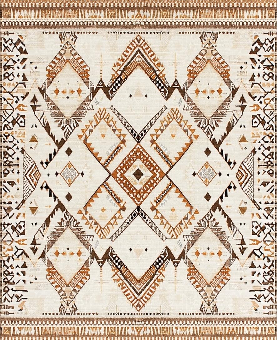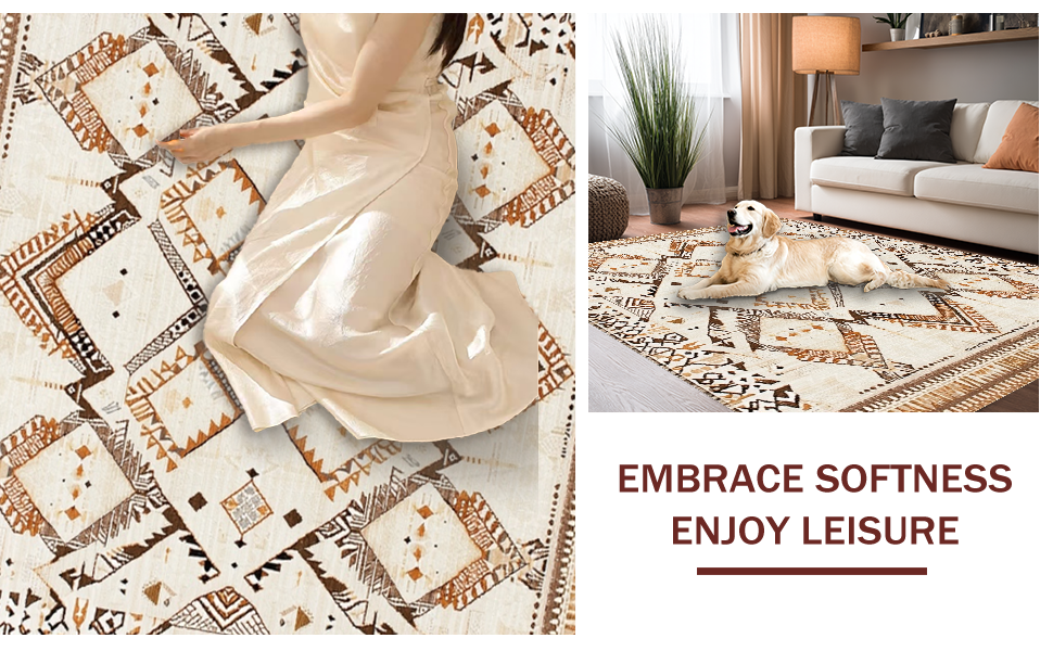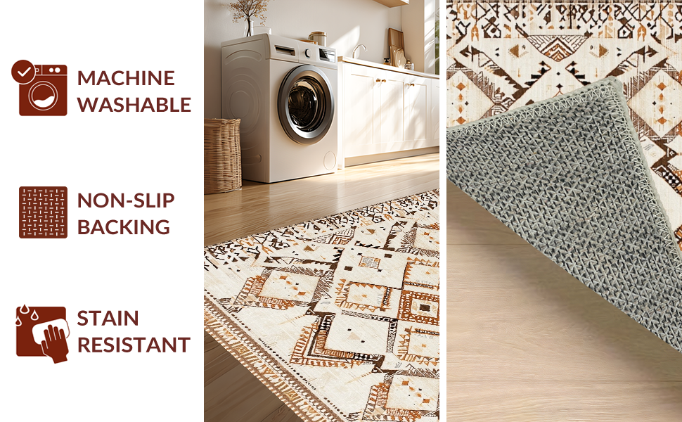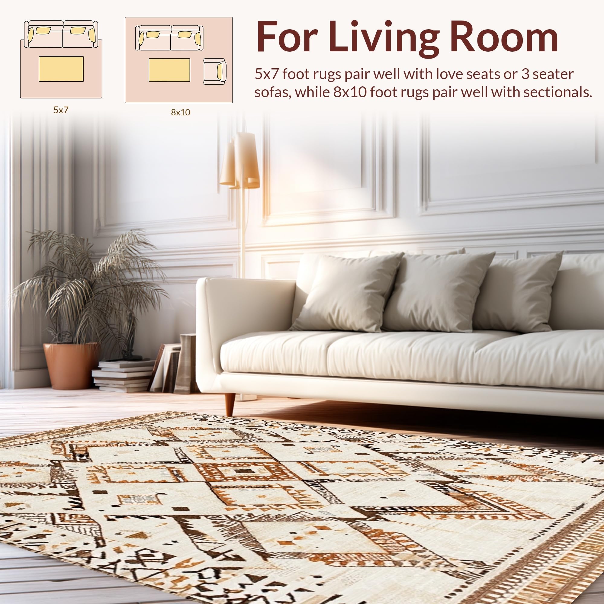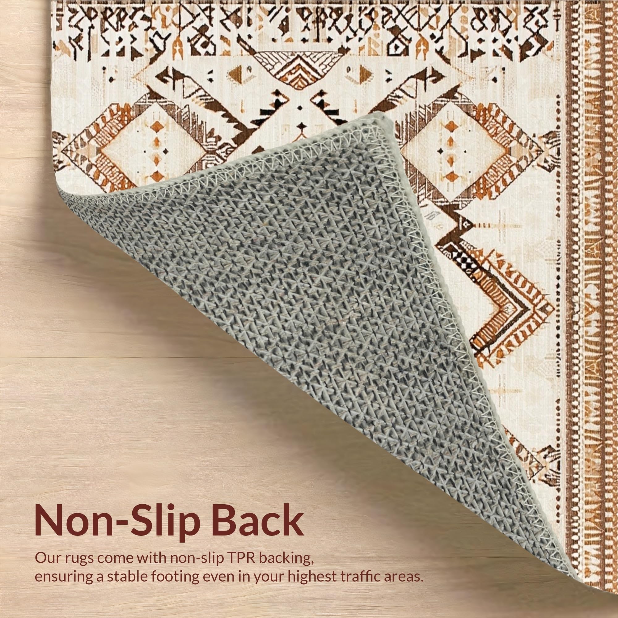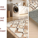 Ultra Soft Area Rug, Non Slip, Stain Resistant, Washable Area Rugs for Living Room, Bedroom, Cozy Vintage Tiled Motif(Beige) Overview: