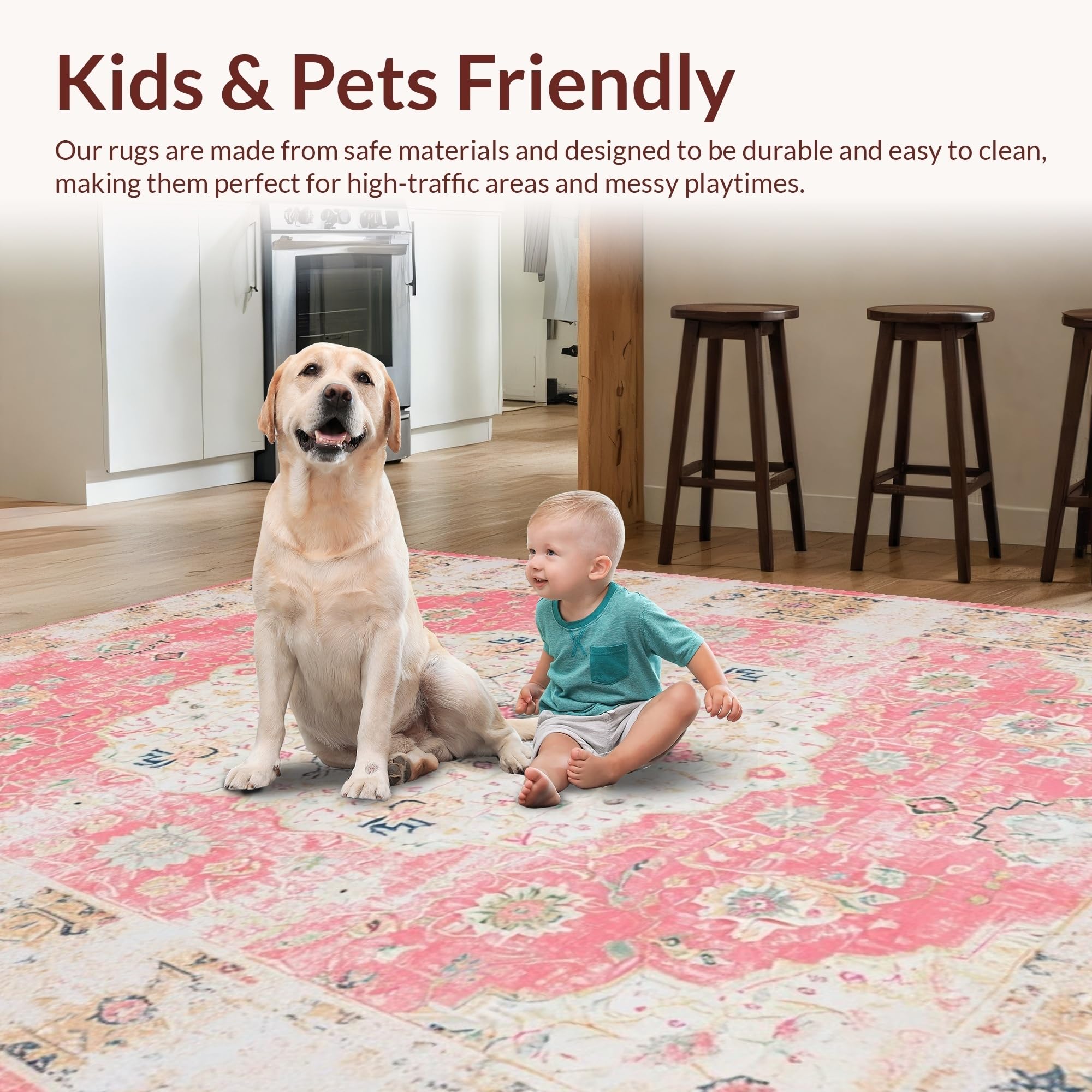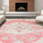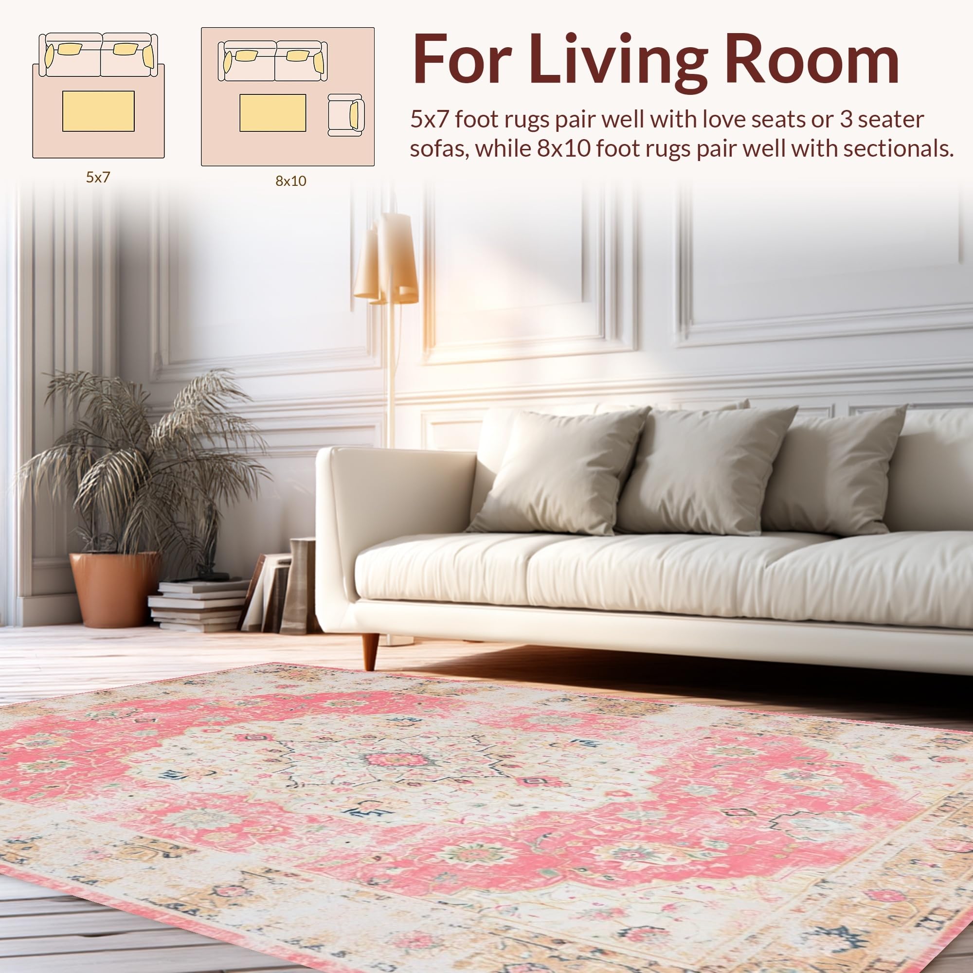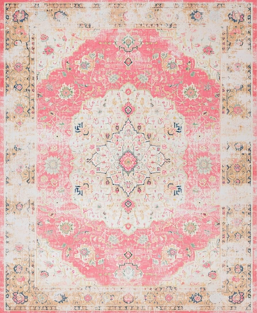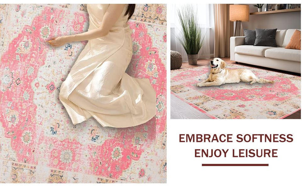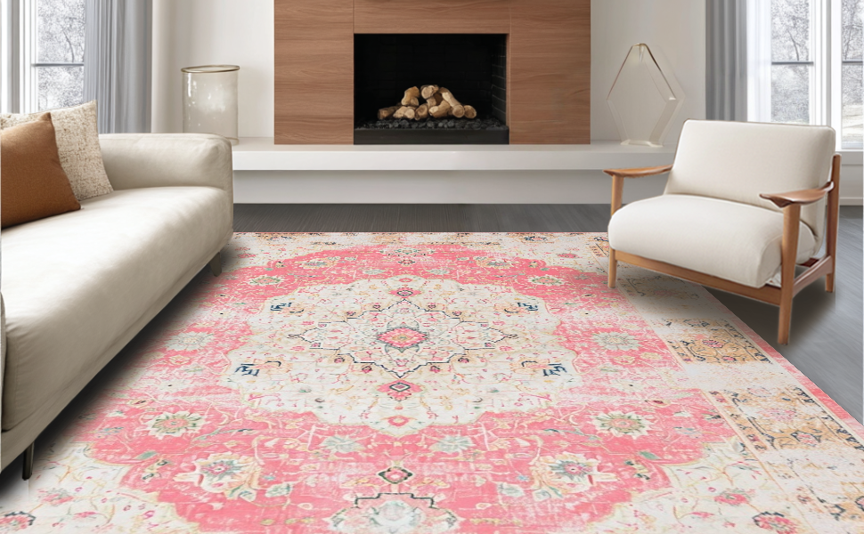 Ultra Soft Area Rug, Non Slip, Stain Resistant, Washable Area Rugs for Living Room, Bedroom, Cozy Warm Tone Circular Accent(Pink) Overview: