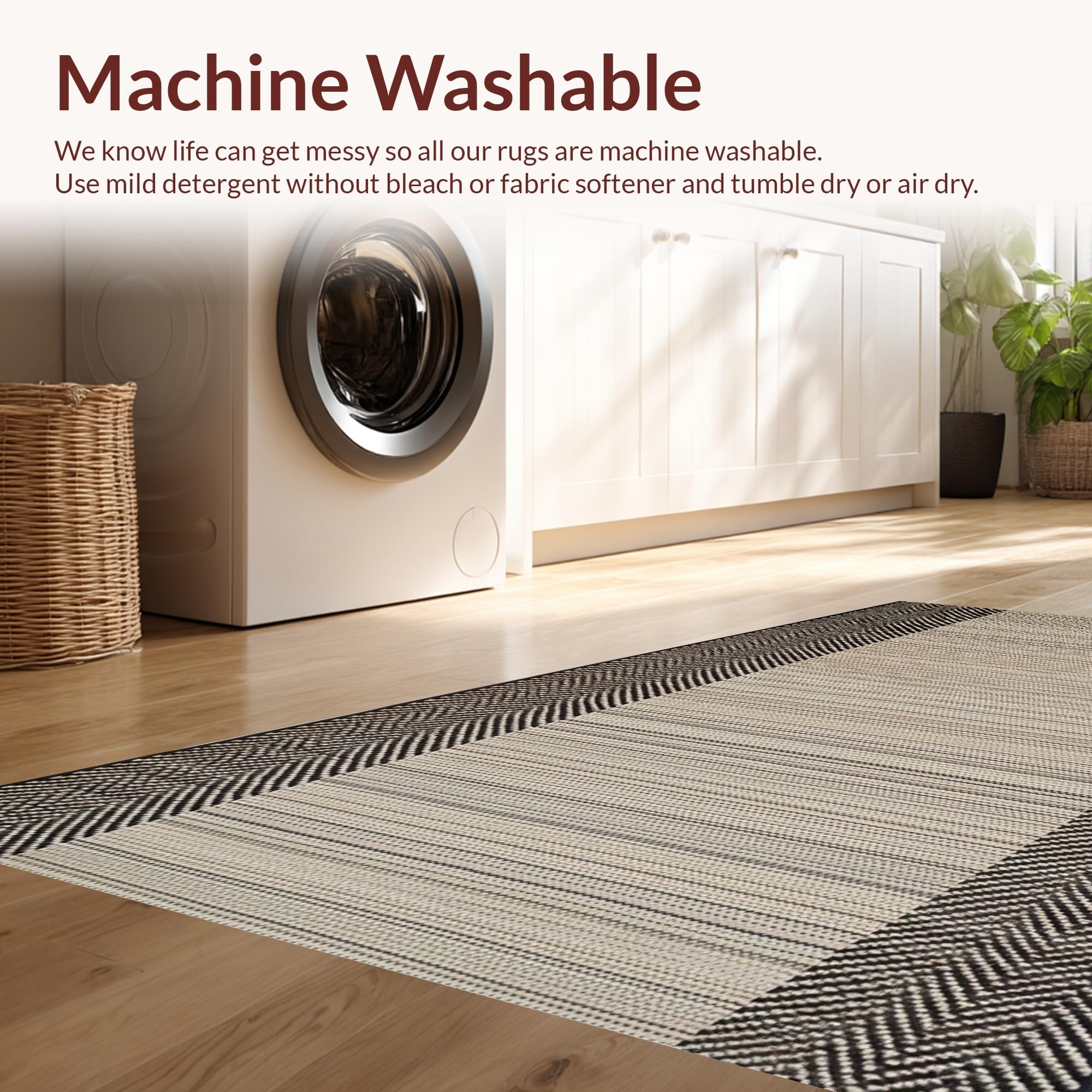 - Machine Washable: Our rugs can be easily thrown in the wash machine.