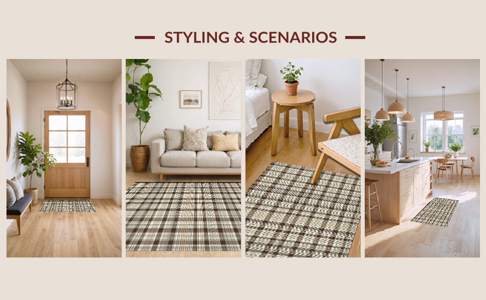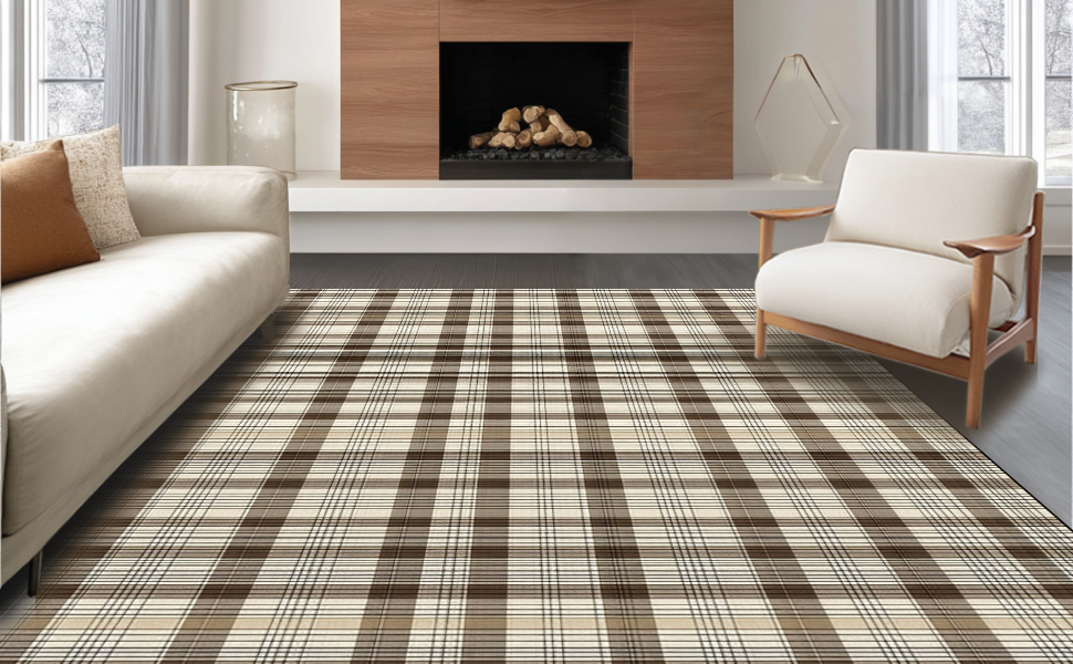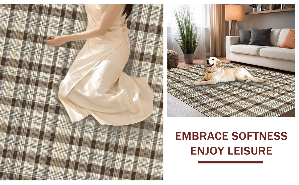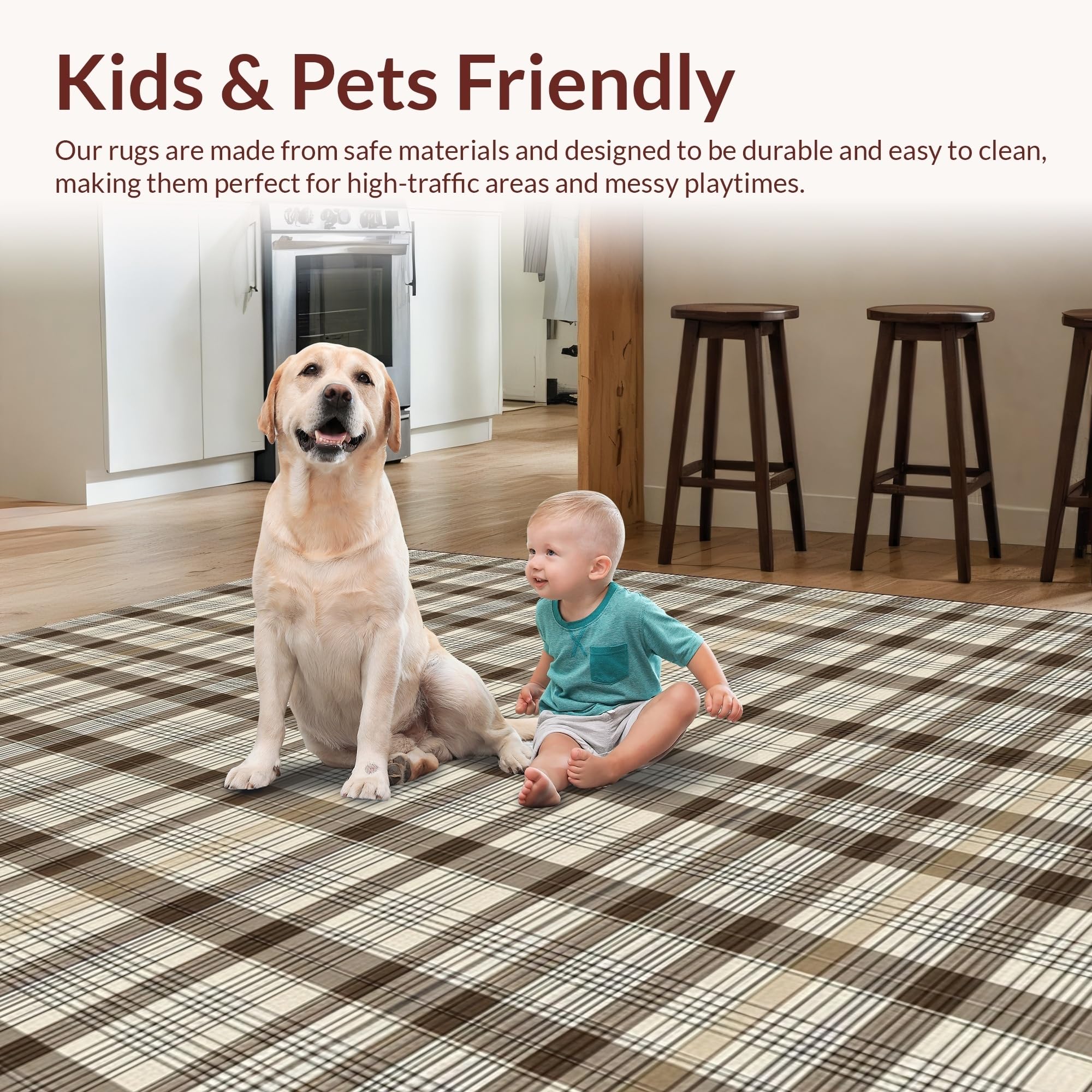 Ultra Soft Area Rug, Non Slip, Stain Resistant, Washable Area Rugs for Living Room, Bedroom, Cozy Warm Toned Lattice Design(Beige) Overview: