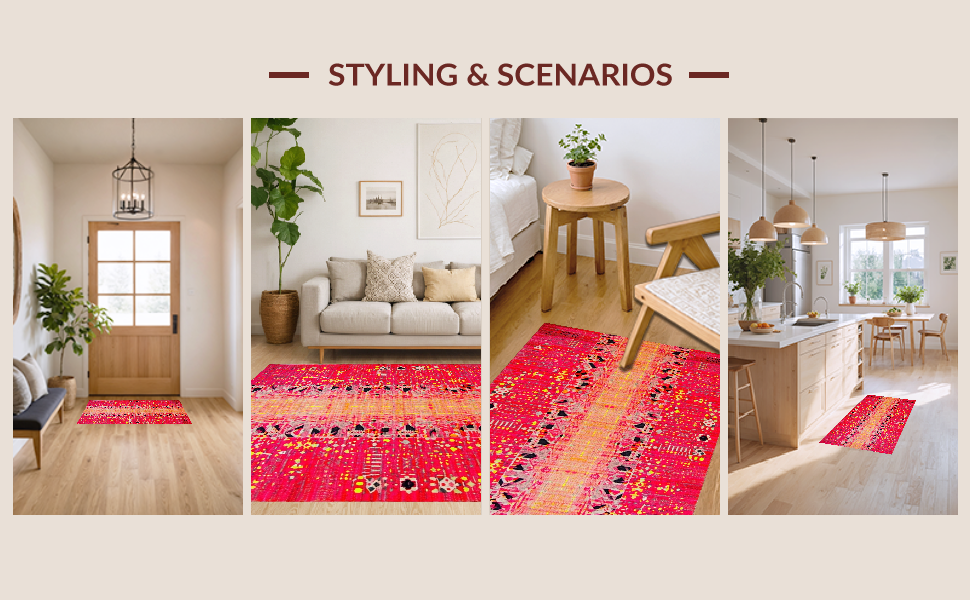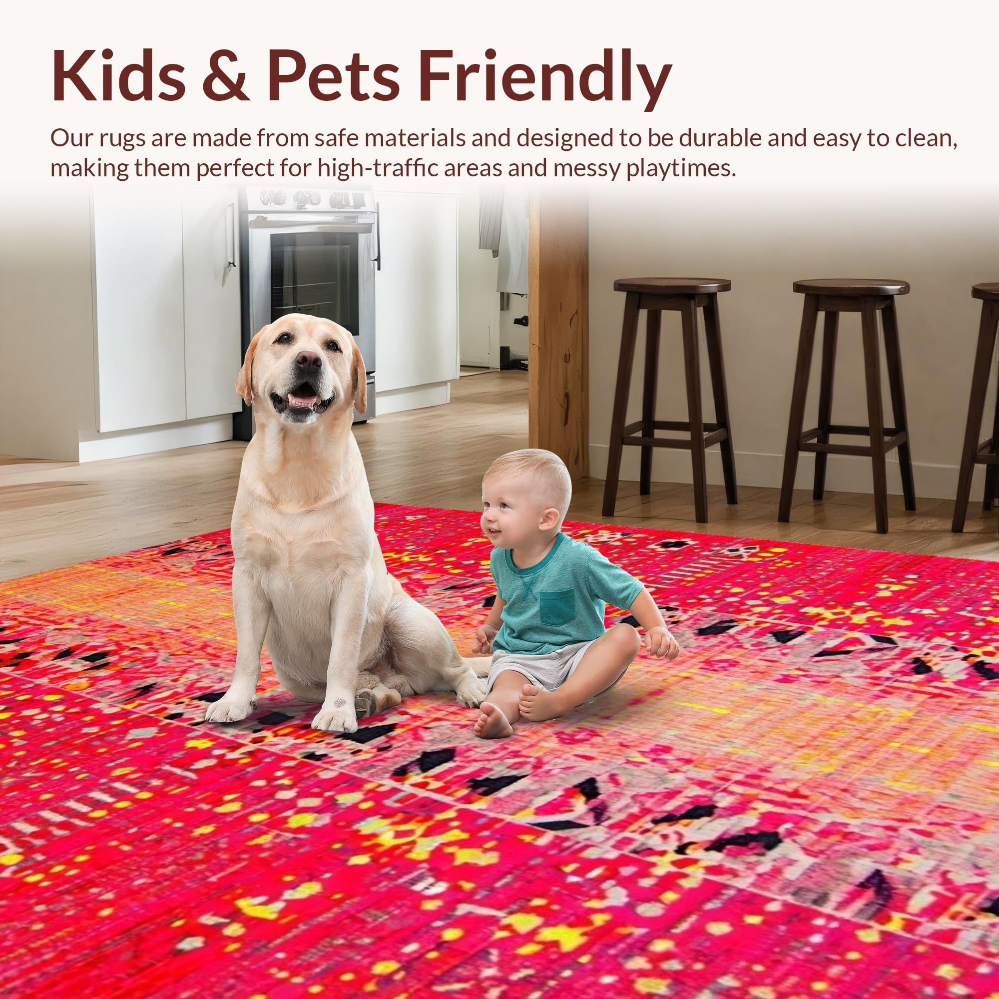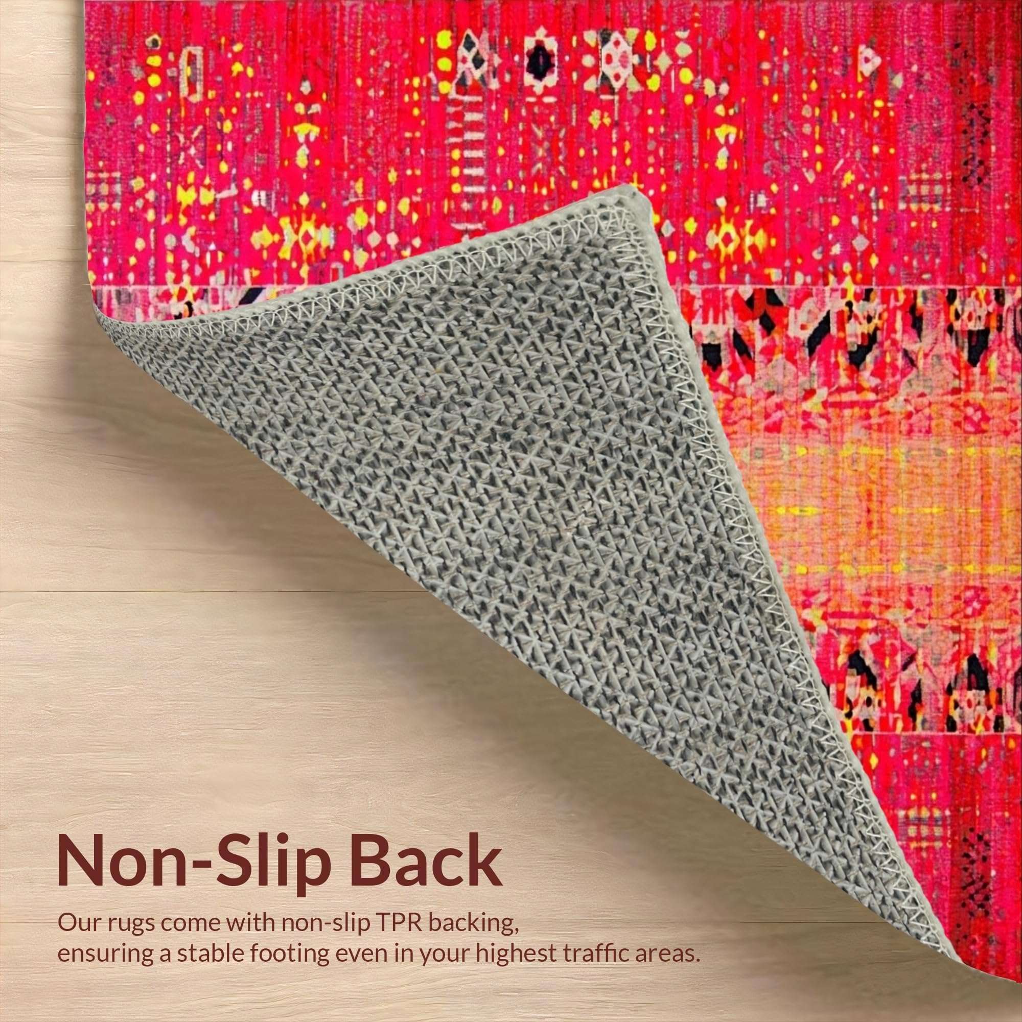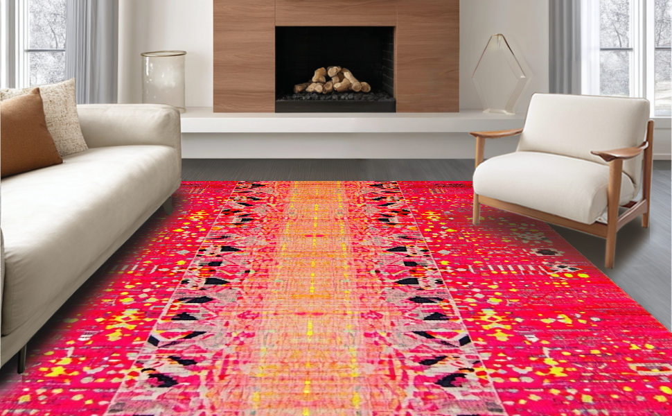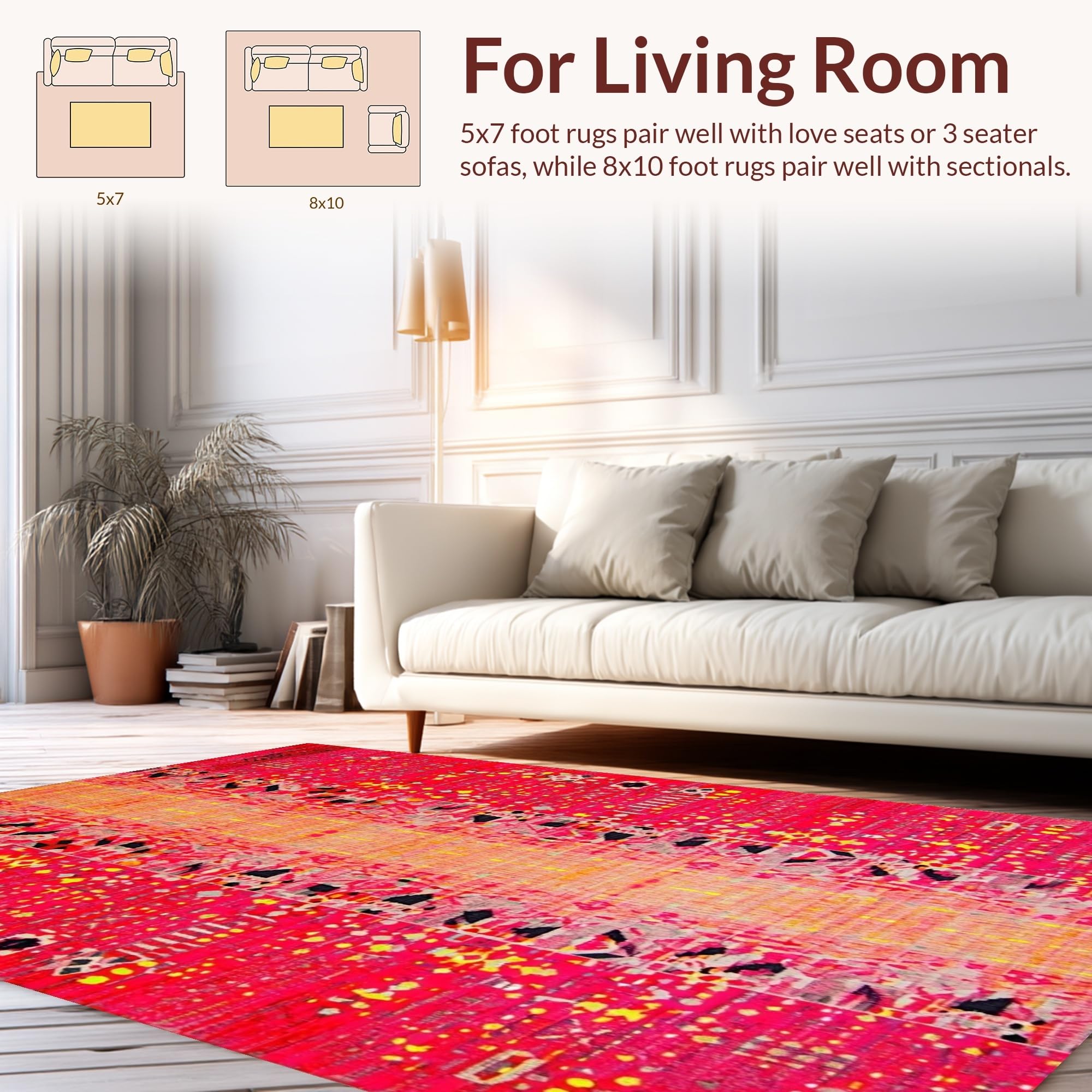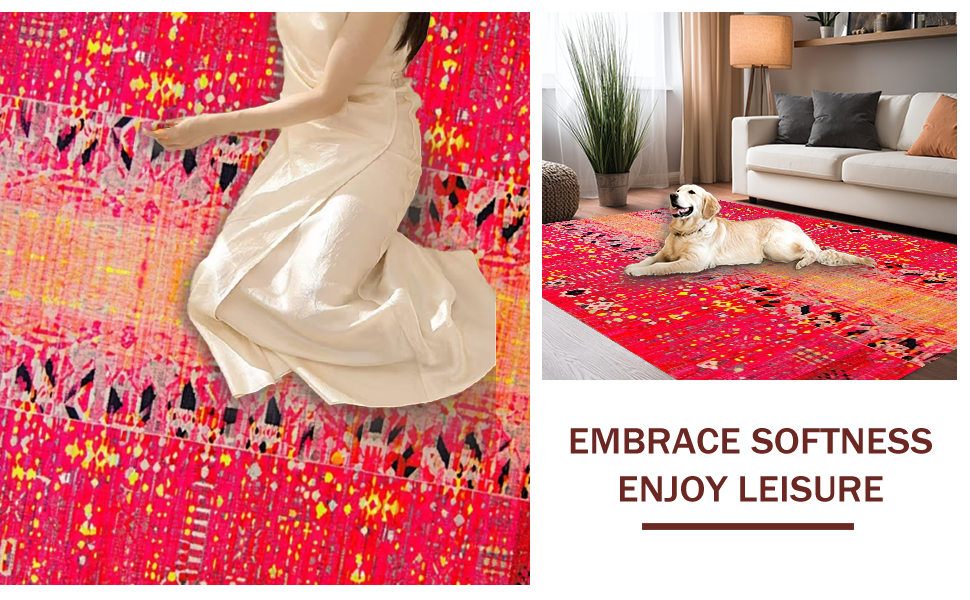 Ultra Soft Area Rug, Non Slip, Stain Resistant, Washable Area Rugs for Living Room, Bedroom, Cozy Warm Tones Abstract Style(Red) Overview: