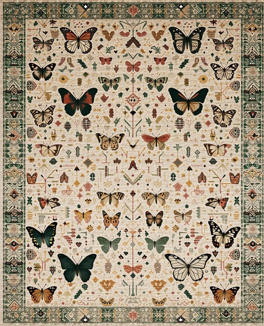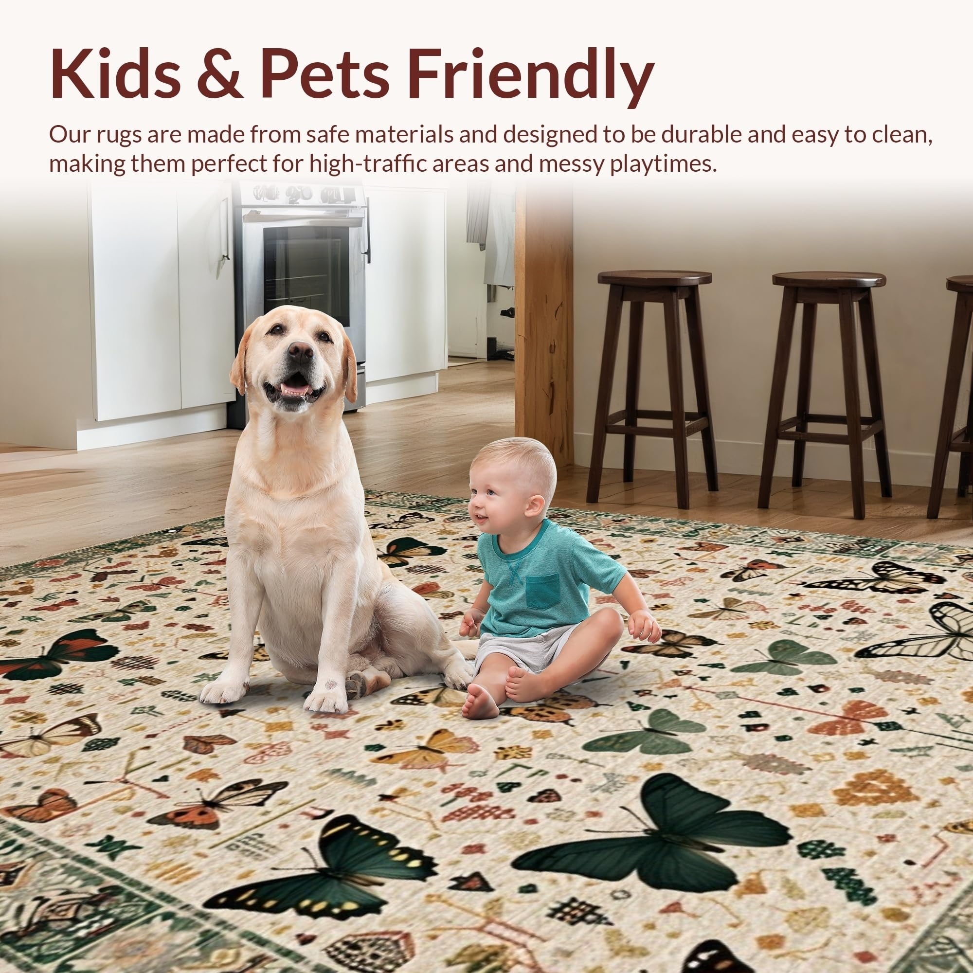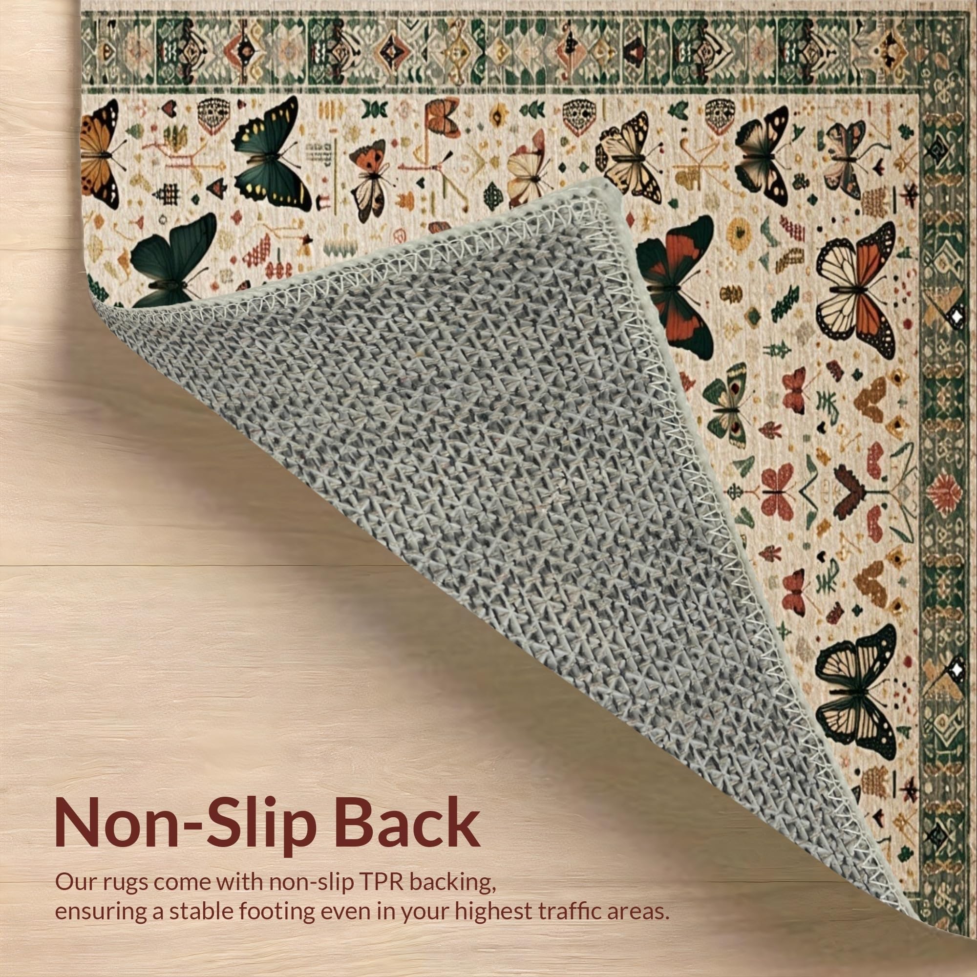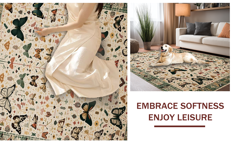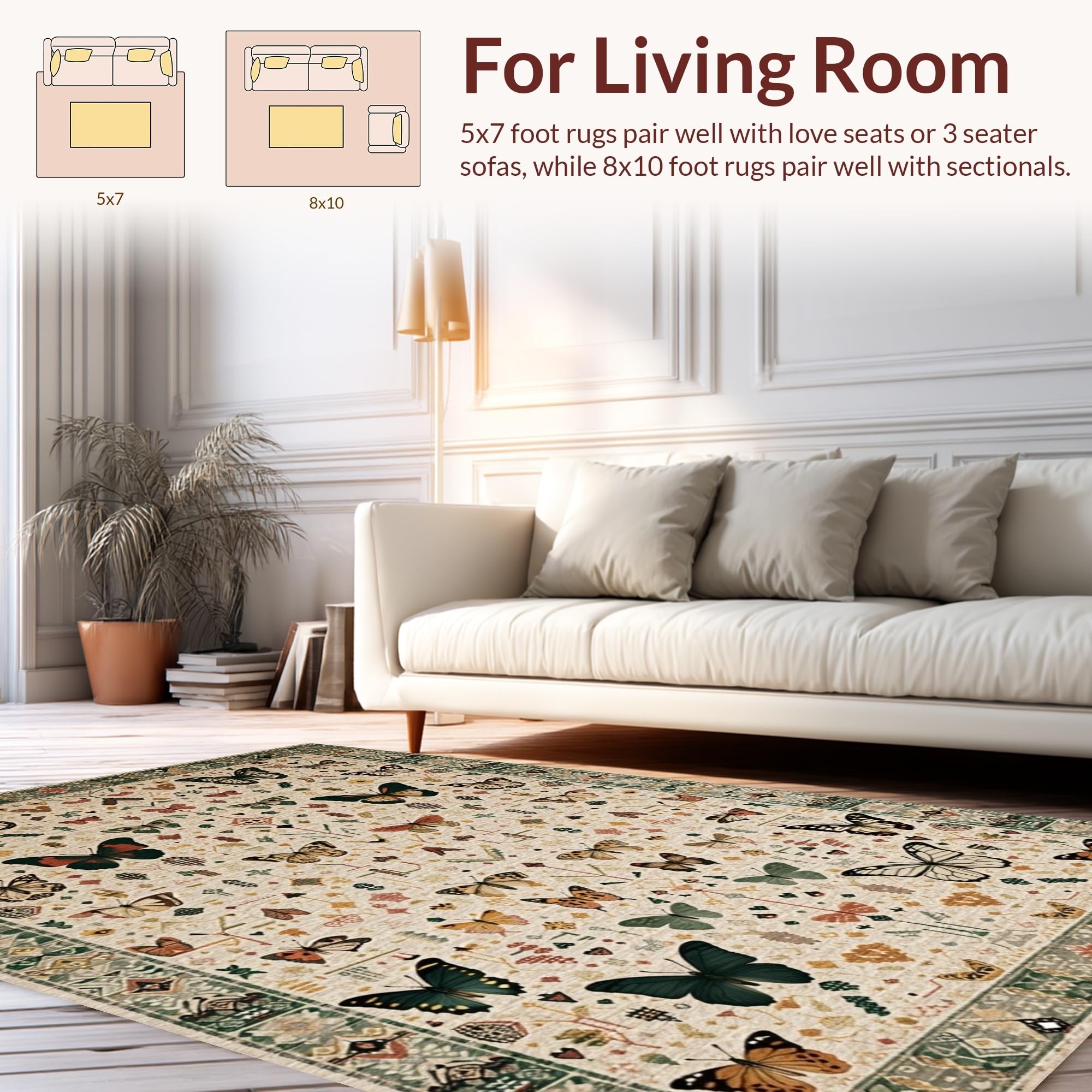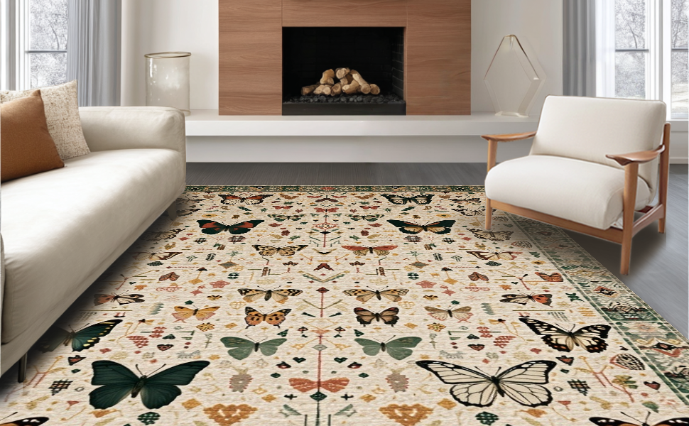 Ultra Soft Area Rug, Non Slip, Stain Resistant, Washable Area Rugs for Living Room, Bedroom, Cozy Warm Tones Butterfly Design(Ivory) Overview: