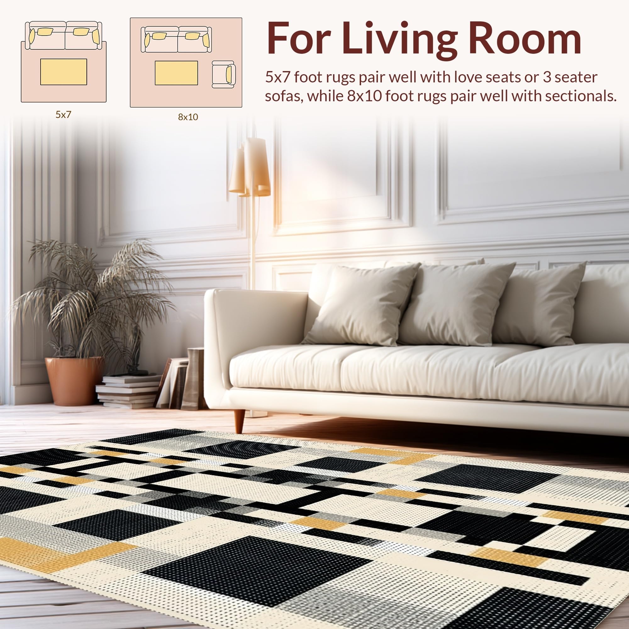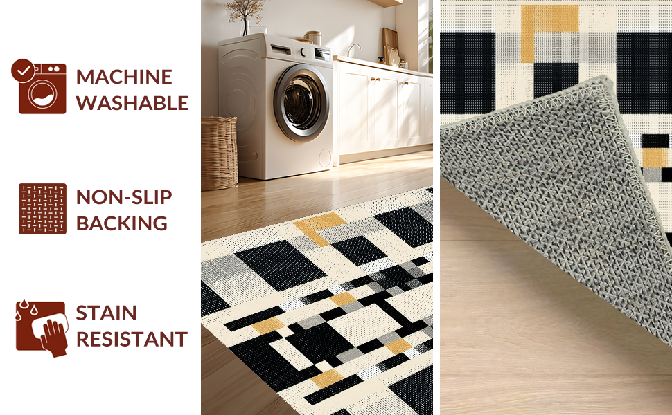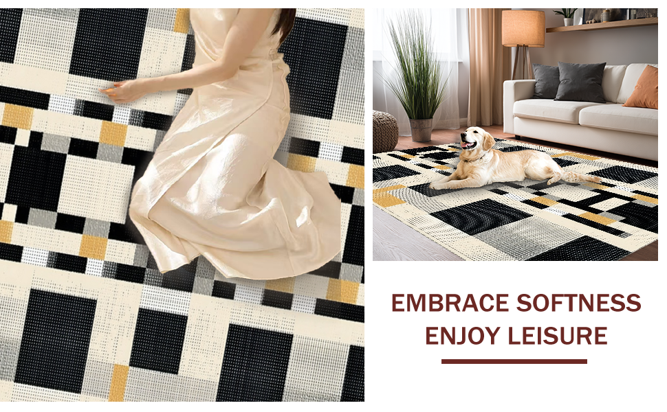 Ultra Soft Area Rug, Non Slip, Stain Resistant, Washable Area Rugs for Living Room, Bedroom, Cozy Warm Tones Checkerboard Appeal(Beige) Overview: