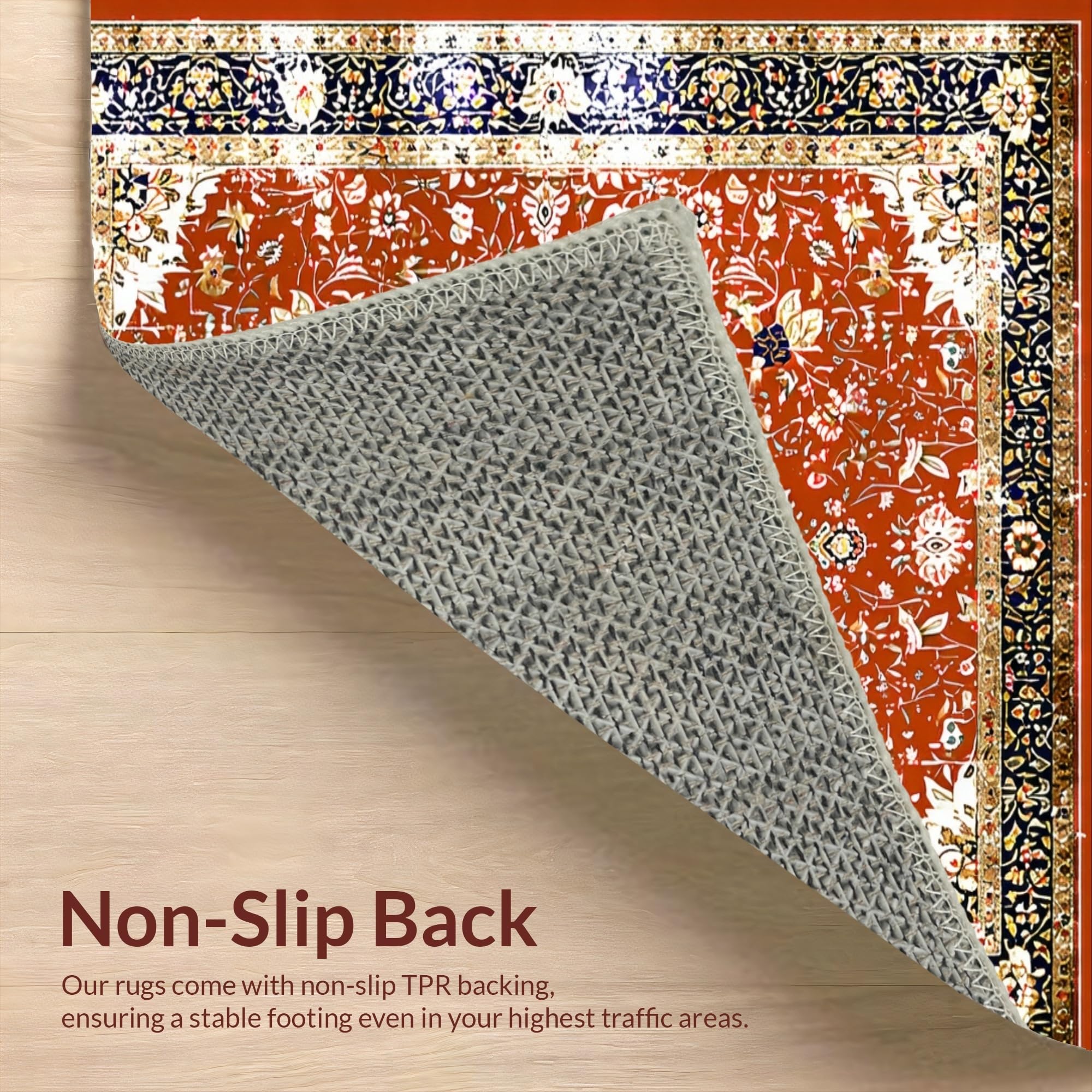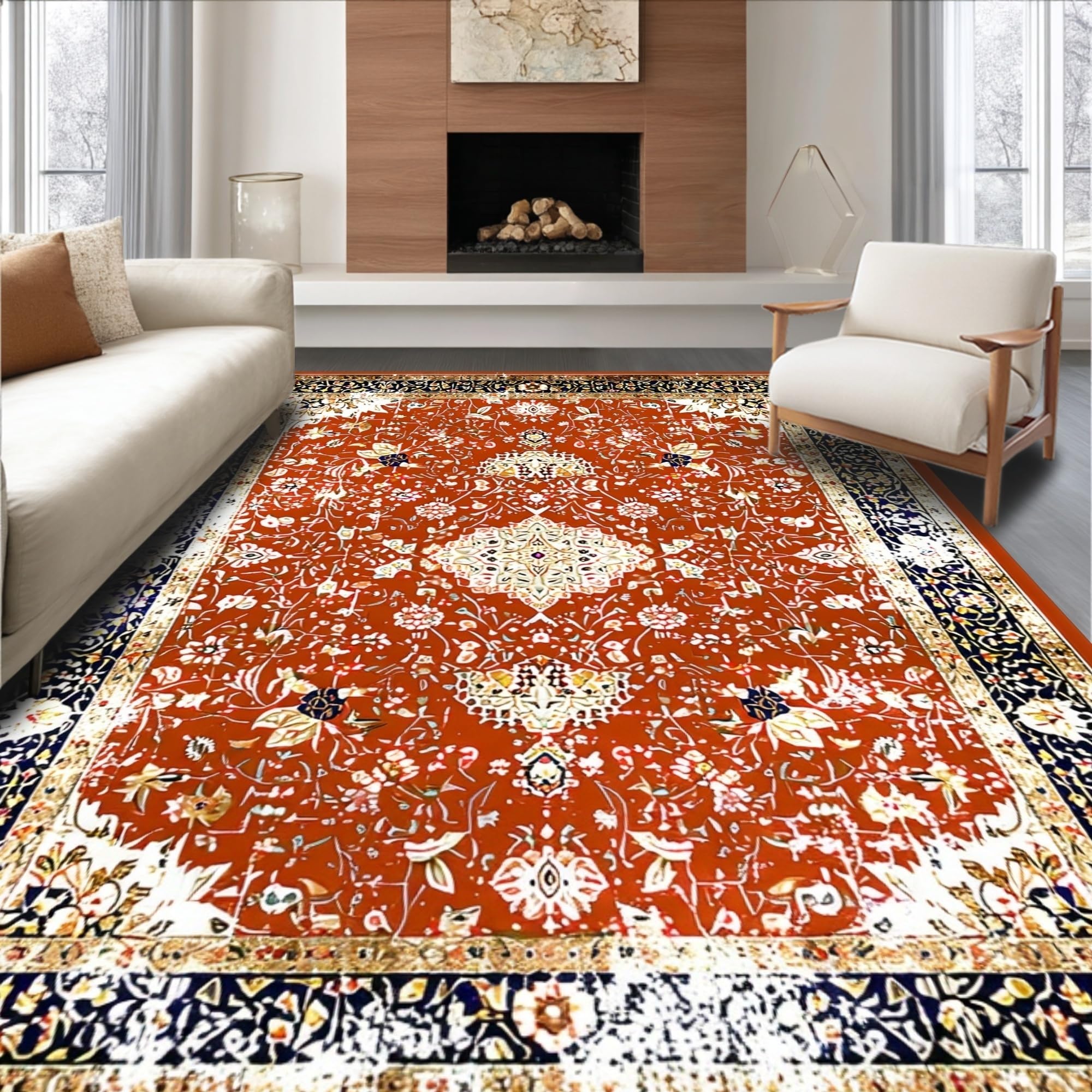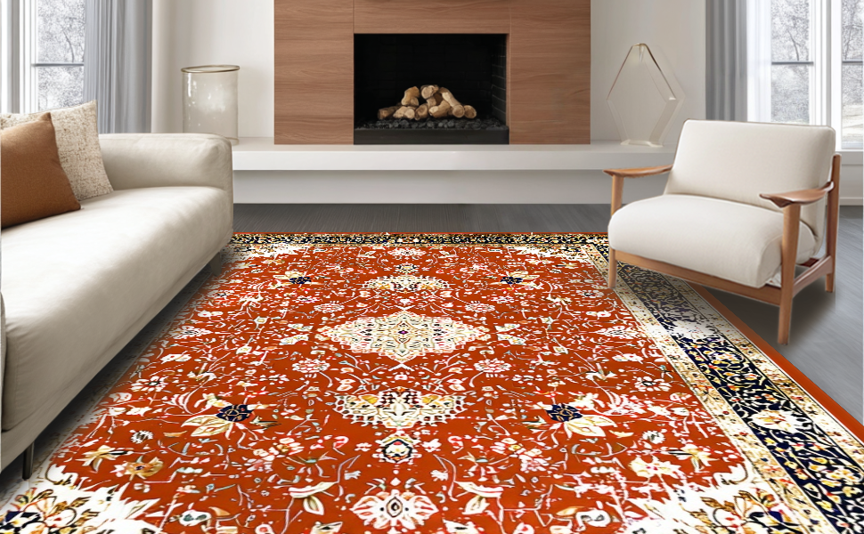 Ultra Soft Area Rug, Non Slip, Stain Resistant, Washable Area Rugs for Living Room, Bedroom, Cozy Warm Tones Floral Arrangement(Orange) Overview: