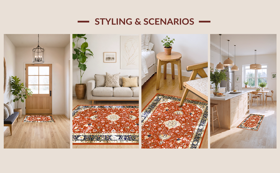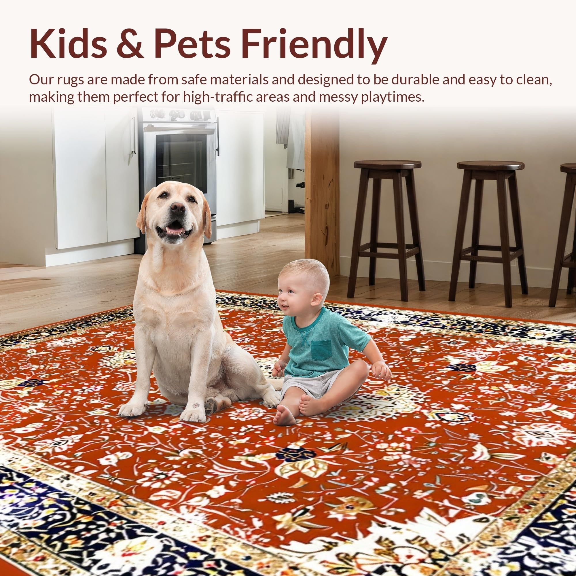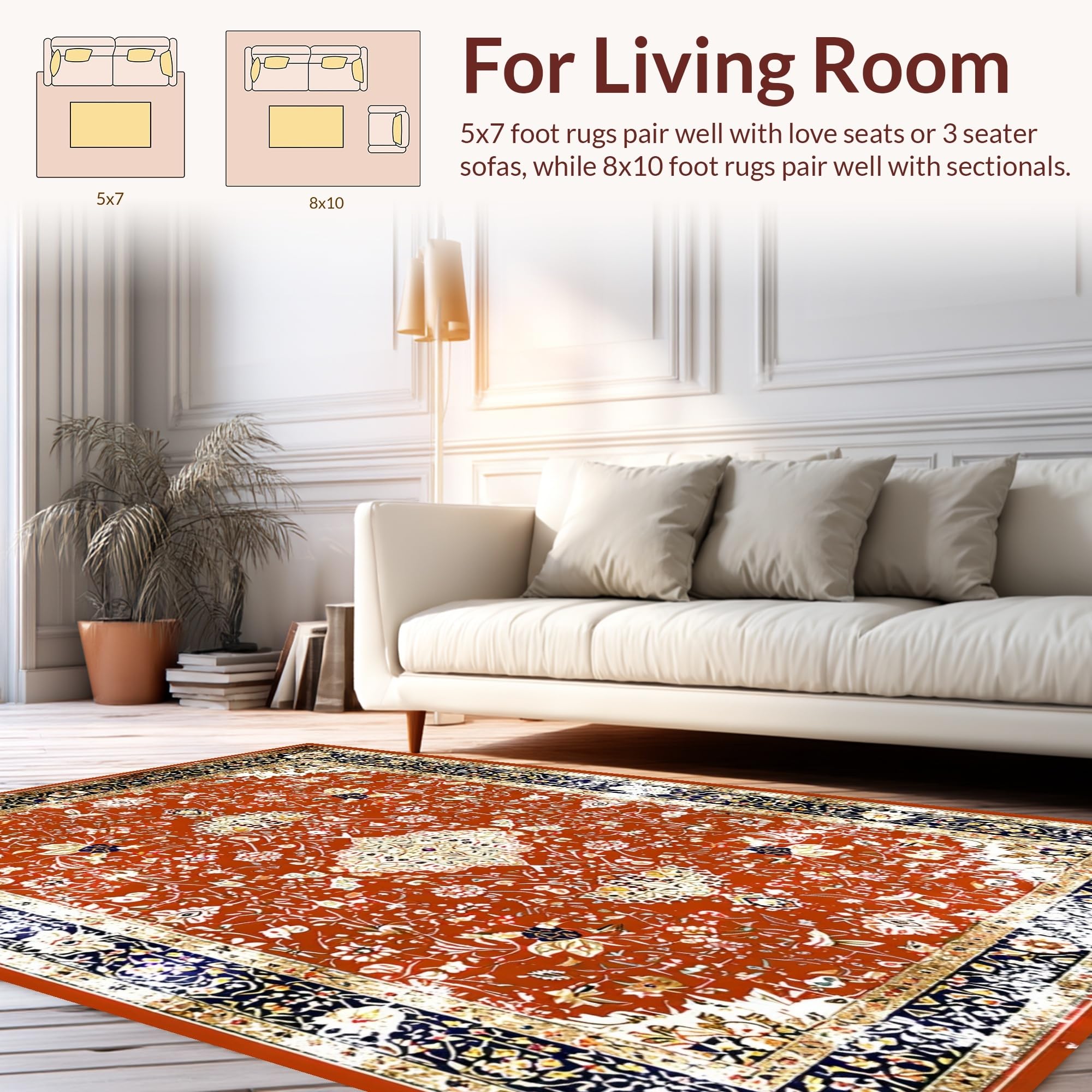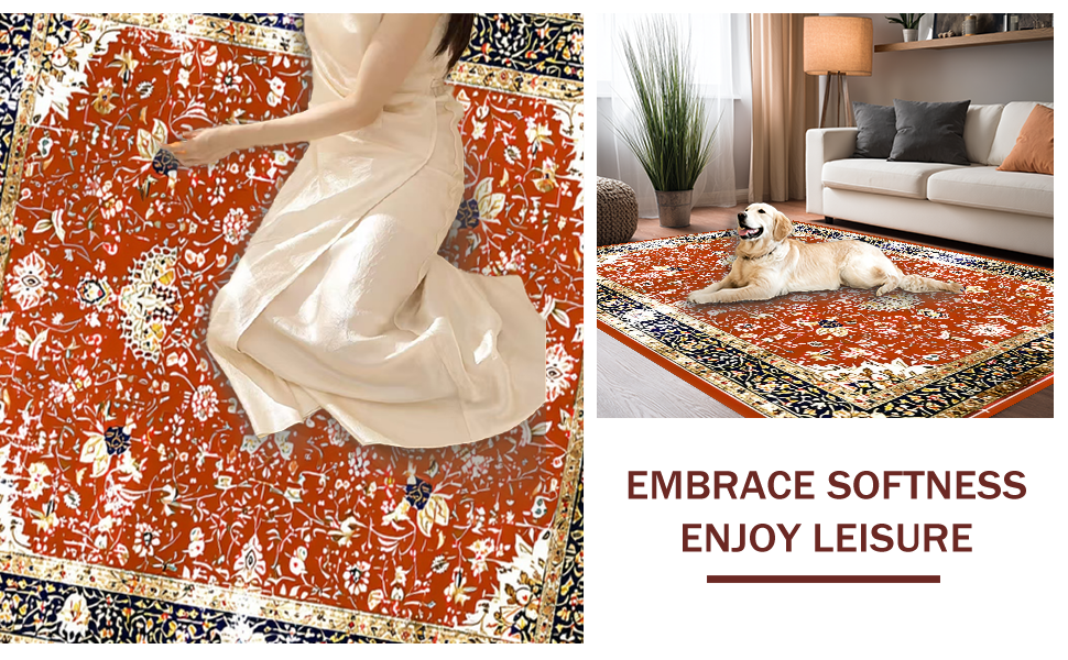 Ultra Soft Area Rug, Non Slip, Stain Resistant, Washable Area Rugs for Living Room, Bedroom, Cozy Warm Tones Floral Arrangement(Orange) Overview: